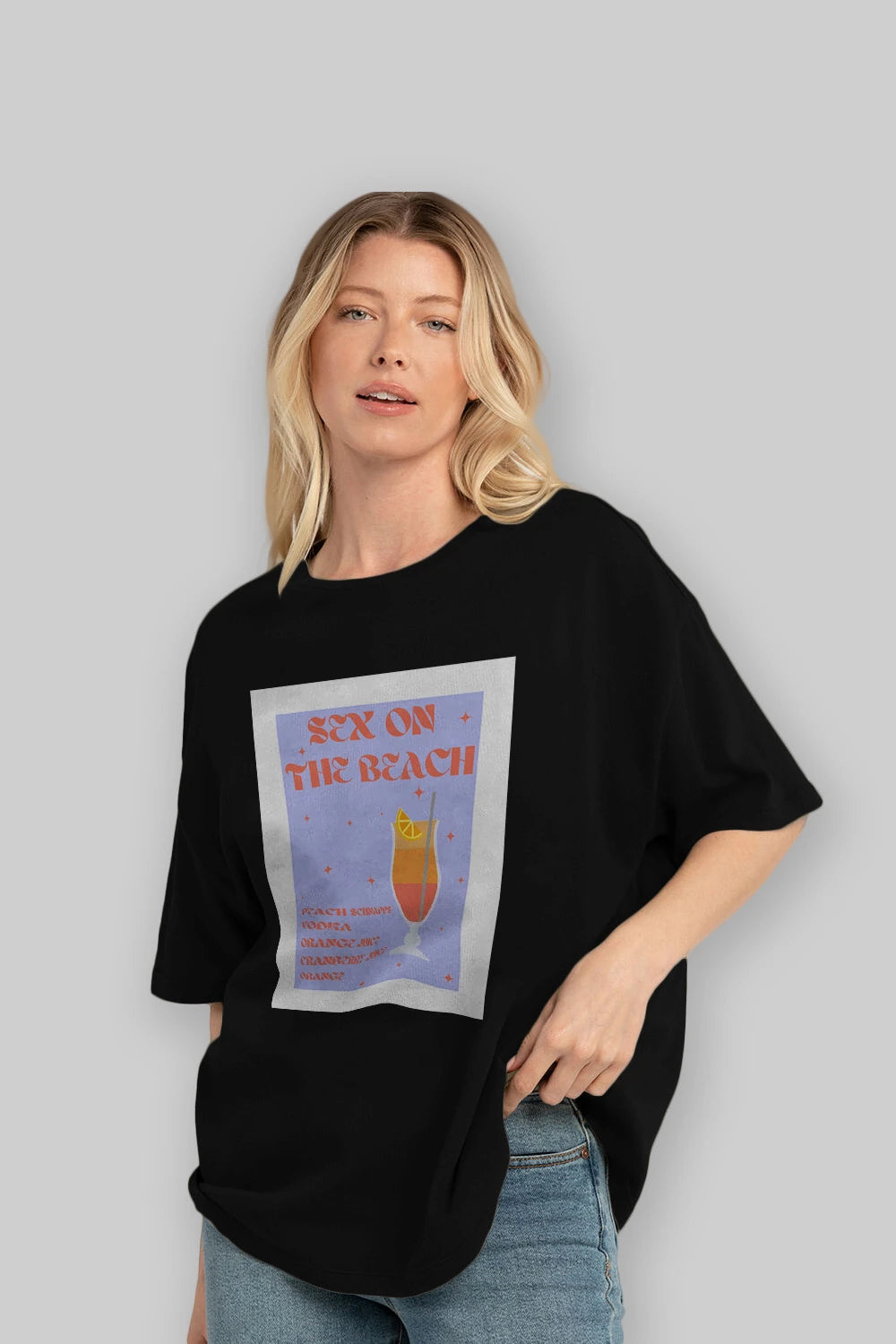 Sex On The Beach Ön Baskılı Oversize t-shirt Erkek Kadın Unisex %100 Pamuk Bisiklet Yaka tişort