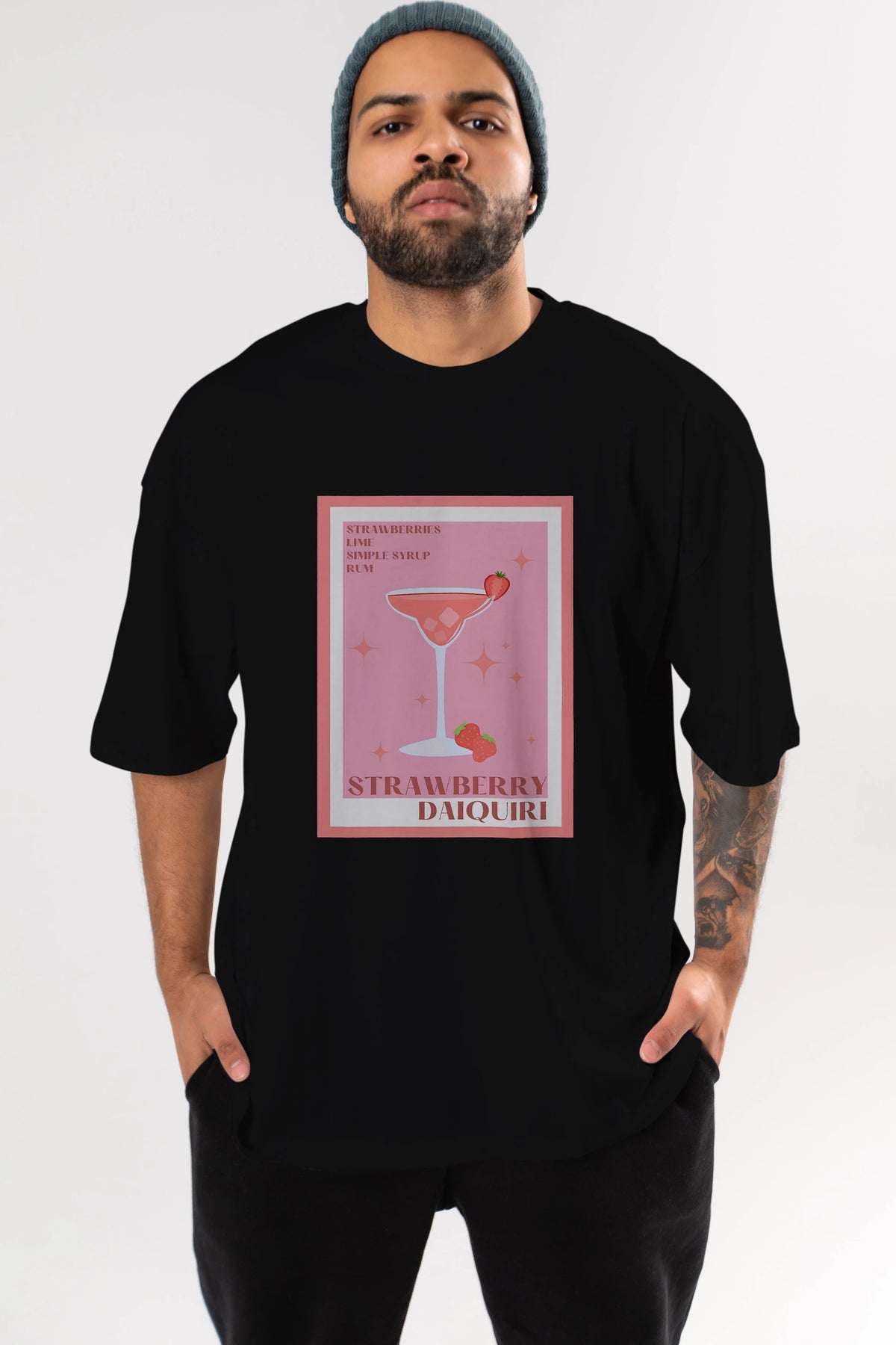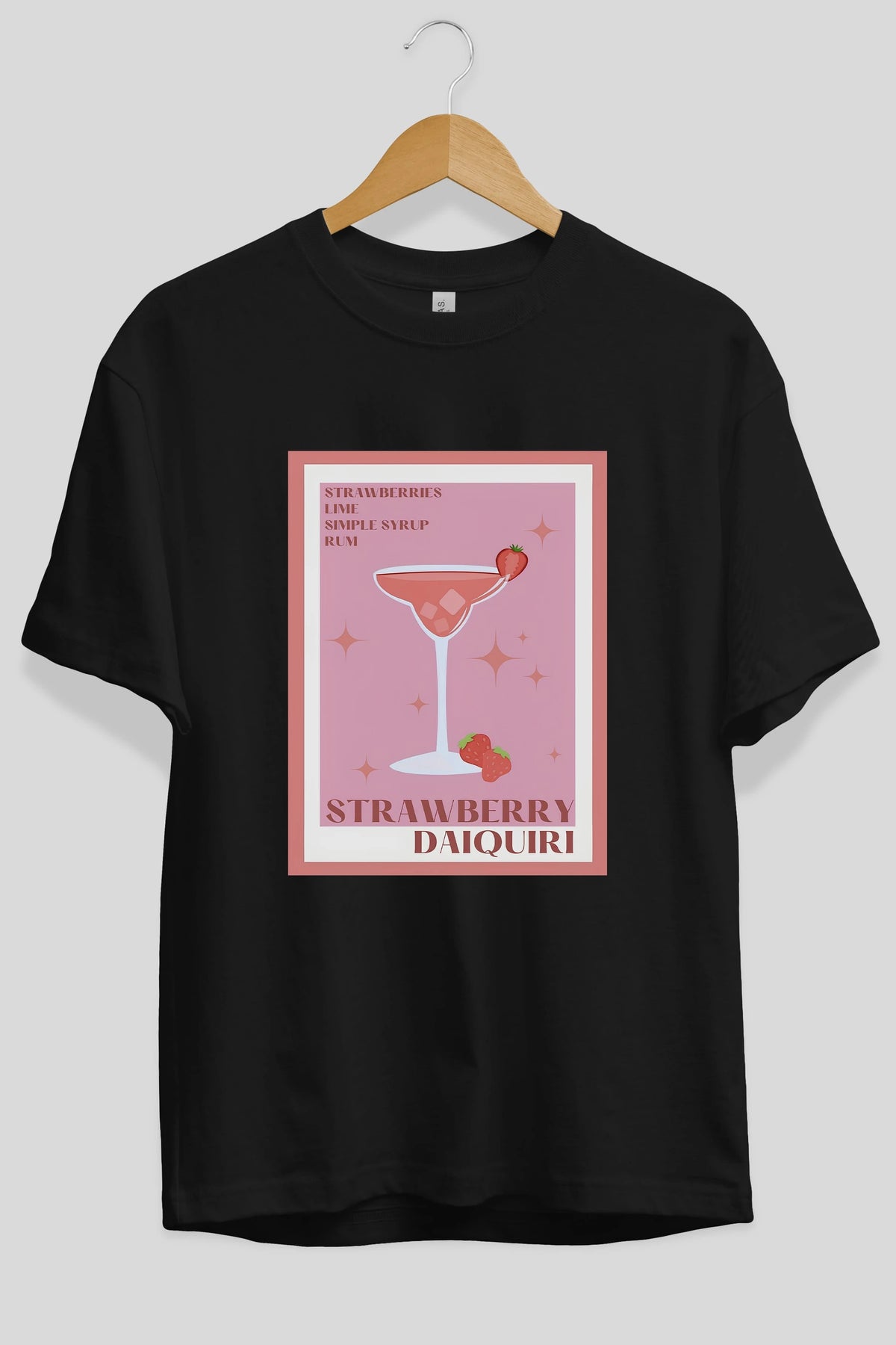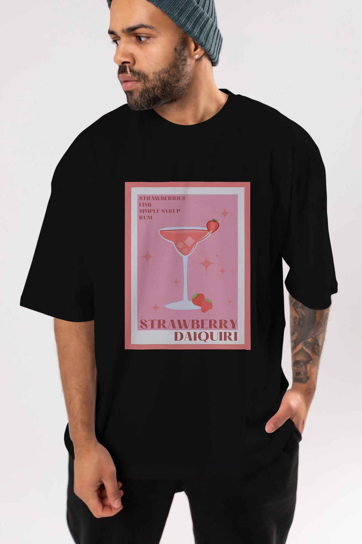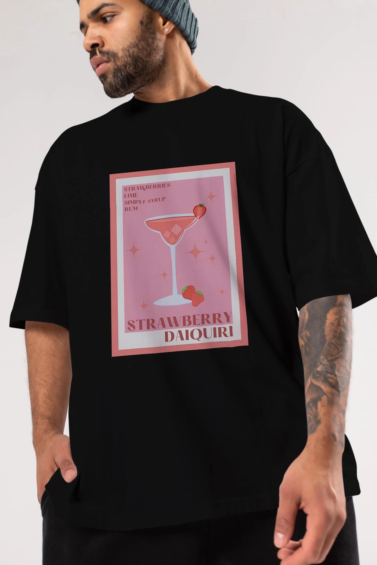 Strawberry Daiquiri Ön Baskılı Oversize t-shirt Erkek Kadın Unisex %100 Pamuk Bisiklet Yaka tişort