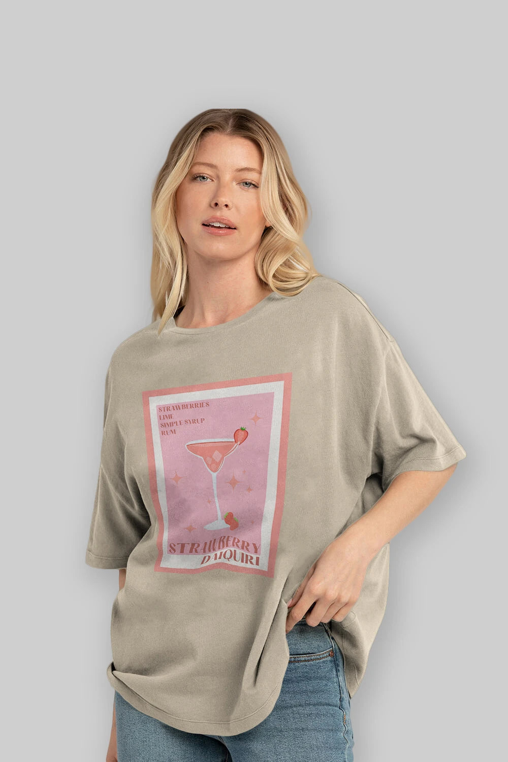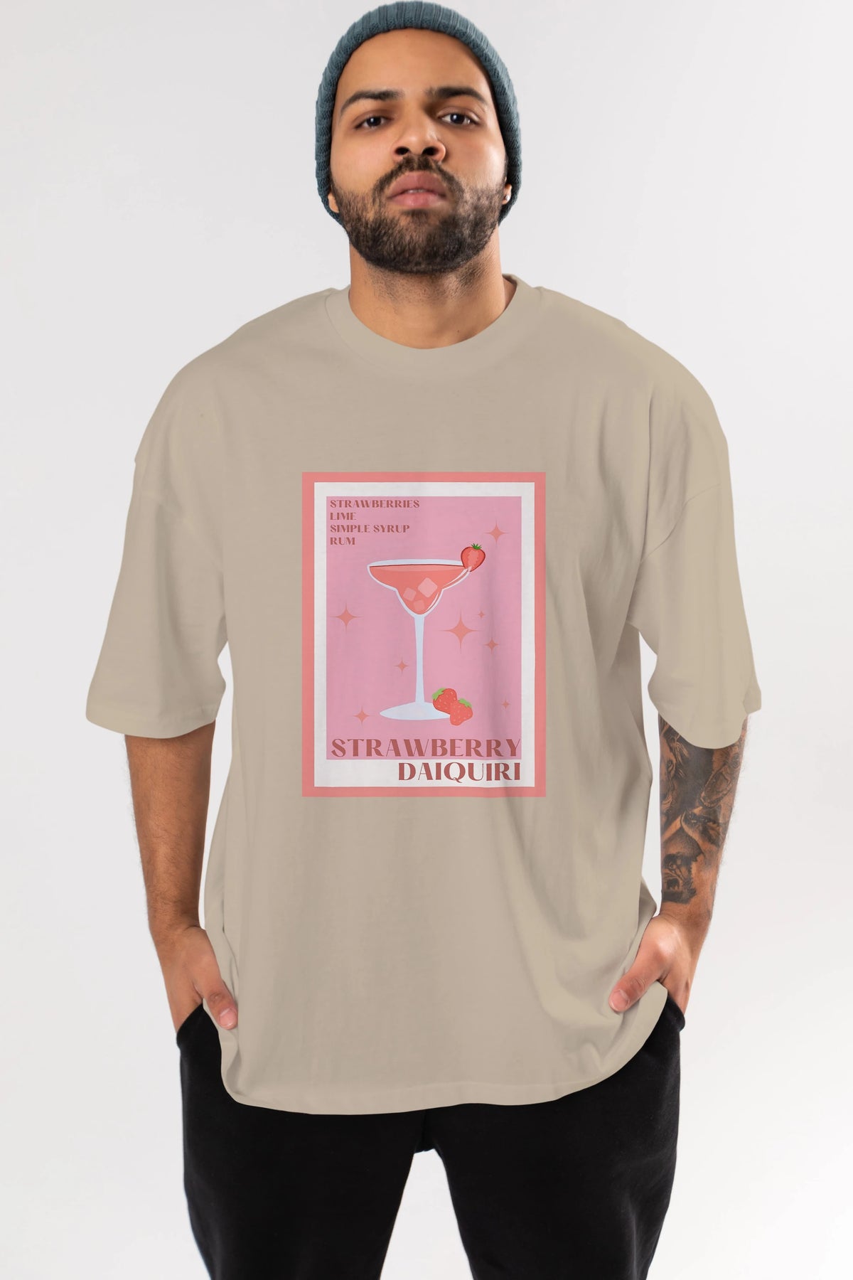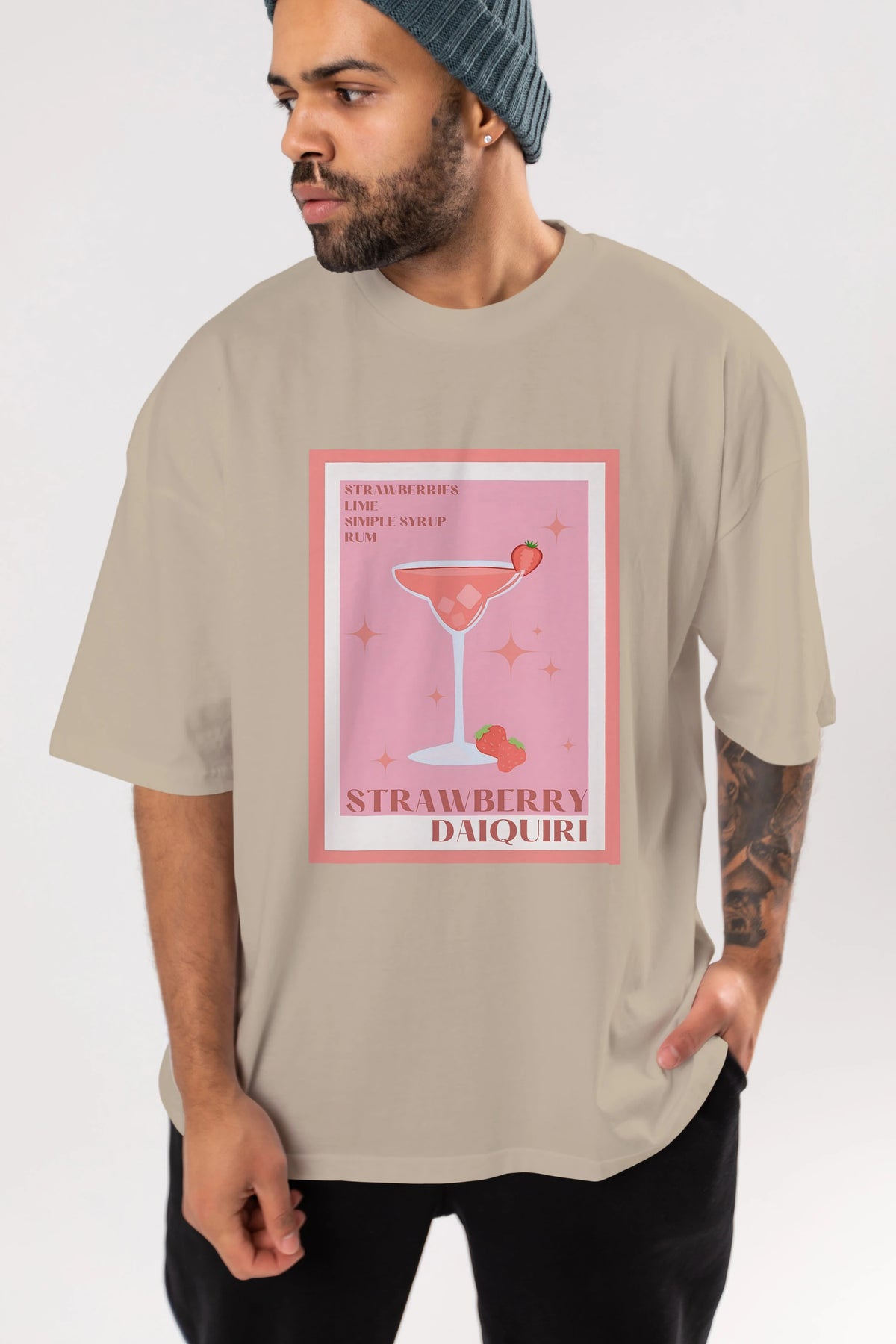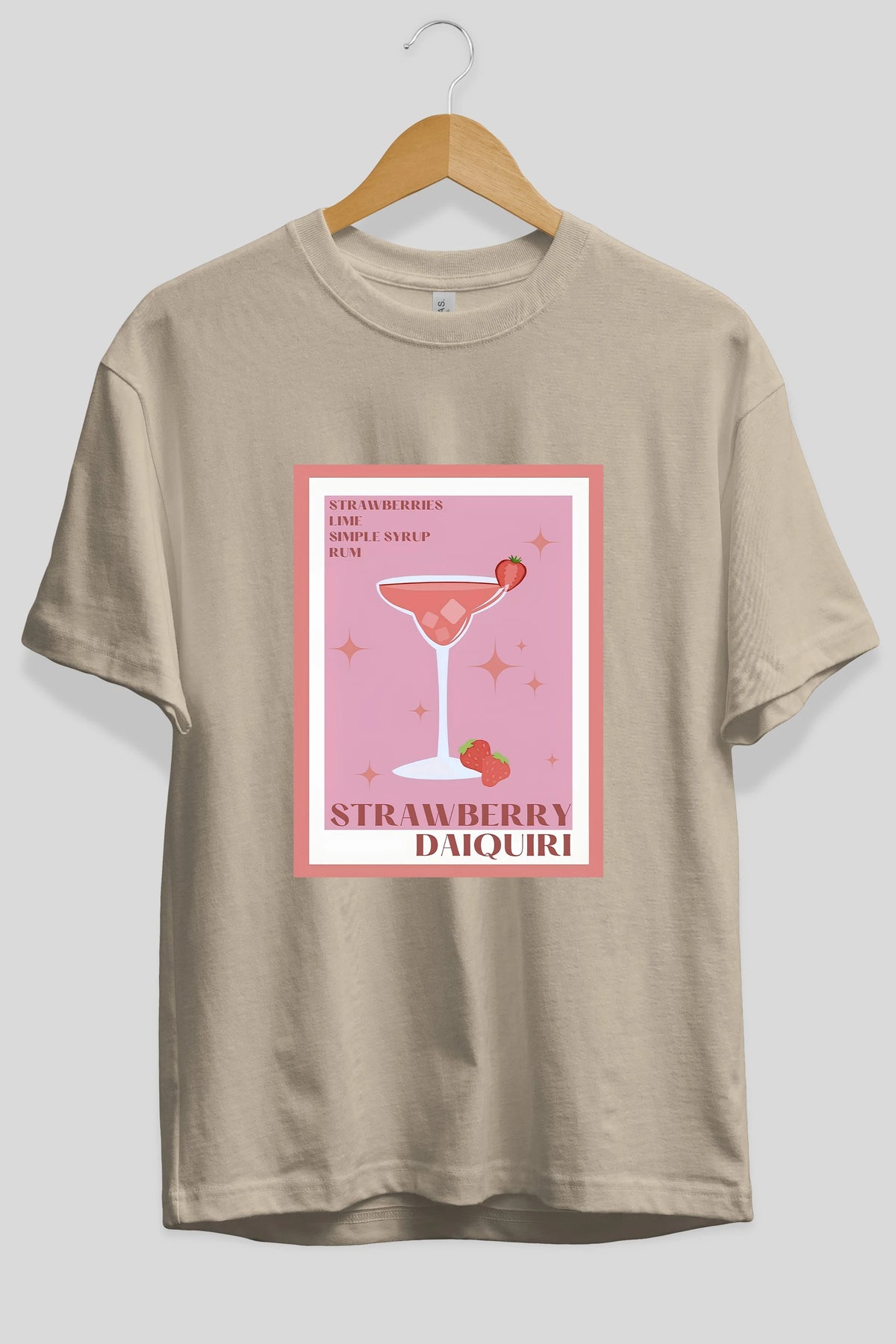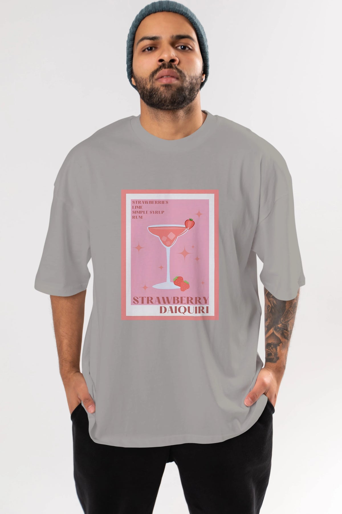 Strawberry Daiquiri Ön Baskılı Oversize t-shirt Erkek Kadın Unisex %100 Pamuk Bisiklet Yaka tişort