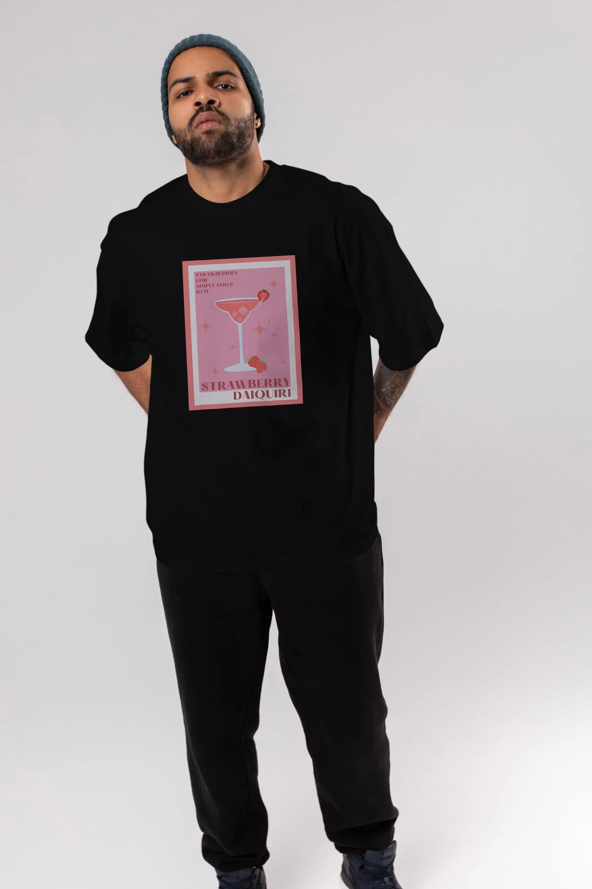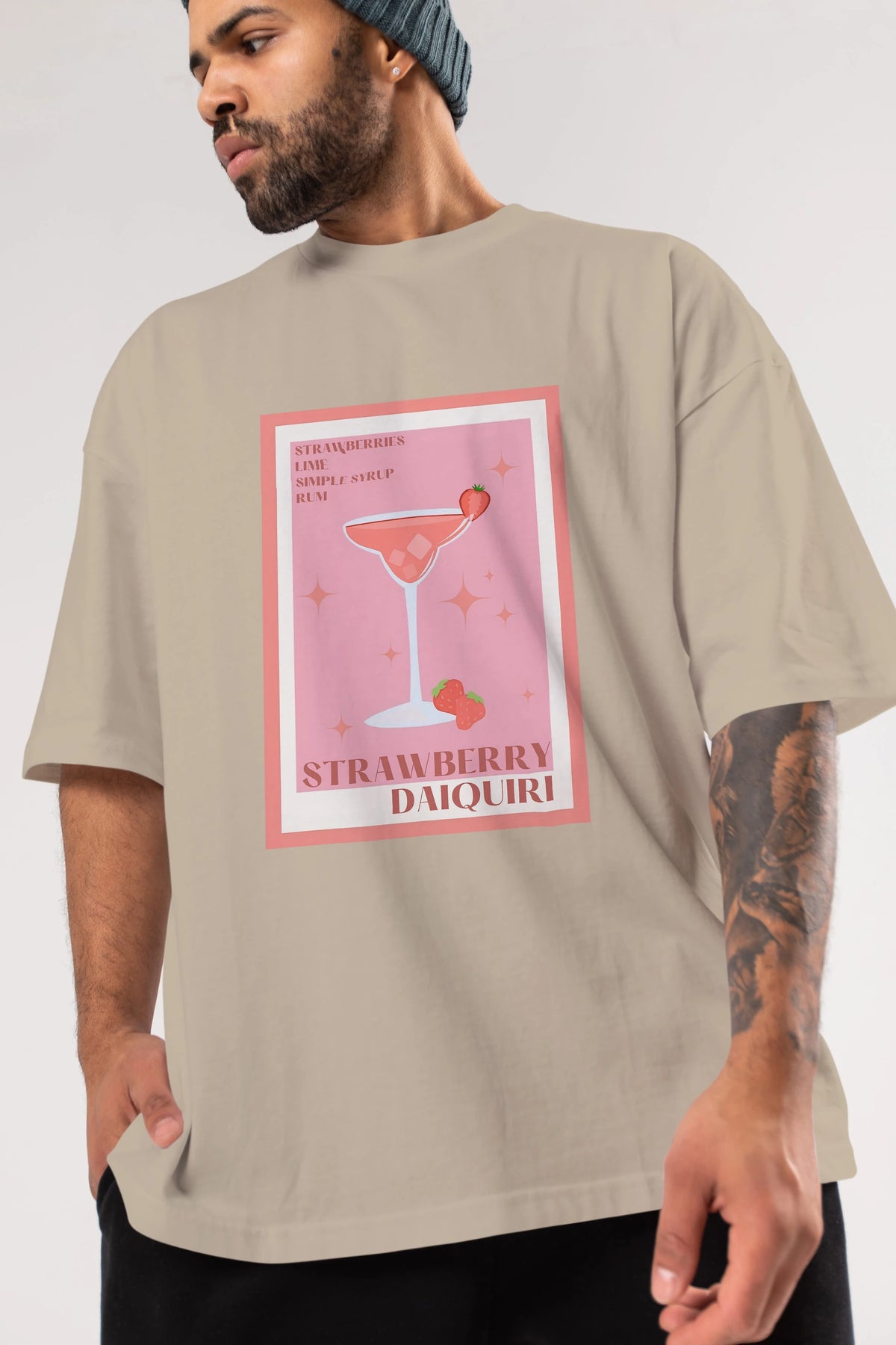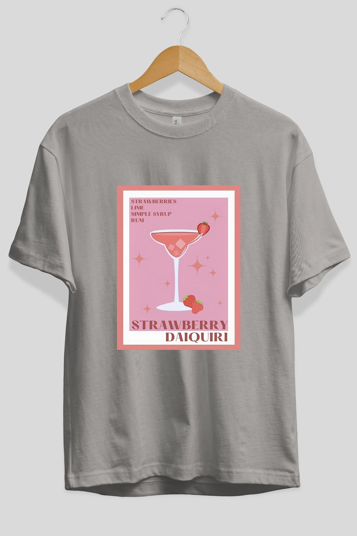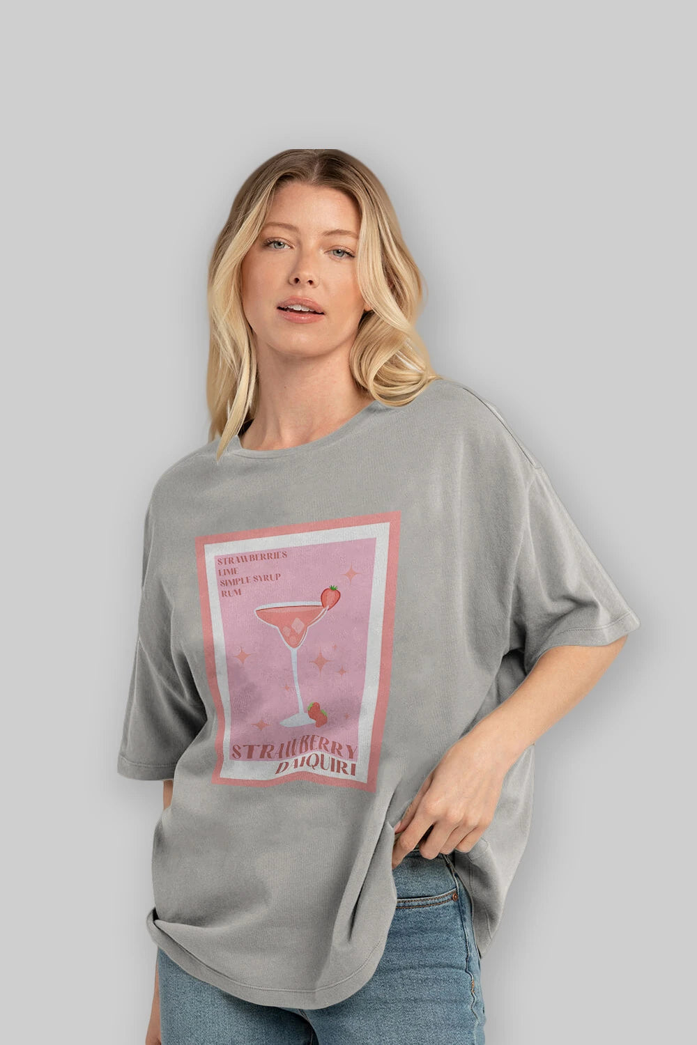 Strawberry Daiquiri Ön Baskılı Oversize t-shirt Erkek Kadın Unisex %100 Pamuk Bisiklet Yaka tişort