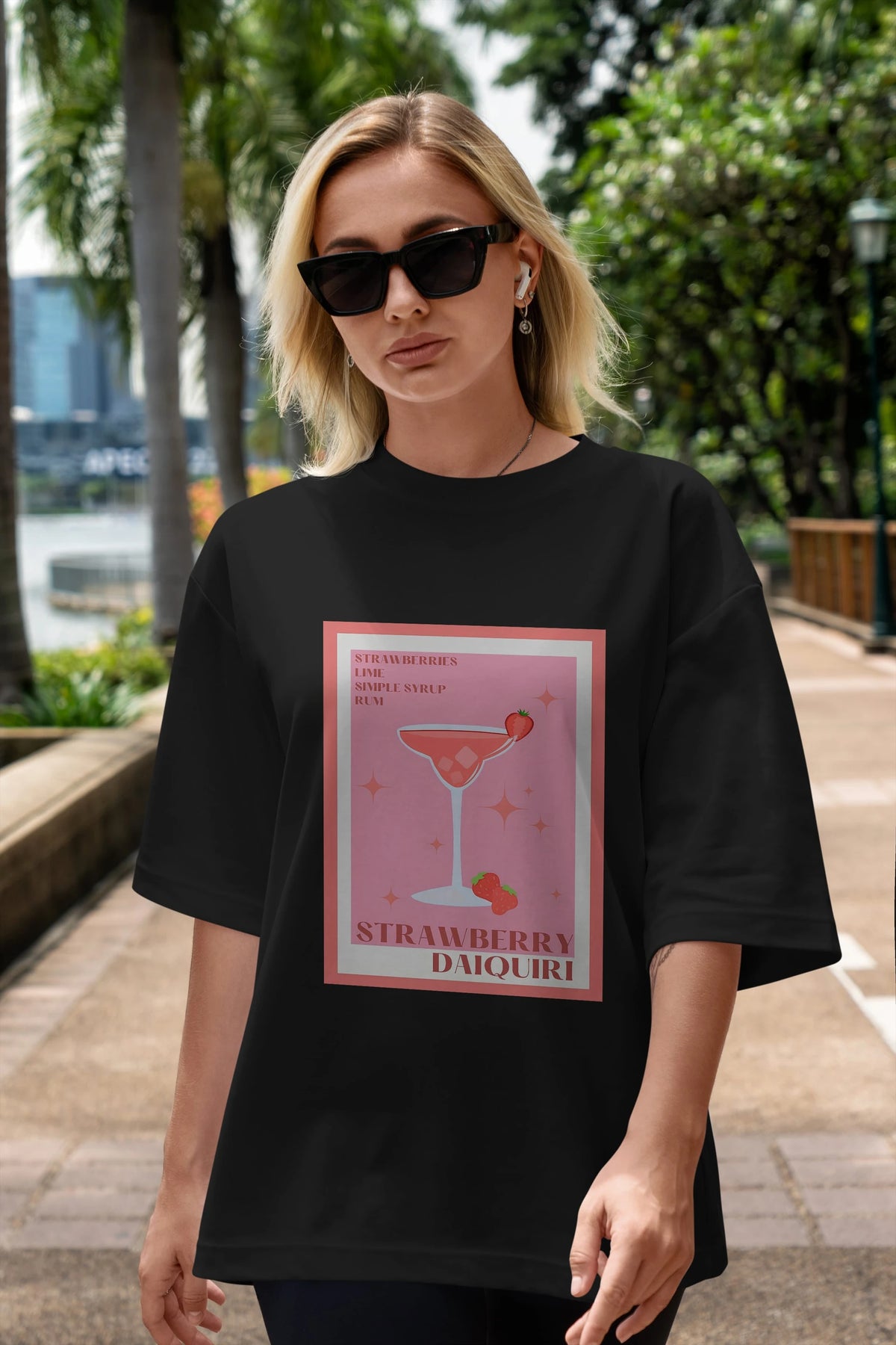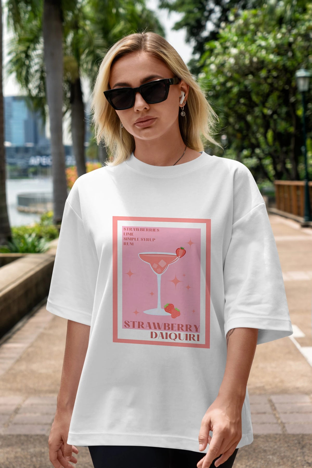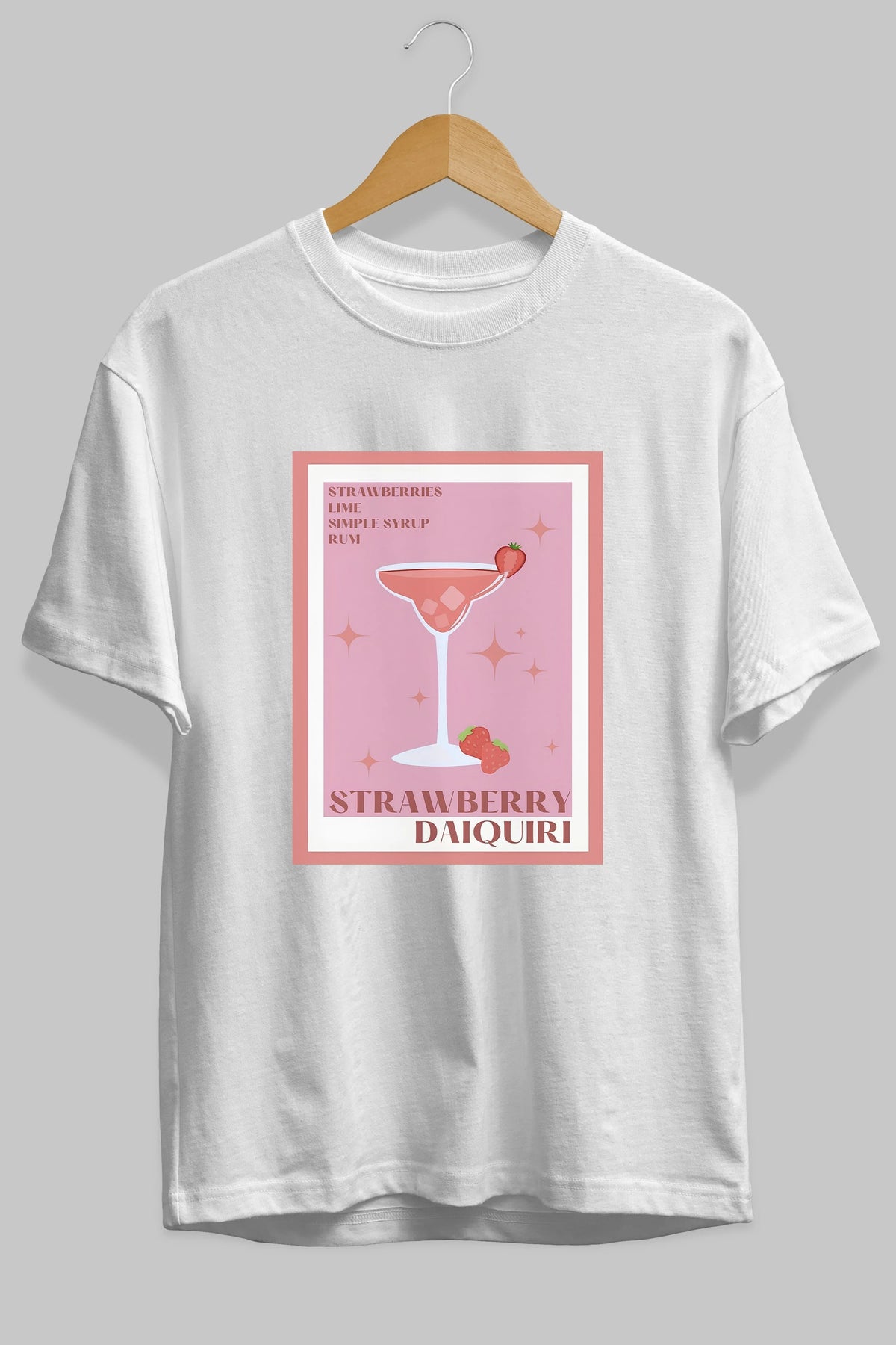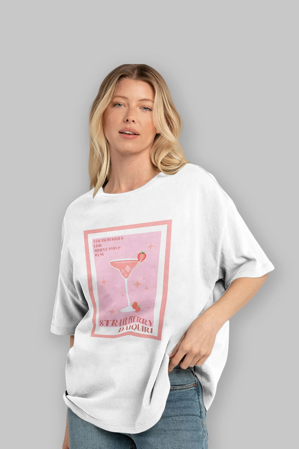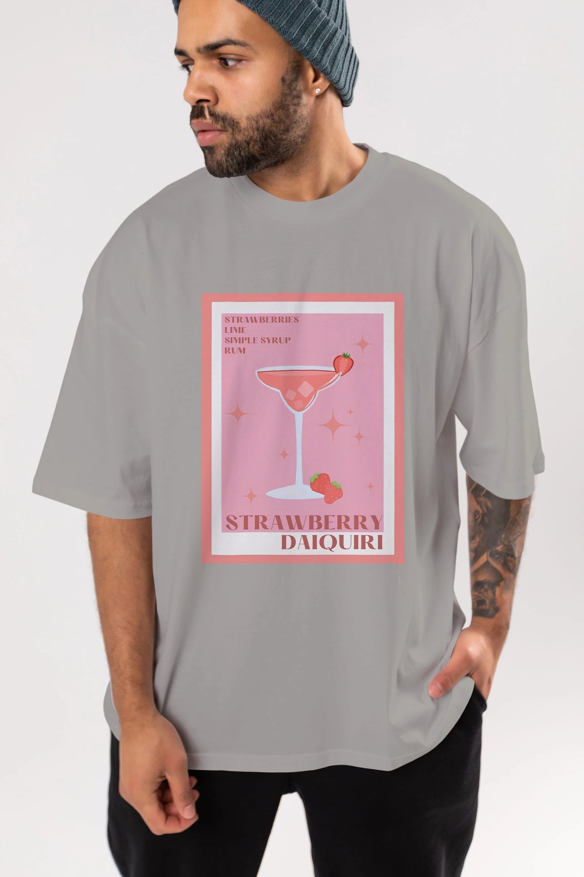 Strawberry Daiquiri Ön Baskılı Oversize t-shirt Erkek Kadın Unisex %100 Pamuk Bisiklet Yaka tişort