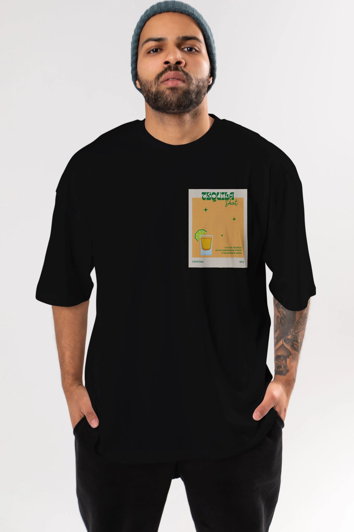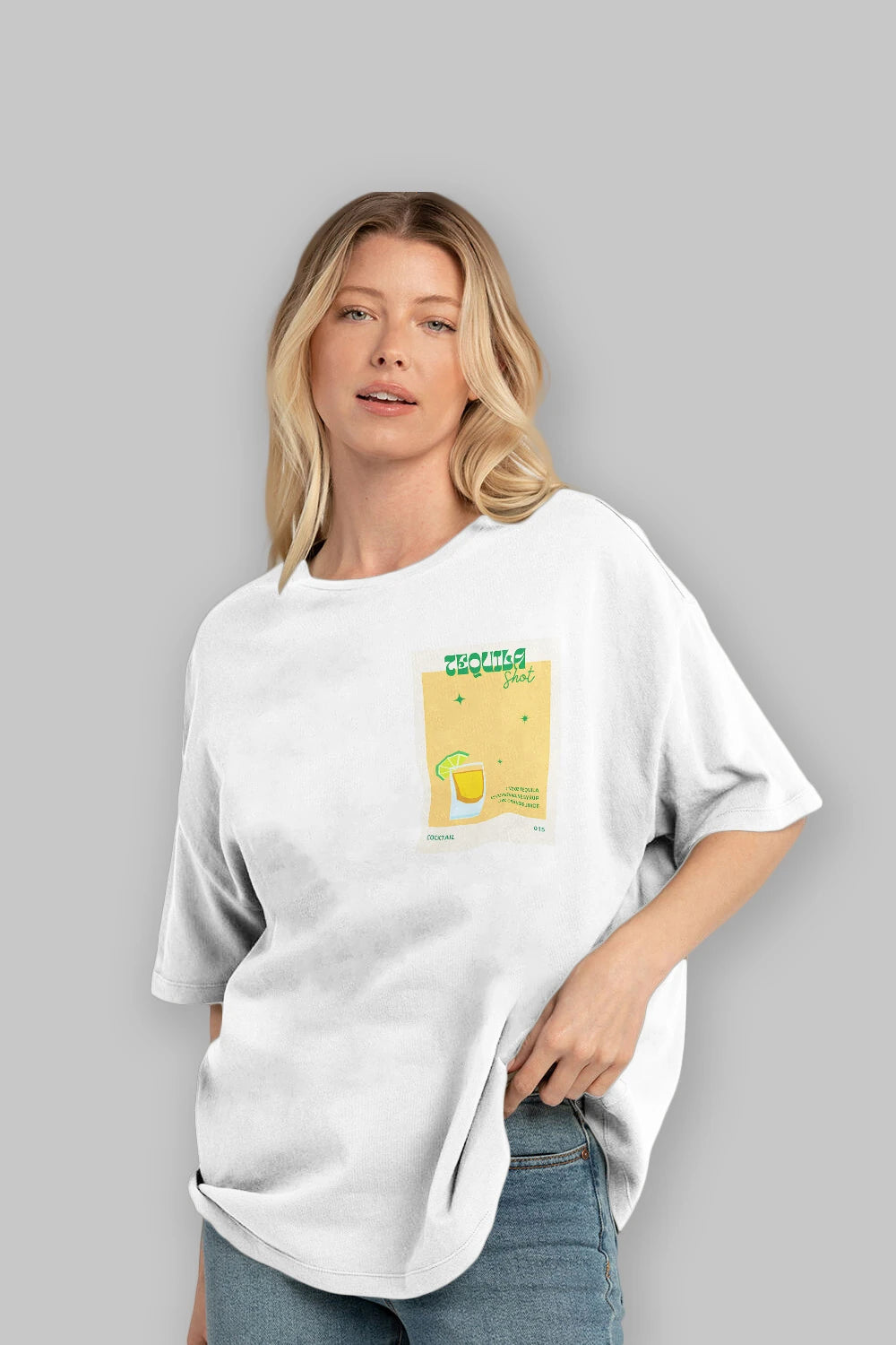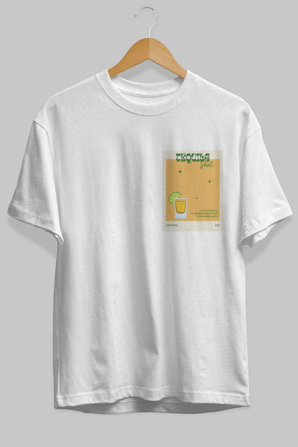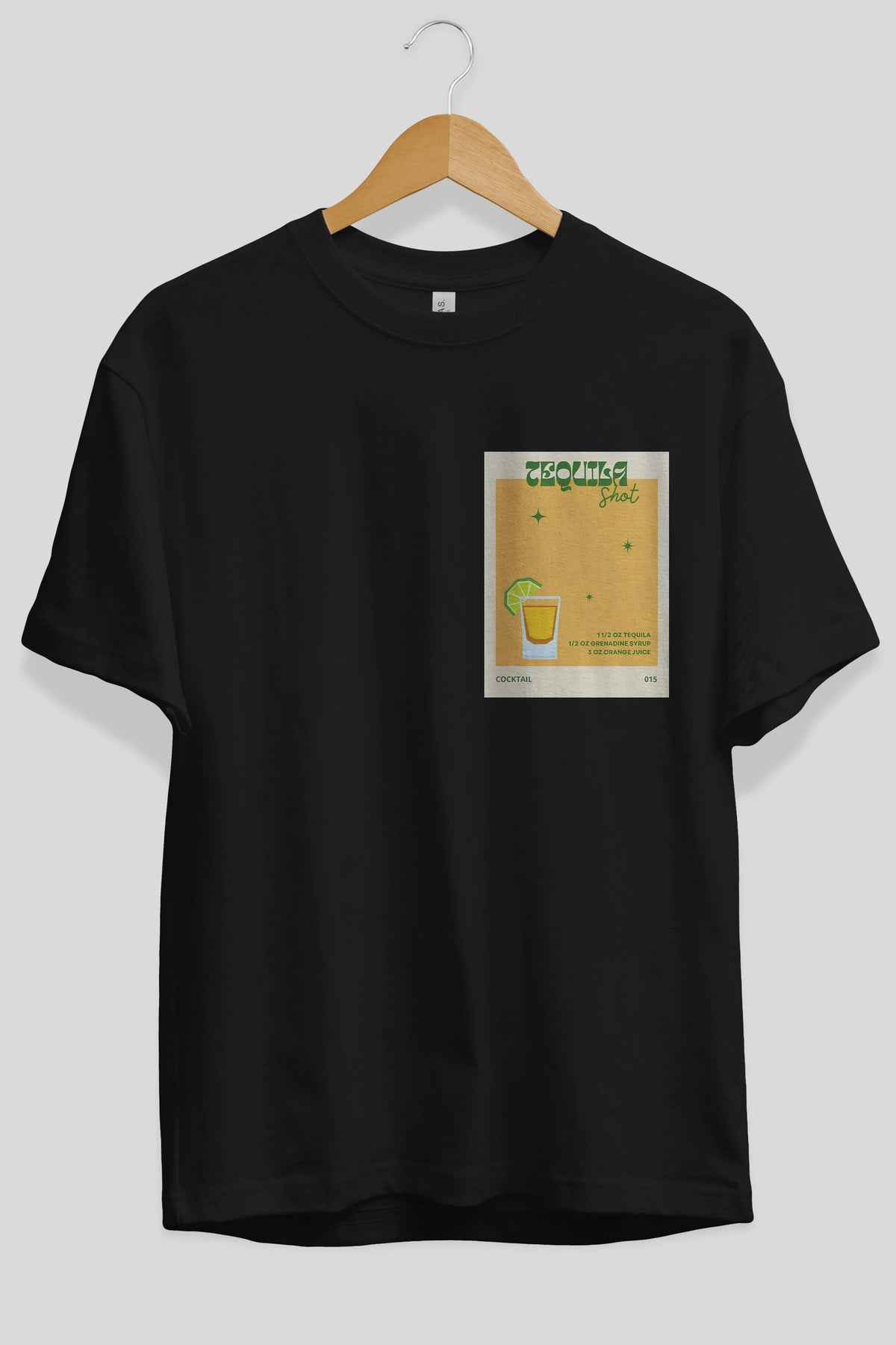Tequila Shot 2 Ön Sol Baskılı Oversize t-shirt Erkek Kadın Unisex %100 Pamuk Bisiklet Yaka tişort