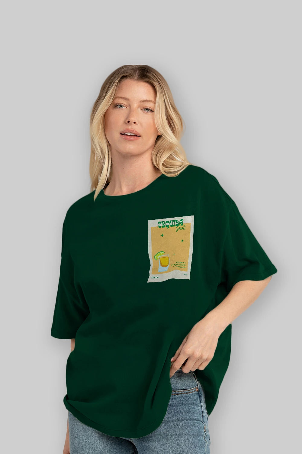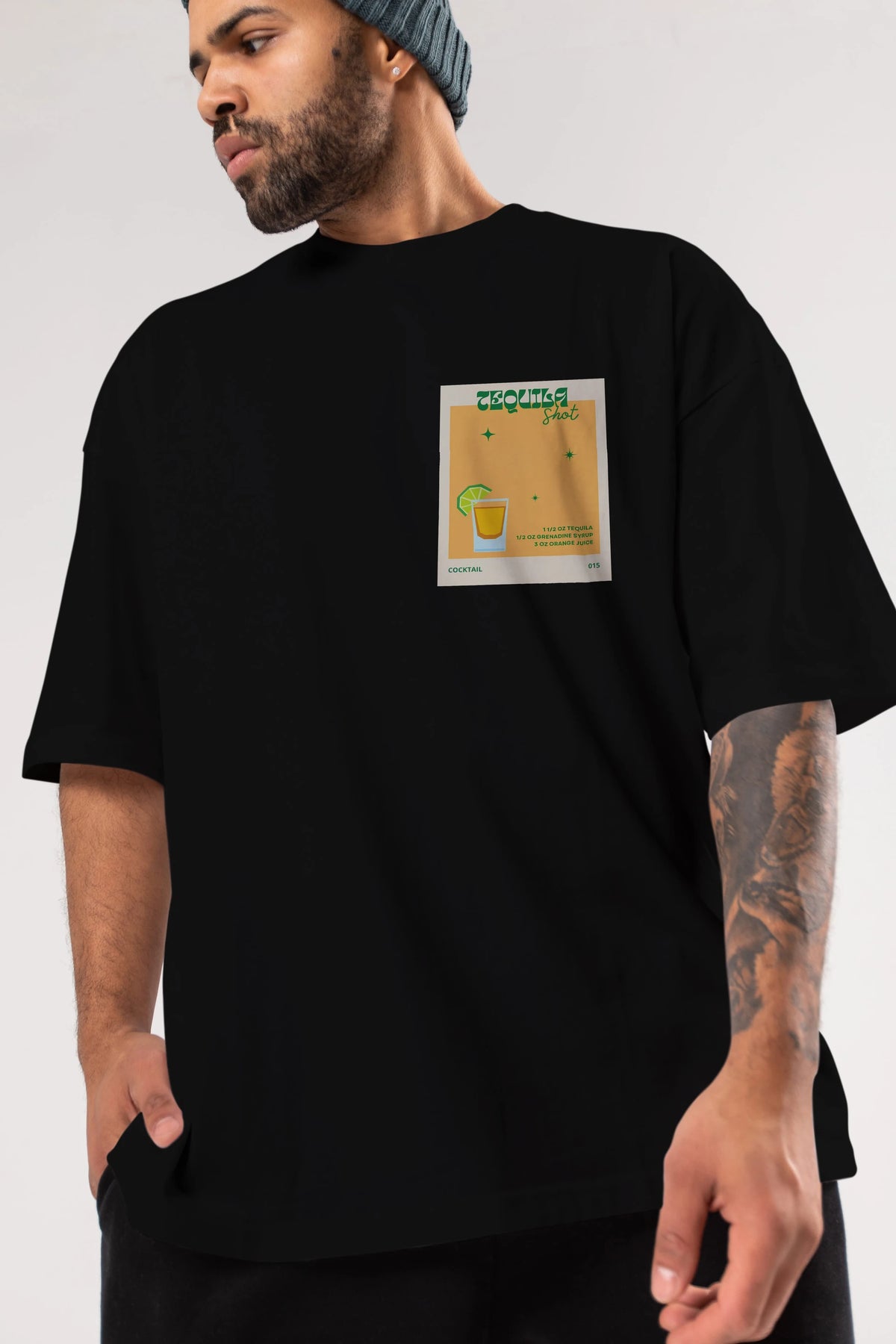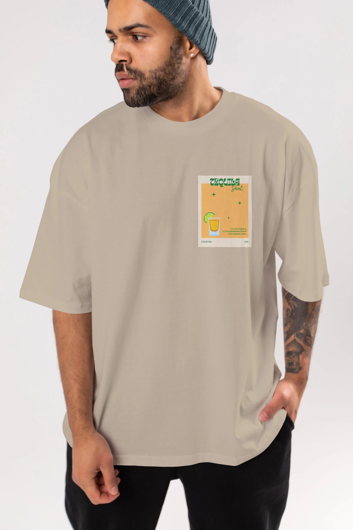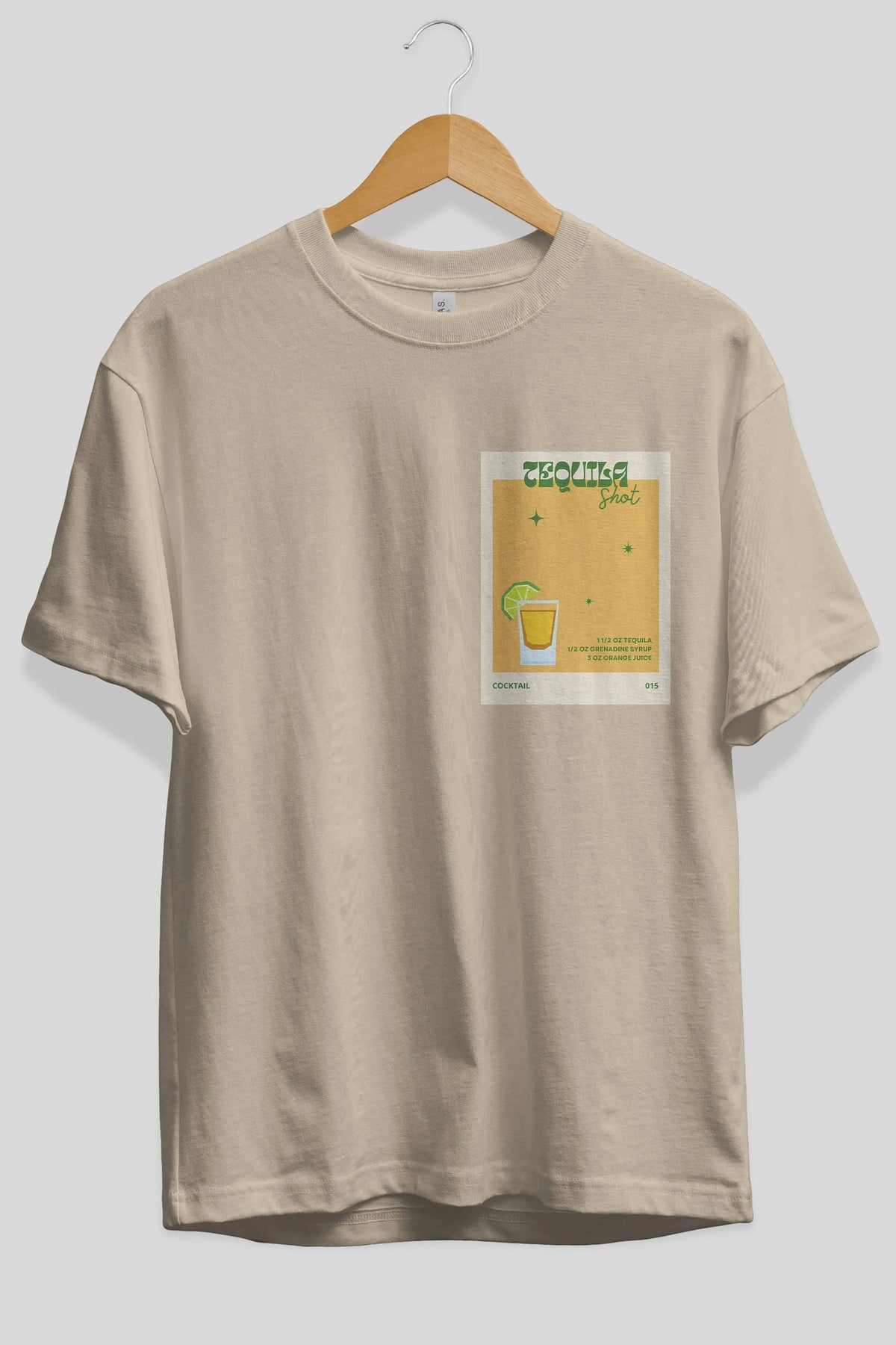 Tequila Shot 2 Ön Sol Baskılı Oversize t-shirt Erkek Kadın Unisex %100 Pamuk Bisiklet Yaka tişort