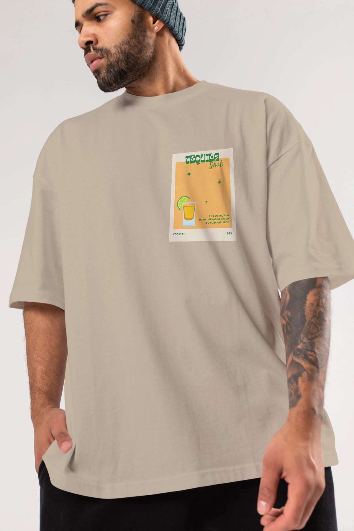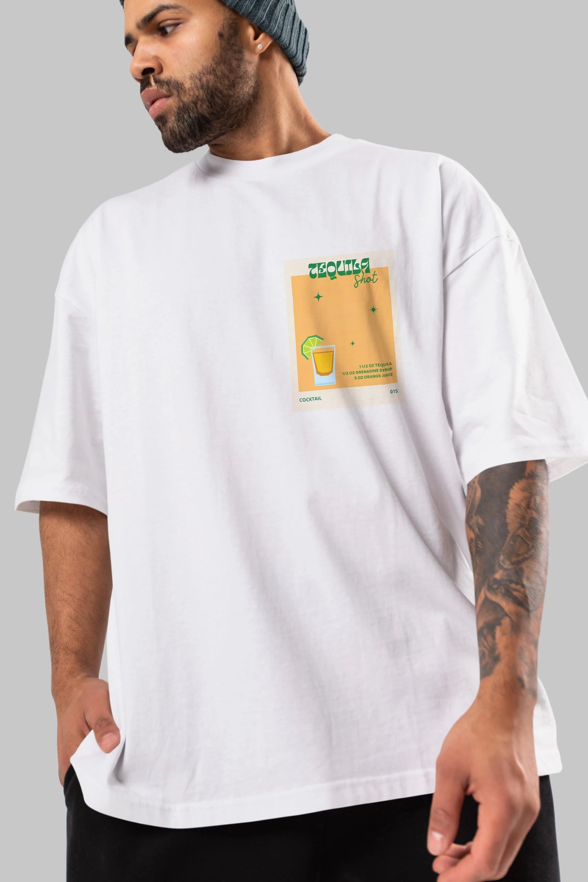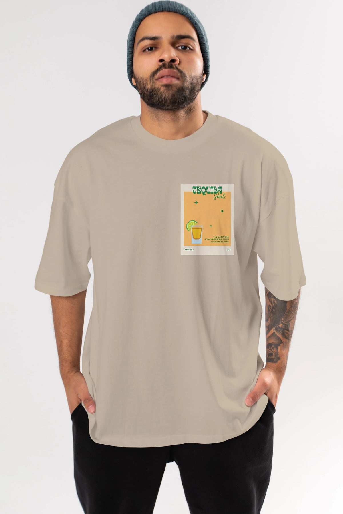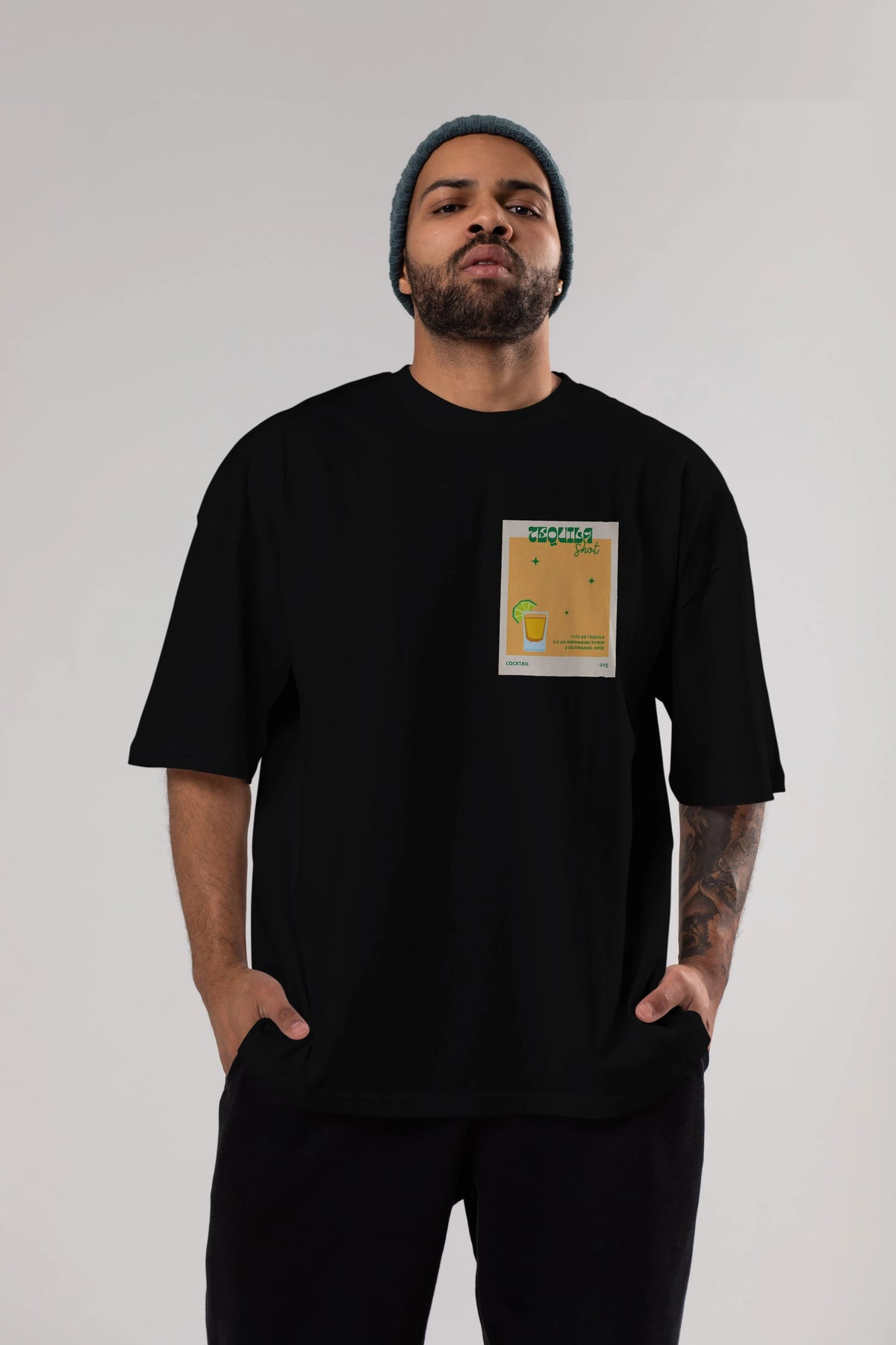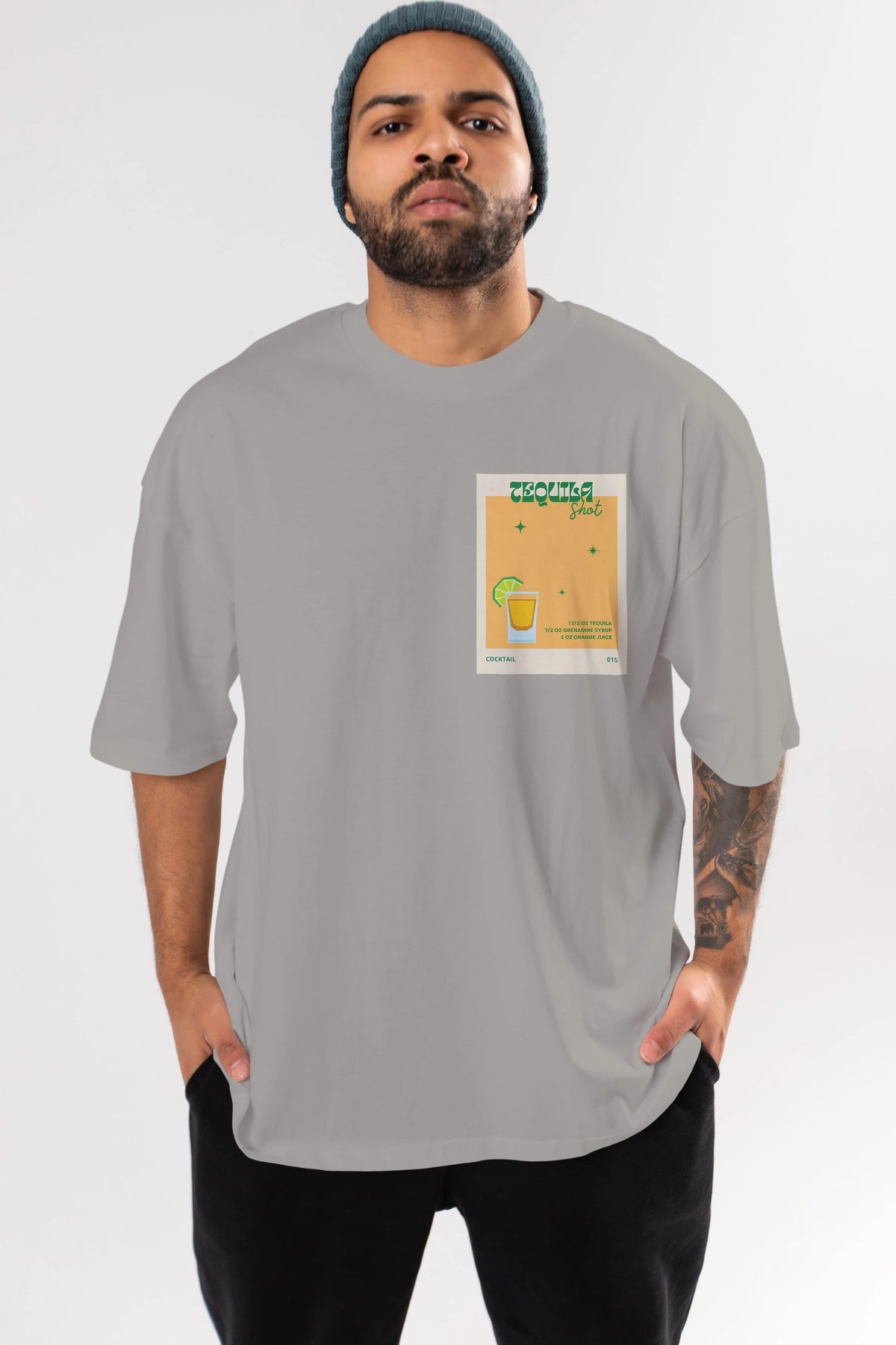 Tequila Shot 2 Ön Sol Baskılı Oversize t-shirt Erkek Kadın Unisex %100 Pamuk Bisiklet Yaka tişort
