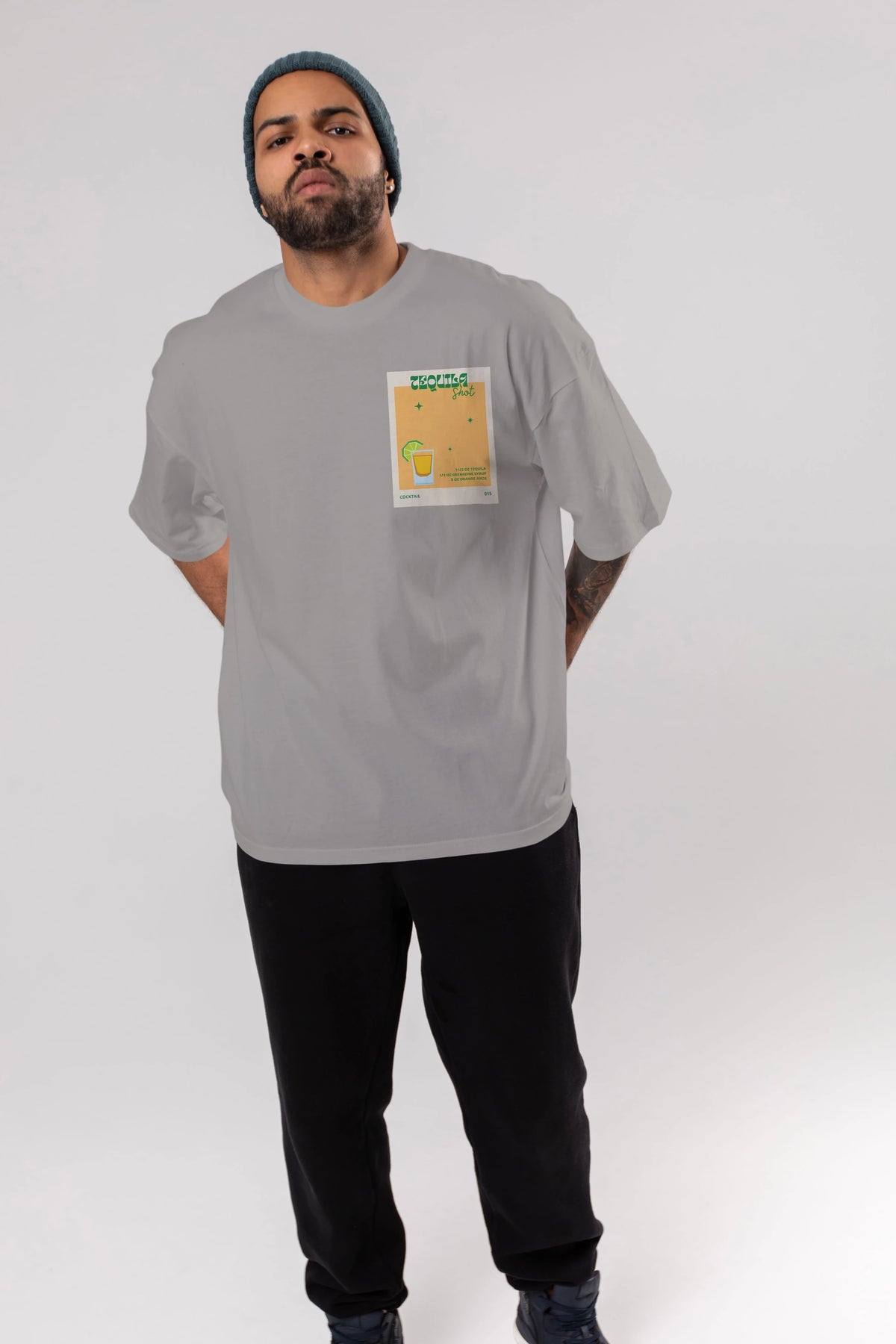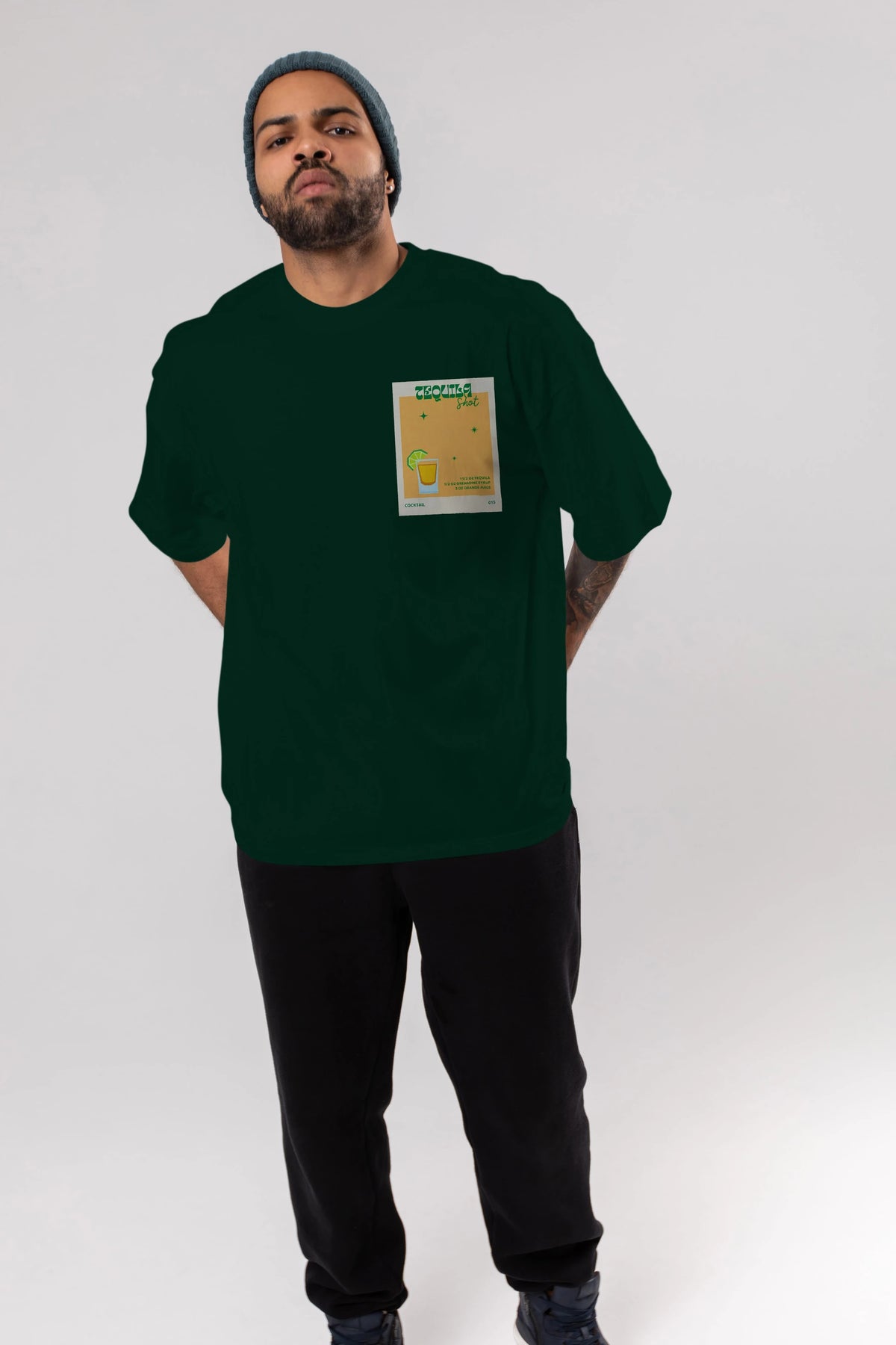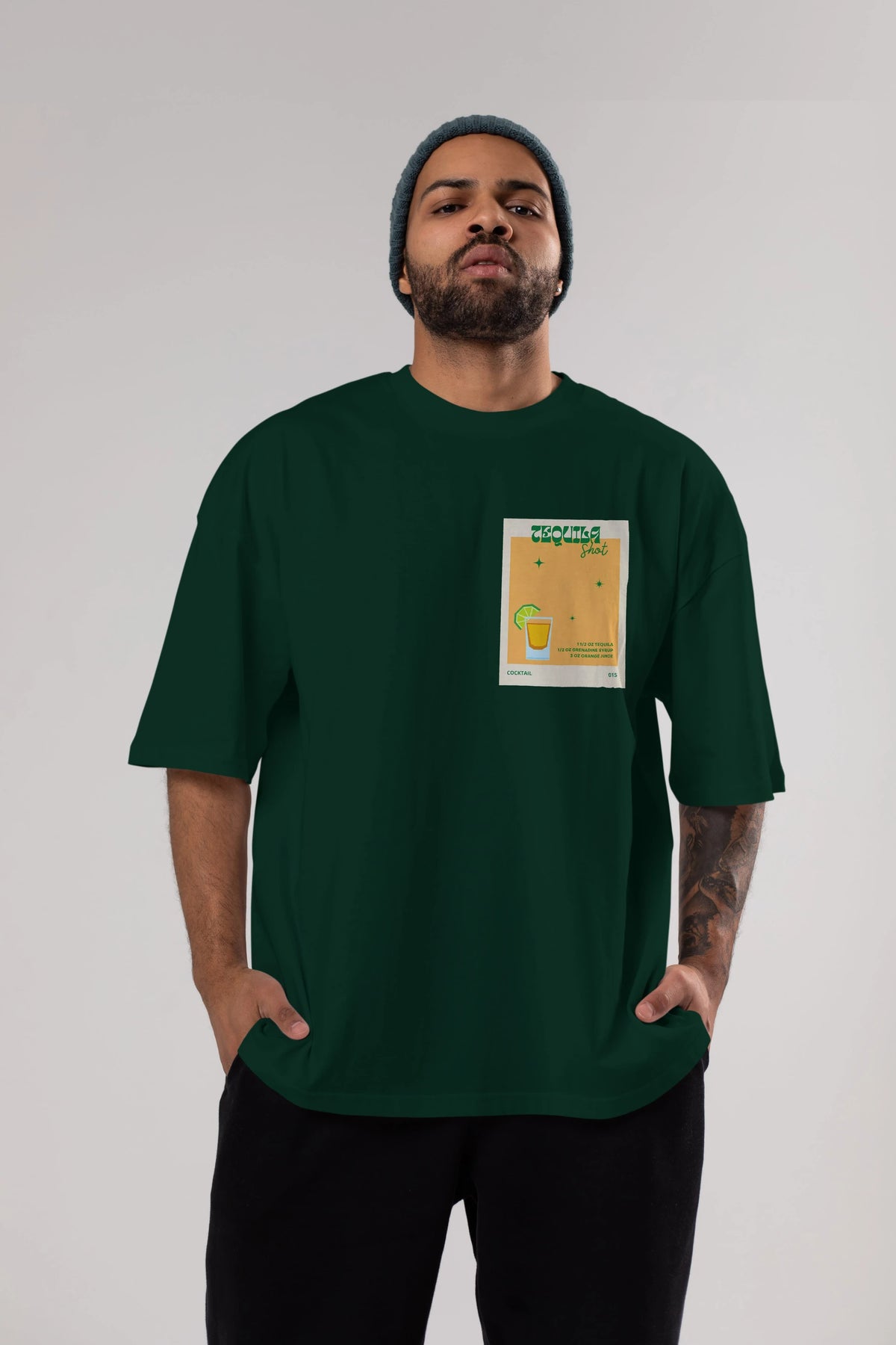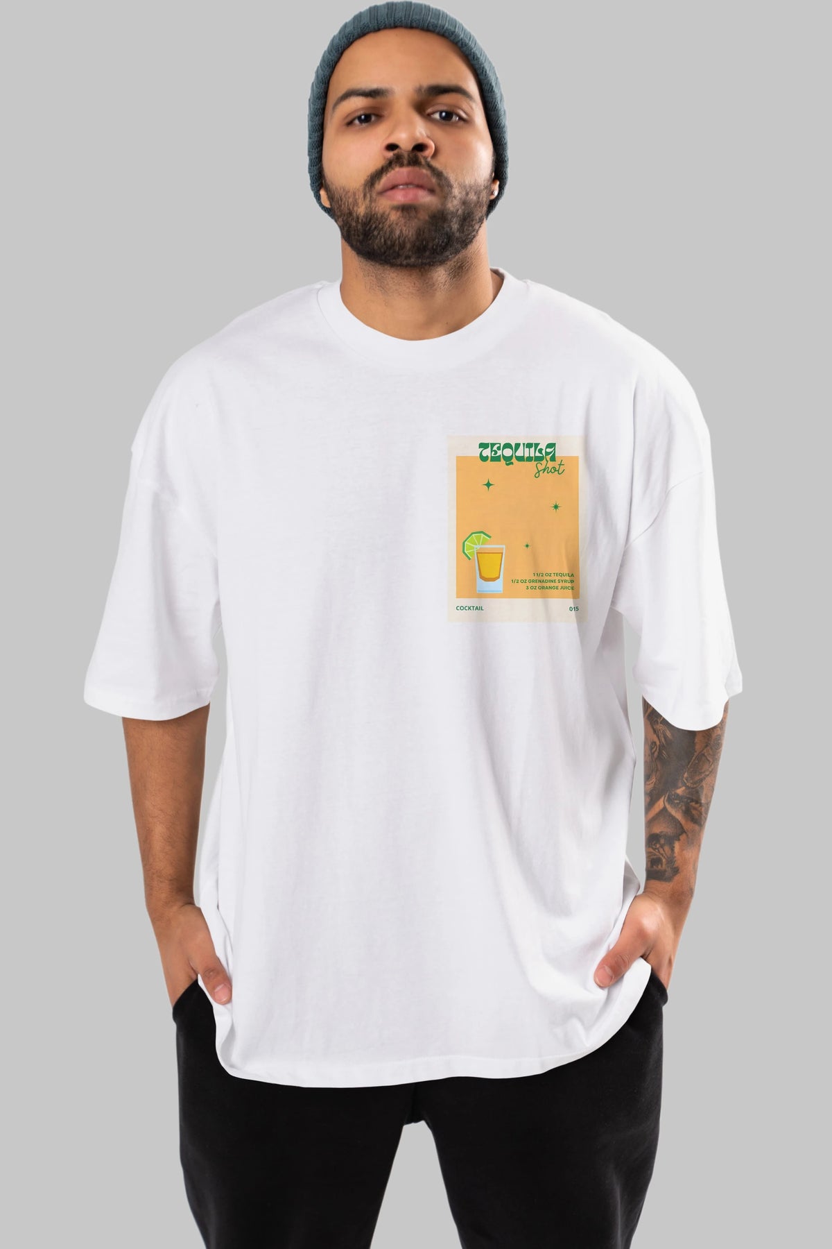 Tequila Shot 2 Ön Sol Baskılı Oversize t-shirt Erkek Kadın Unisex %100 Pamuk Bisiklet Yaka tişort