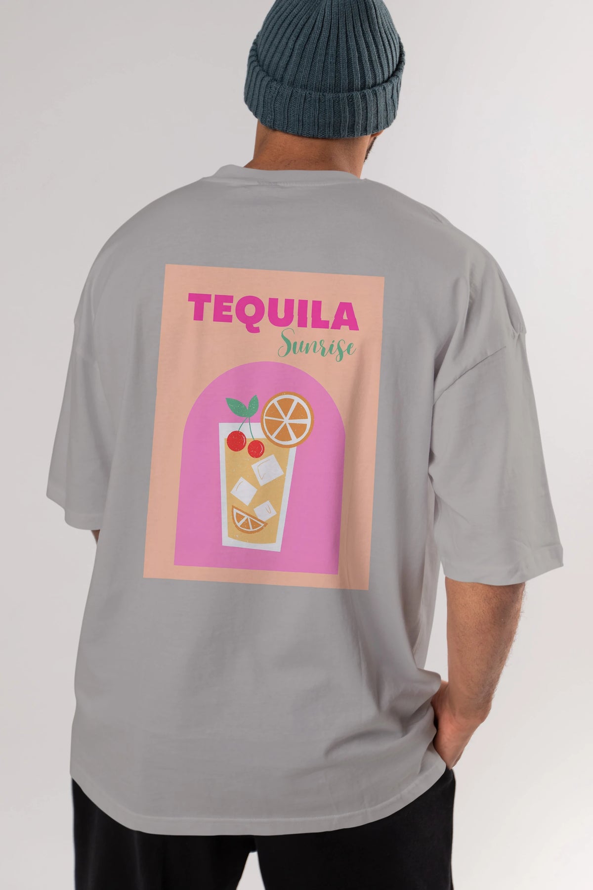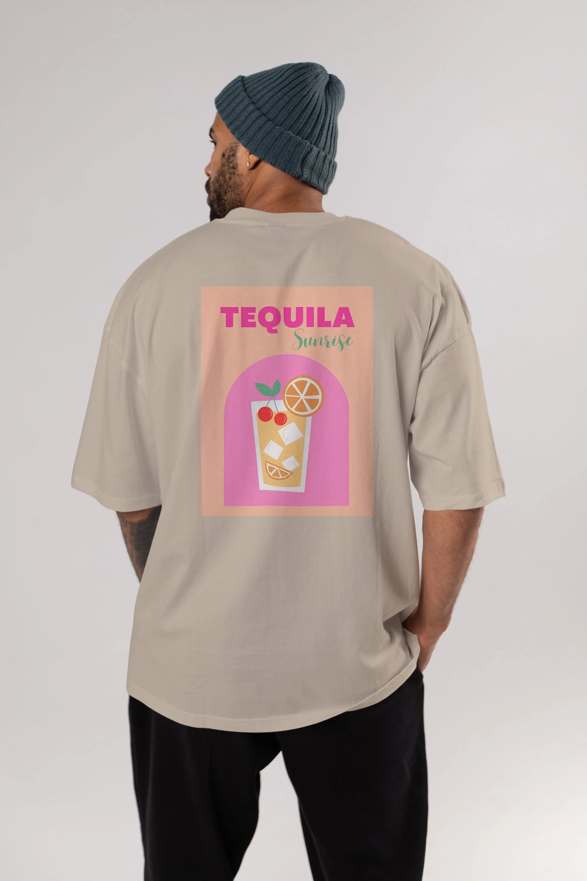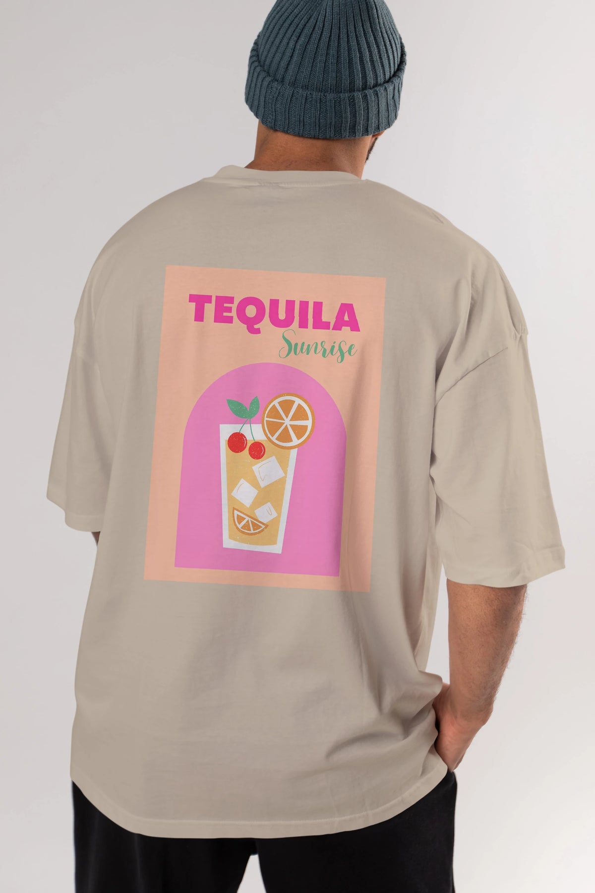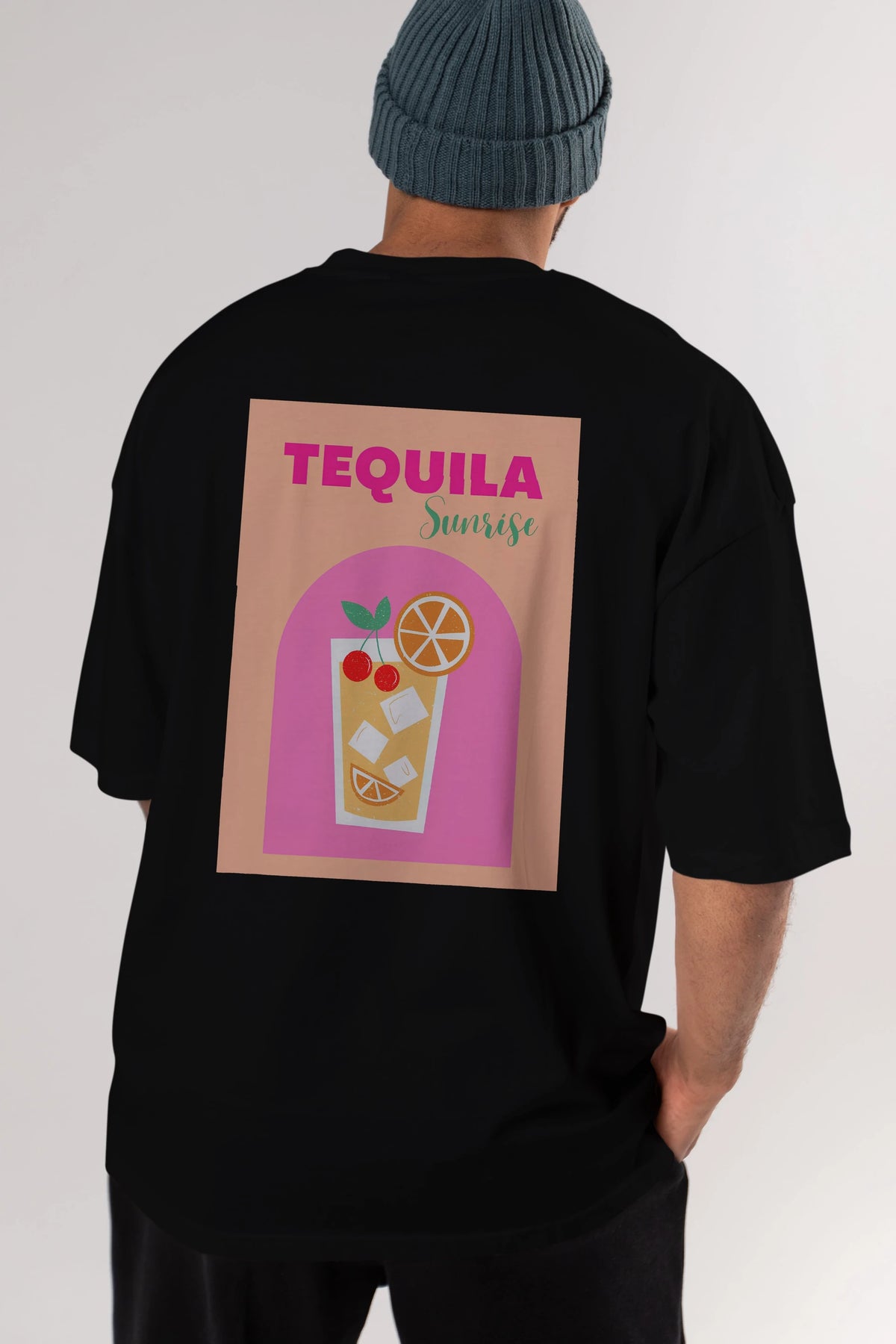 Tequila Sunrise 2 Arka Baskılı Oversize t-shirt Erkek Kadın Unisex %100 Pamuk Bisiklet Yaka tişort