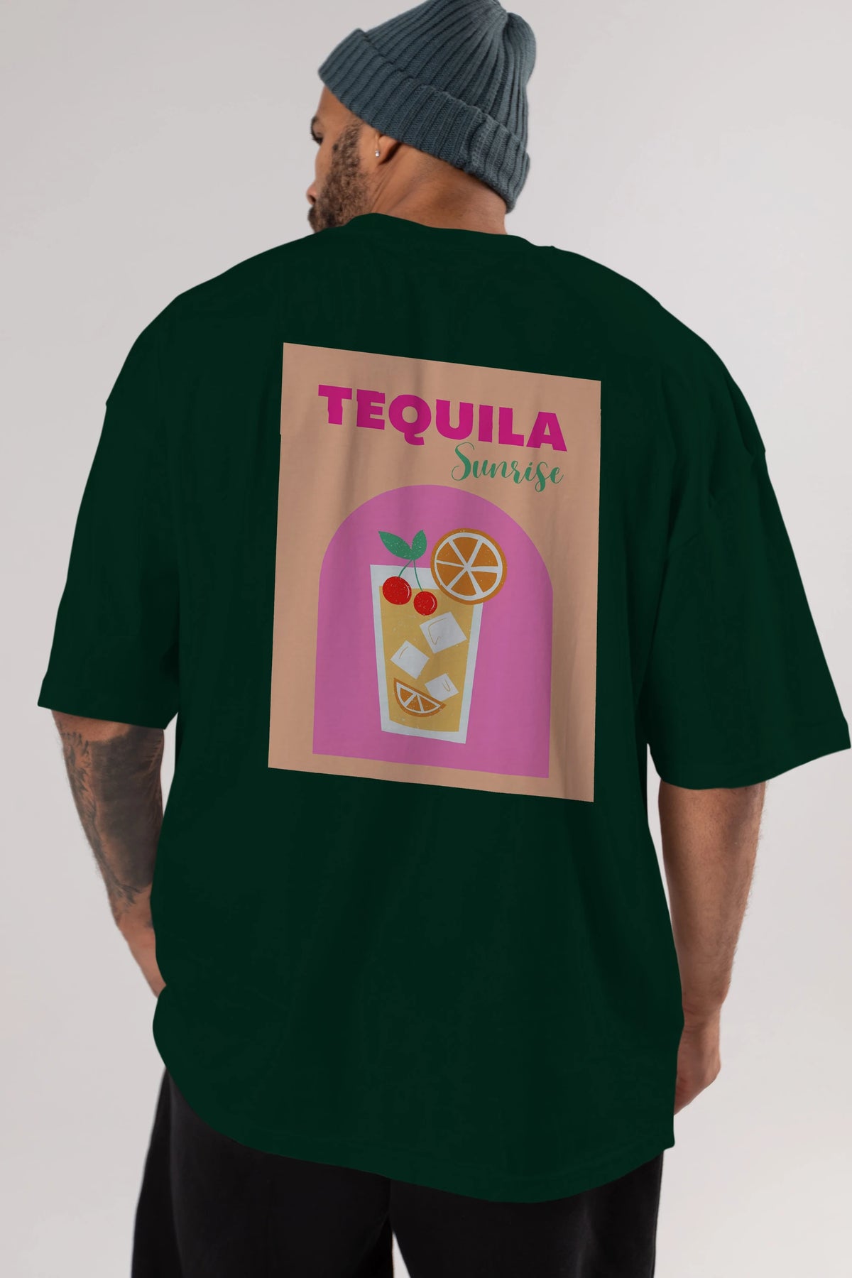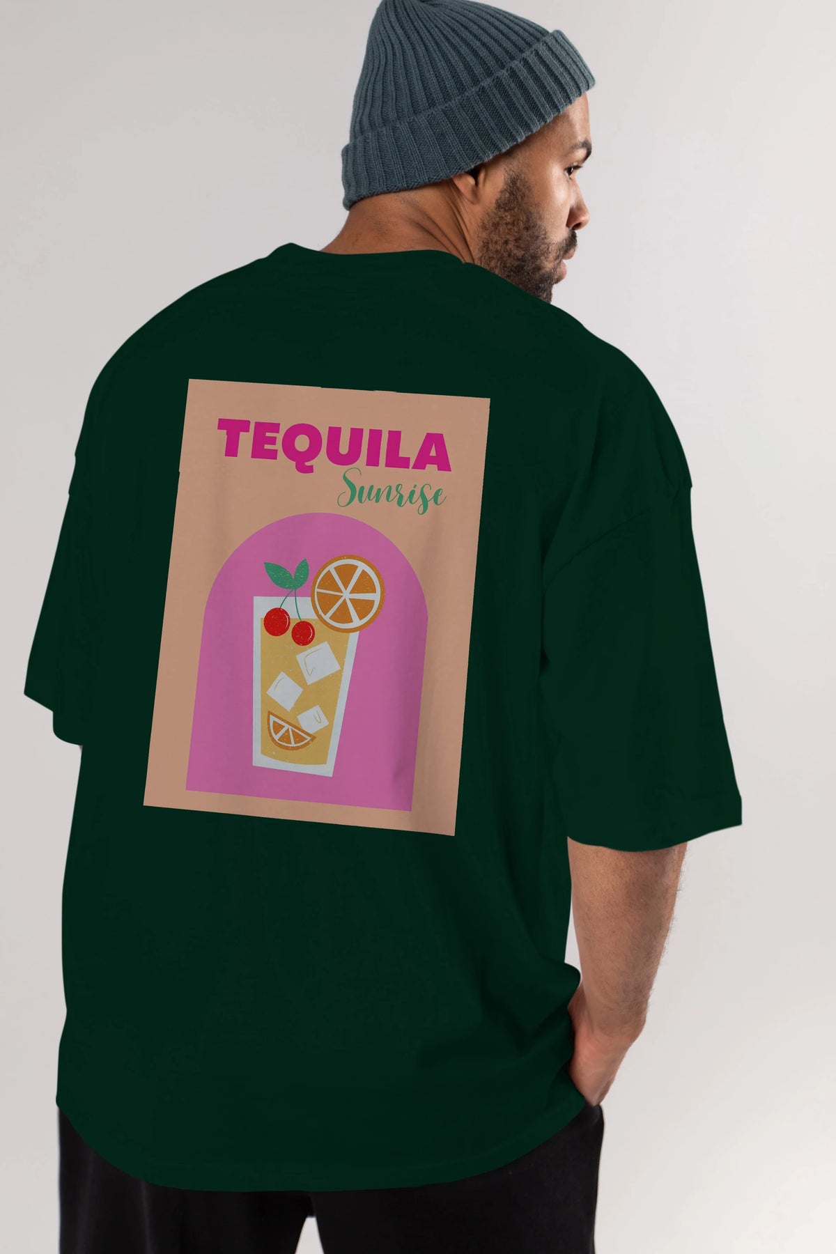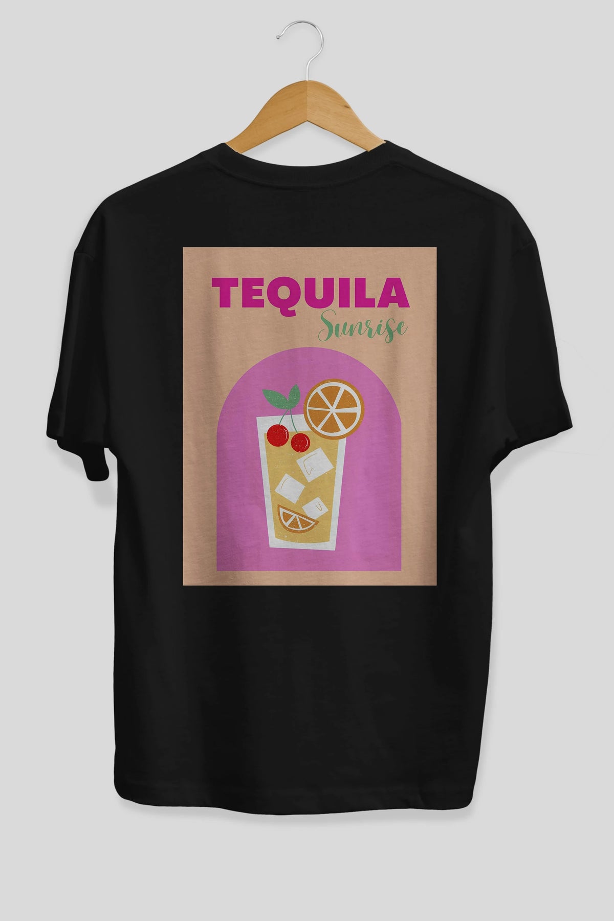 Tequila Sunrise 2 Arka Baskılı Oversize t-shirt Erkek Kadın Unisex %100 Pamuk Bisiklet Yaka tişort