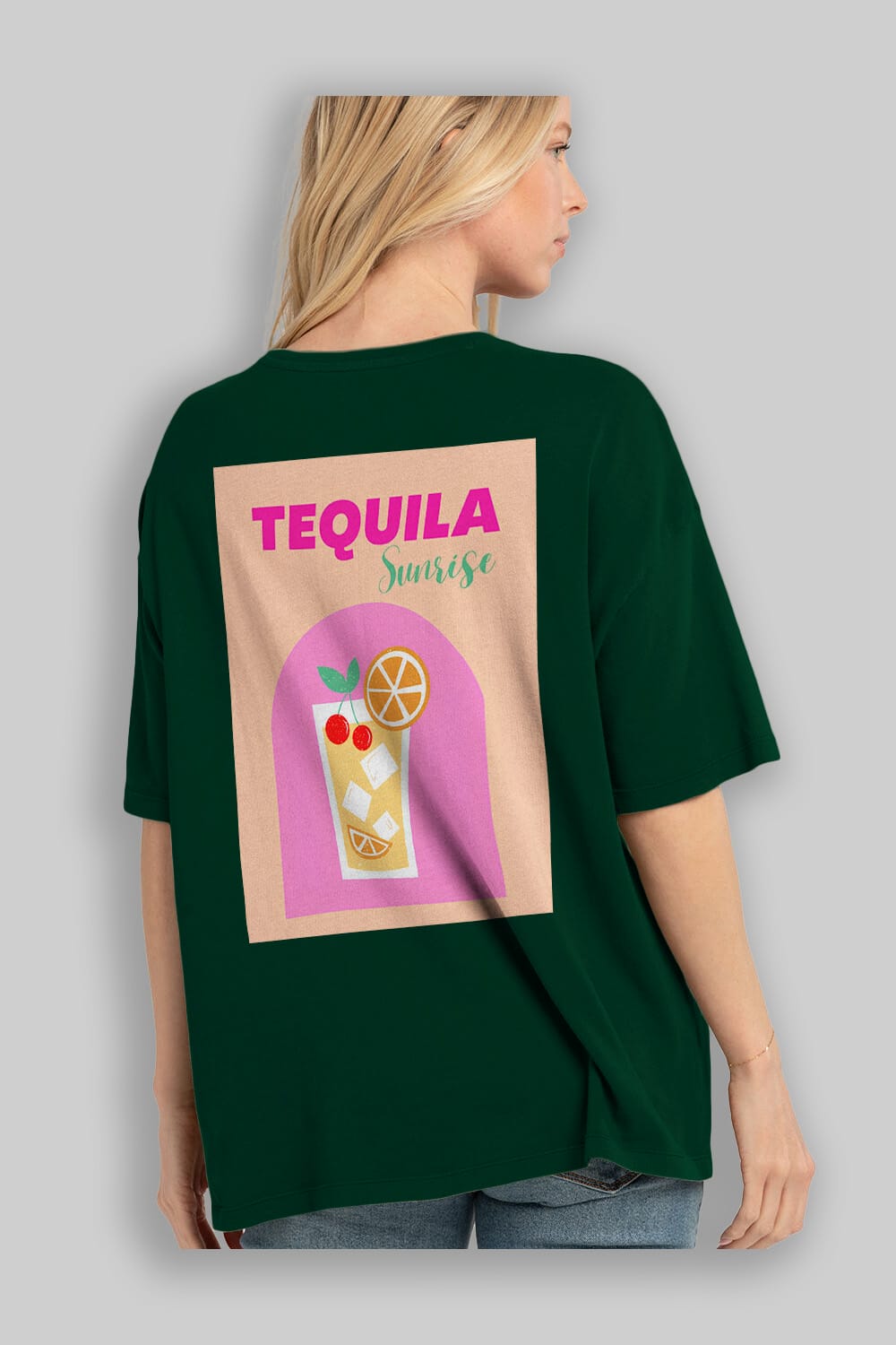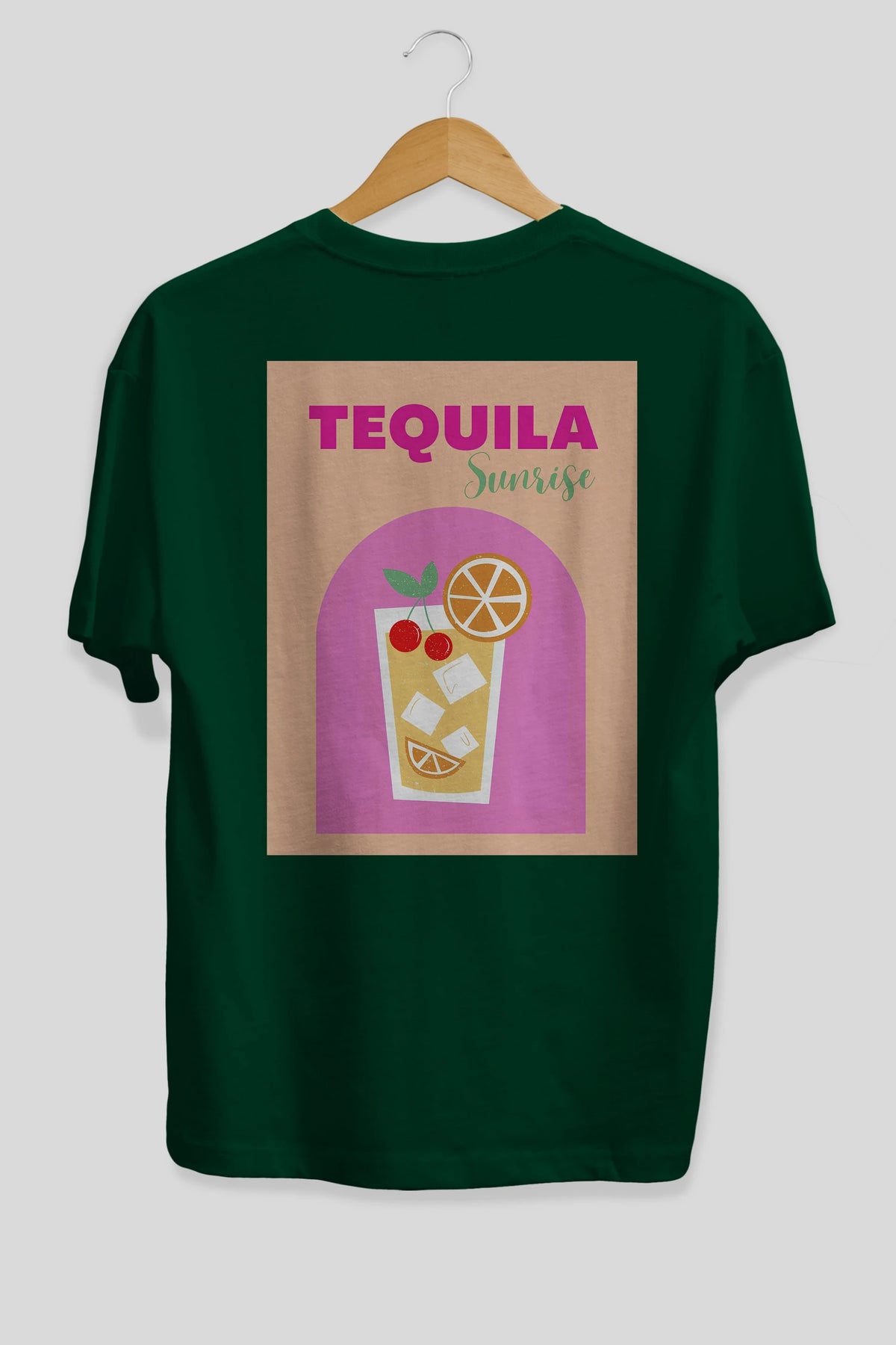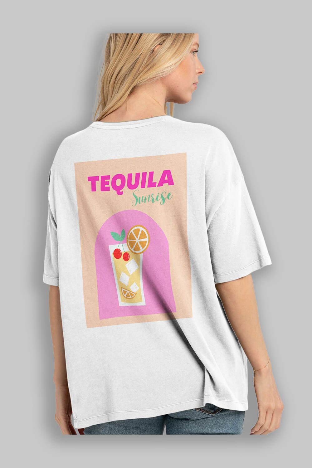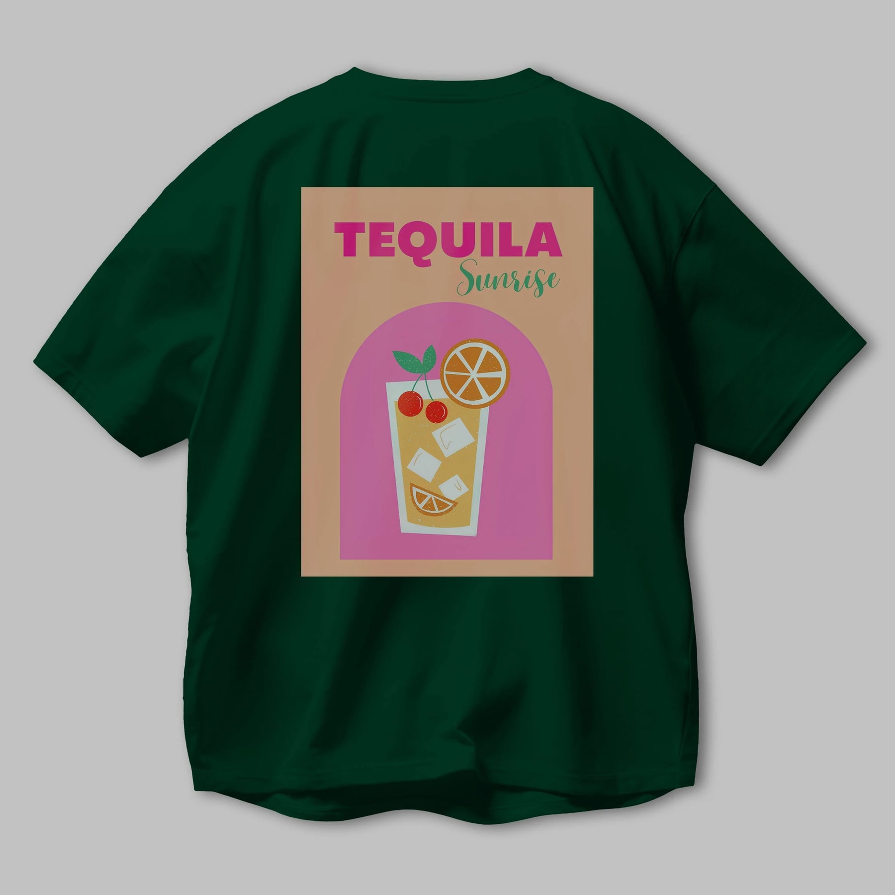 Tequila Sunrise 2 Arka Baskılı Oversize t-shirt Erkek Kadın Unisex %100 Pamuk Bisiklet Yaka tişort