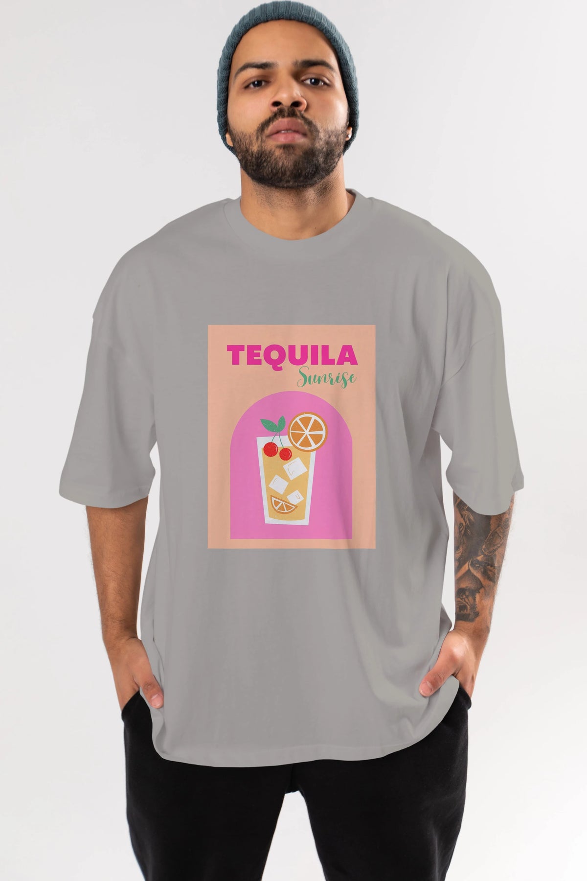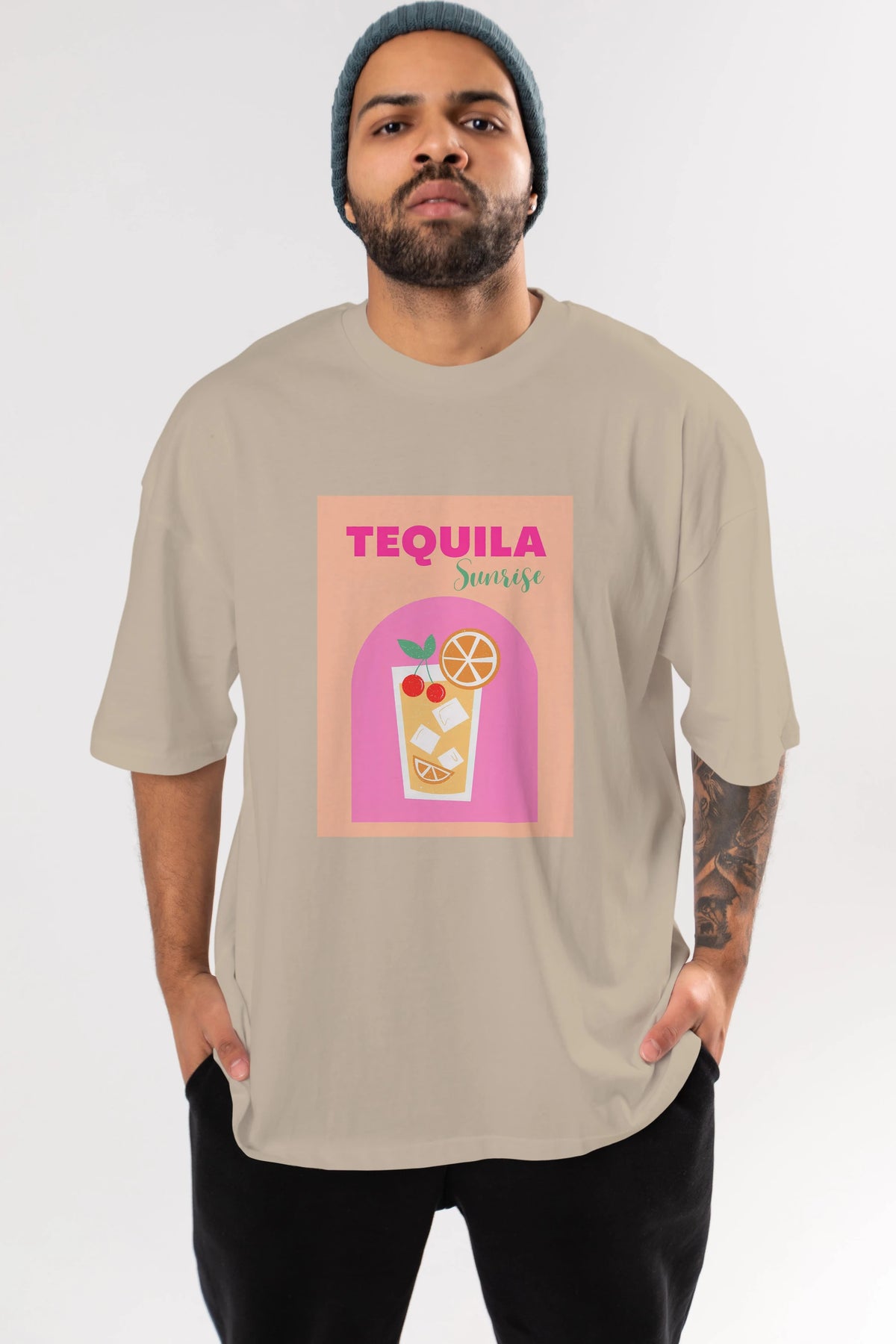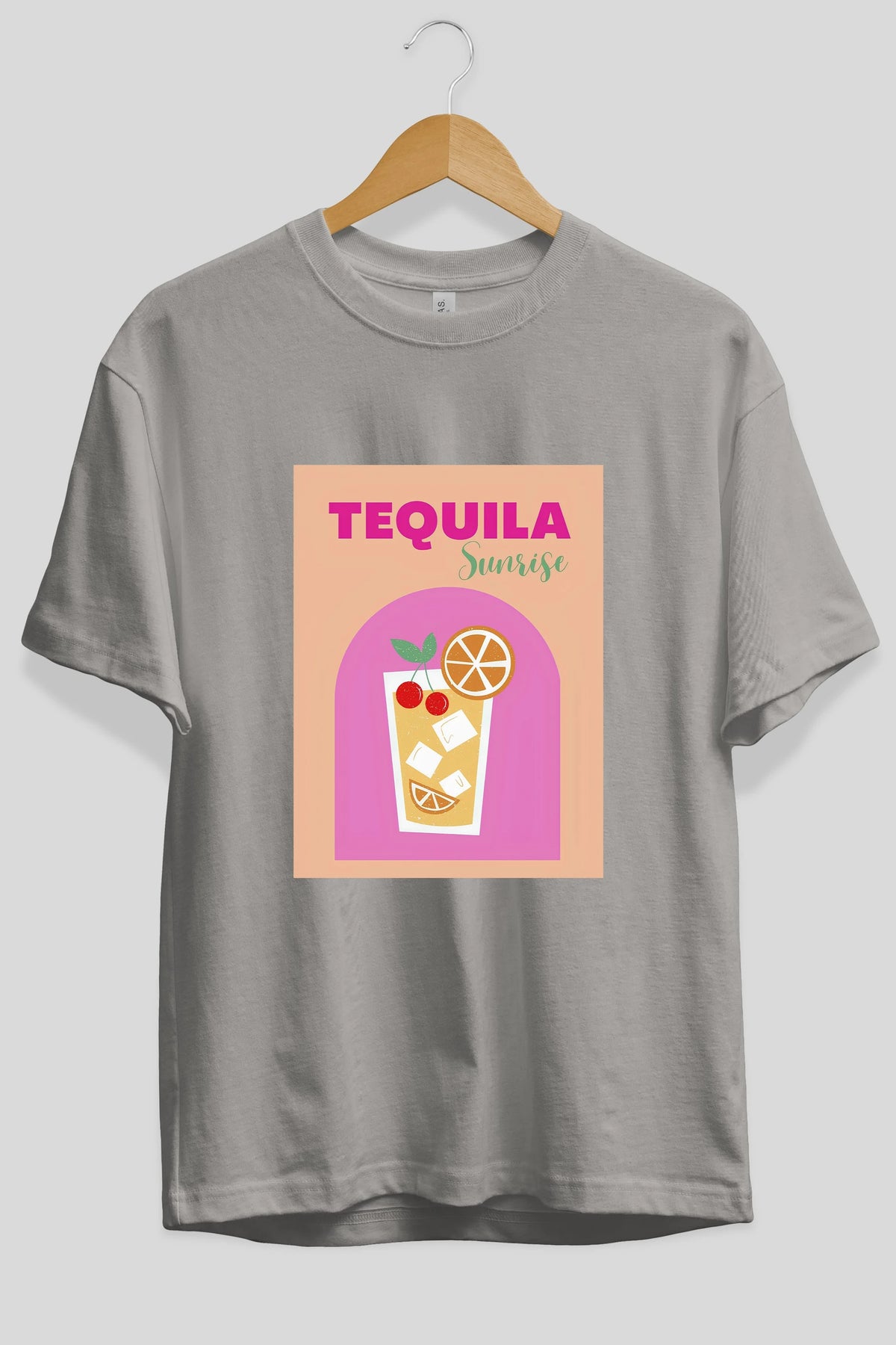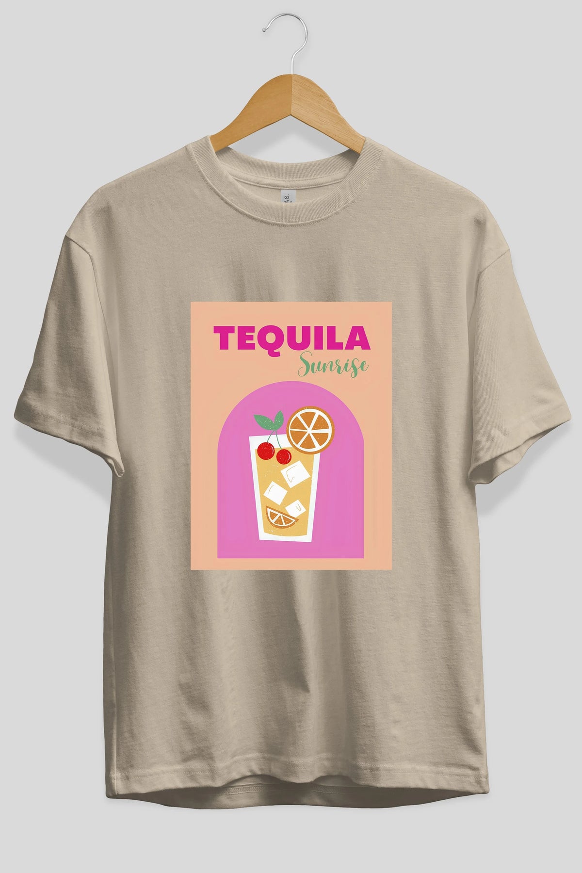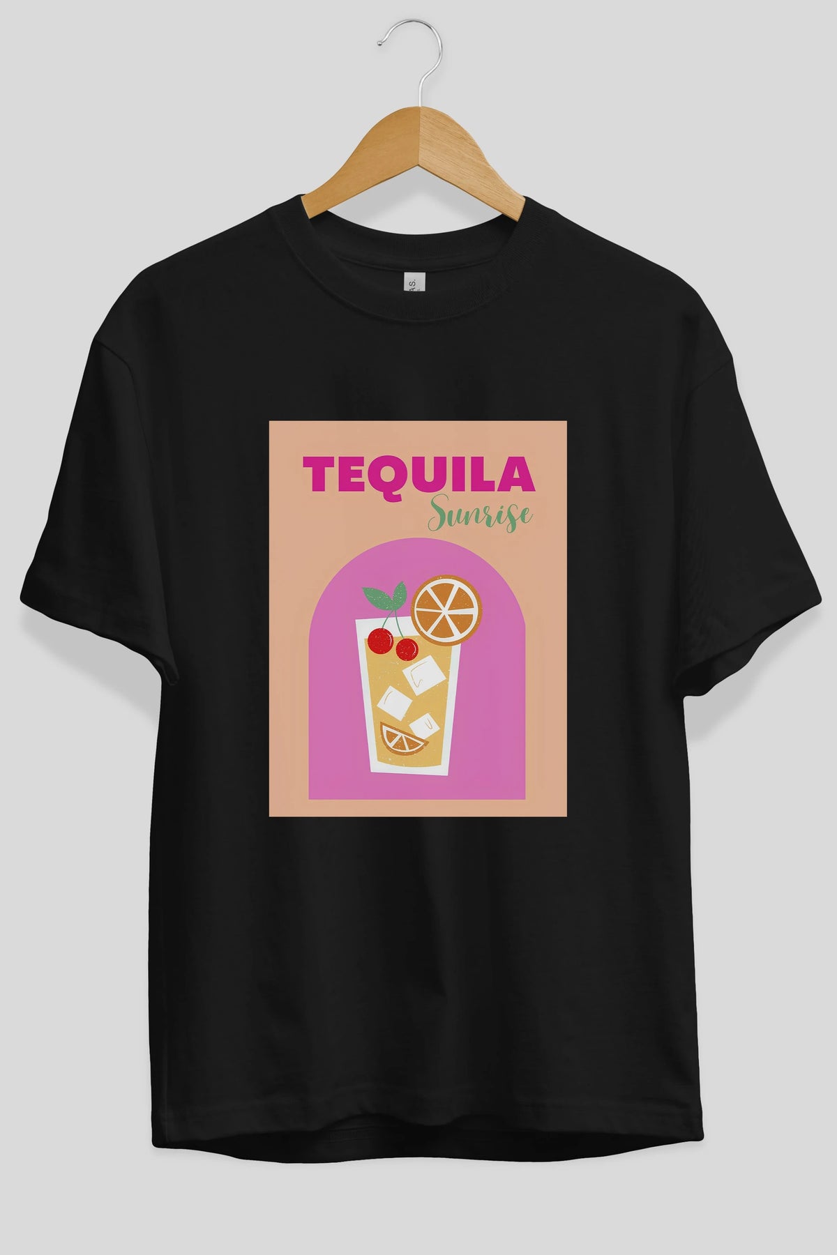 Tequila Sunrise 2 Ön Baskılı Oversize t-shirt Erkek Kadın Unisex %100 Pamuk Bisiklet Yaka tişort
