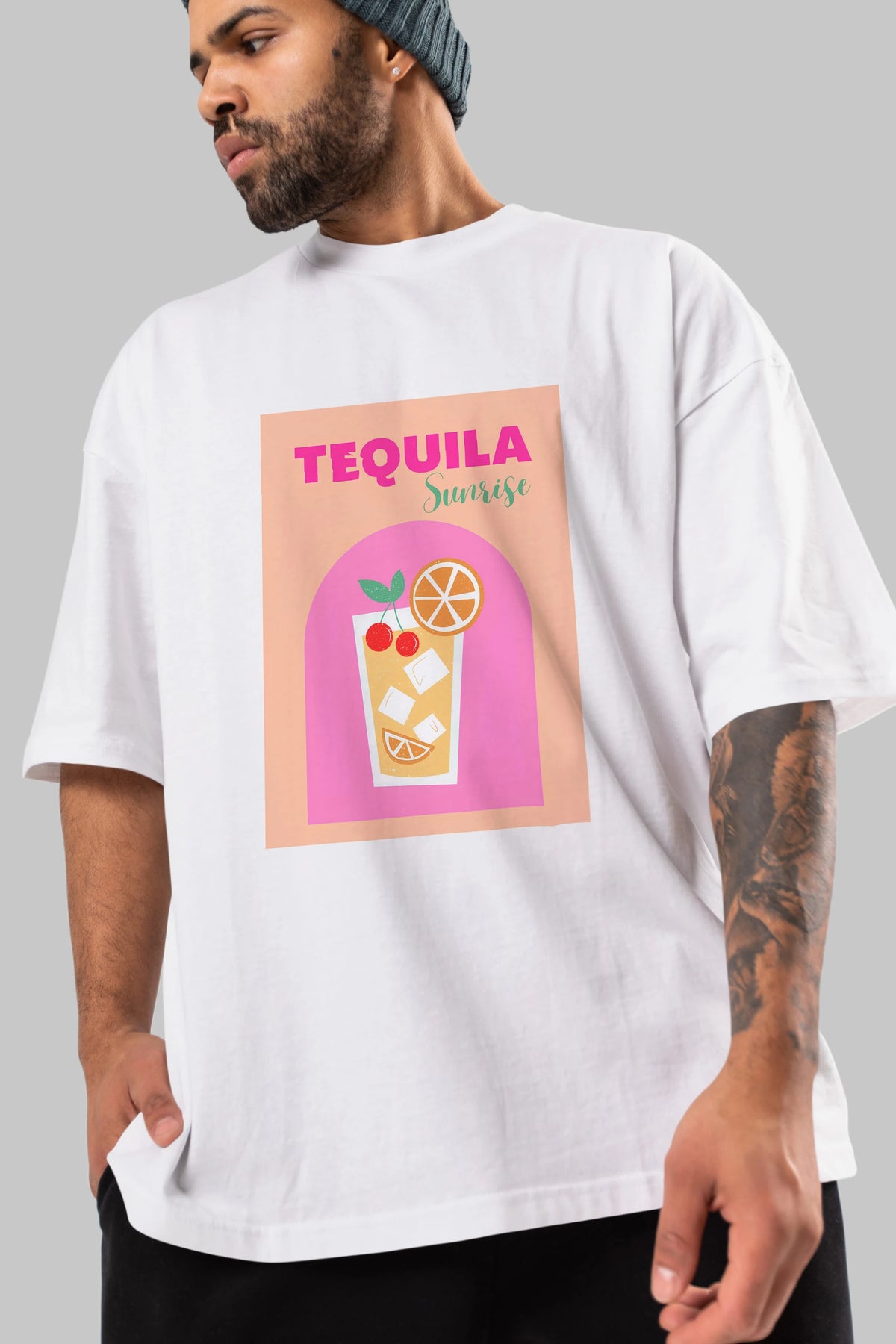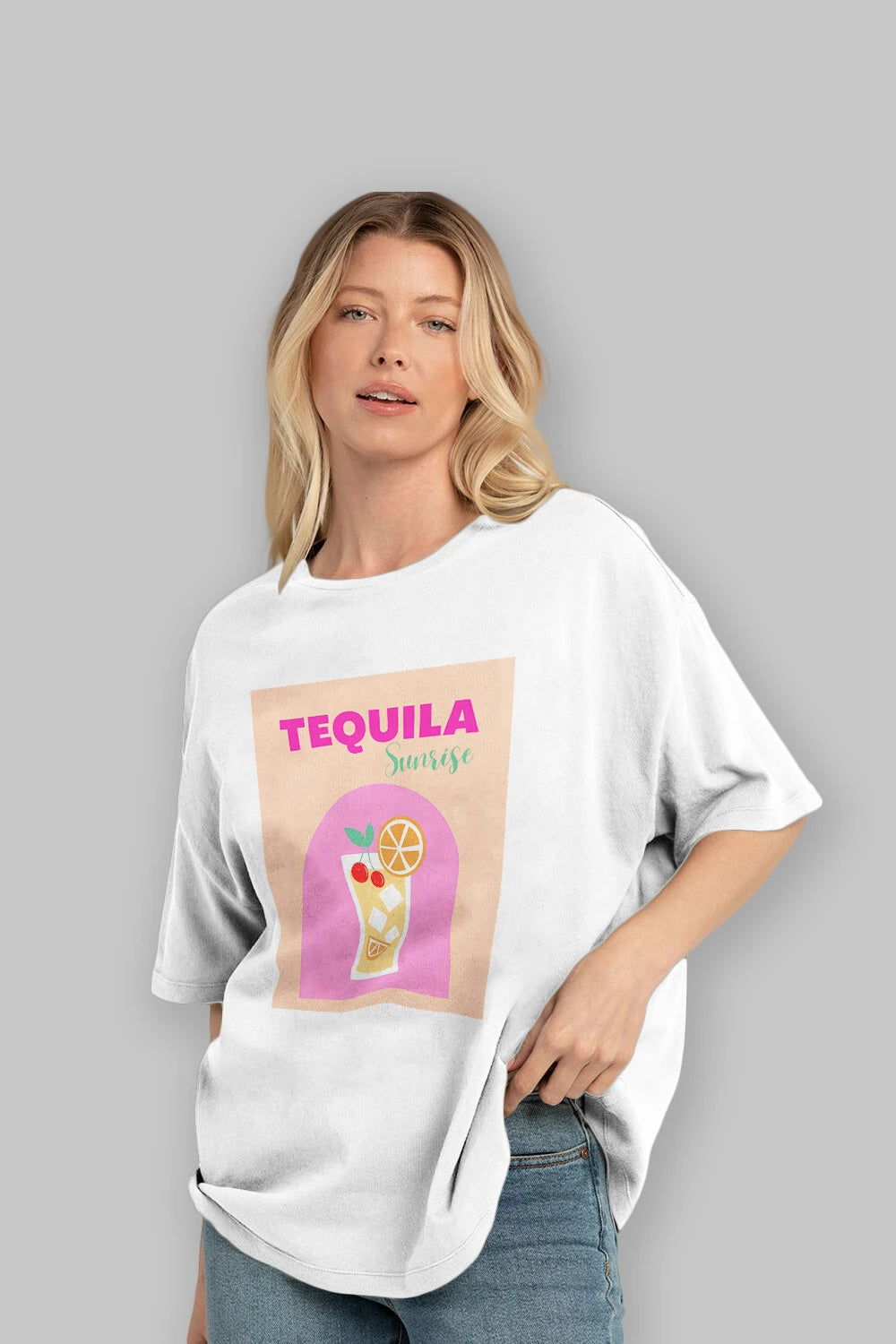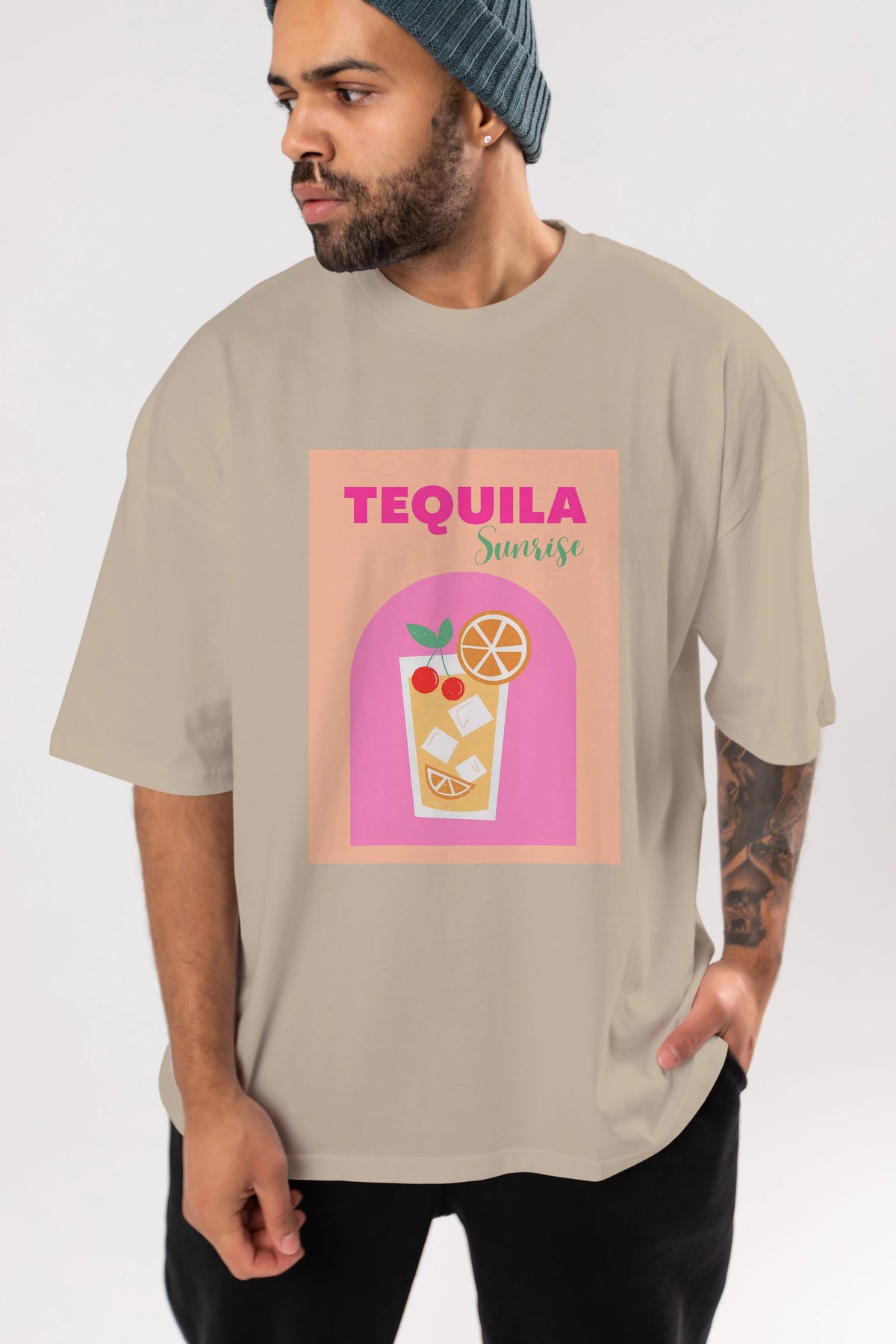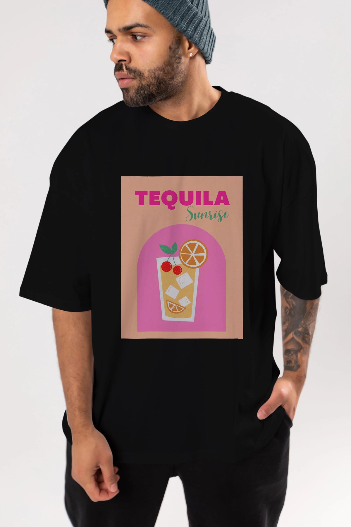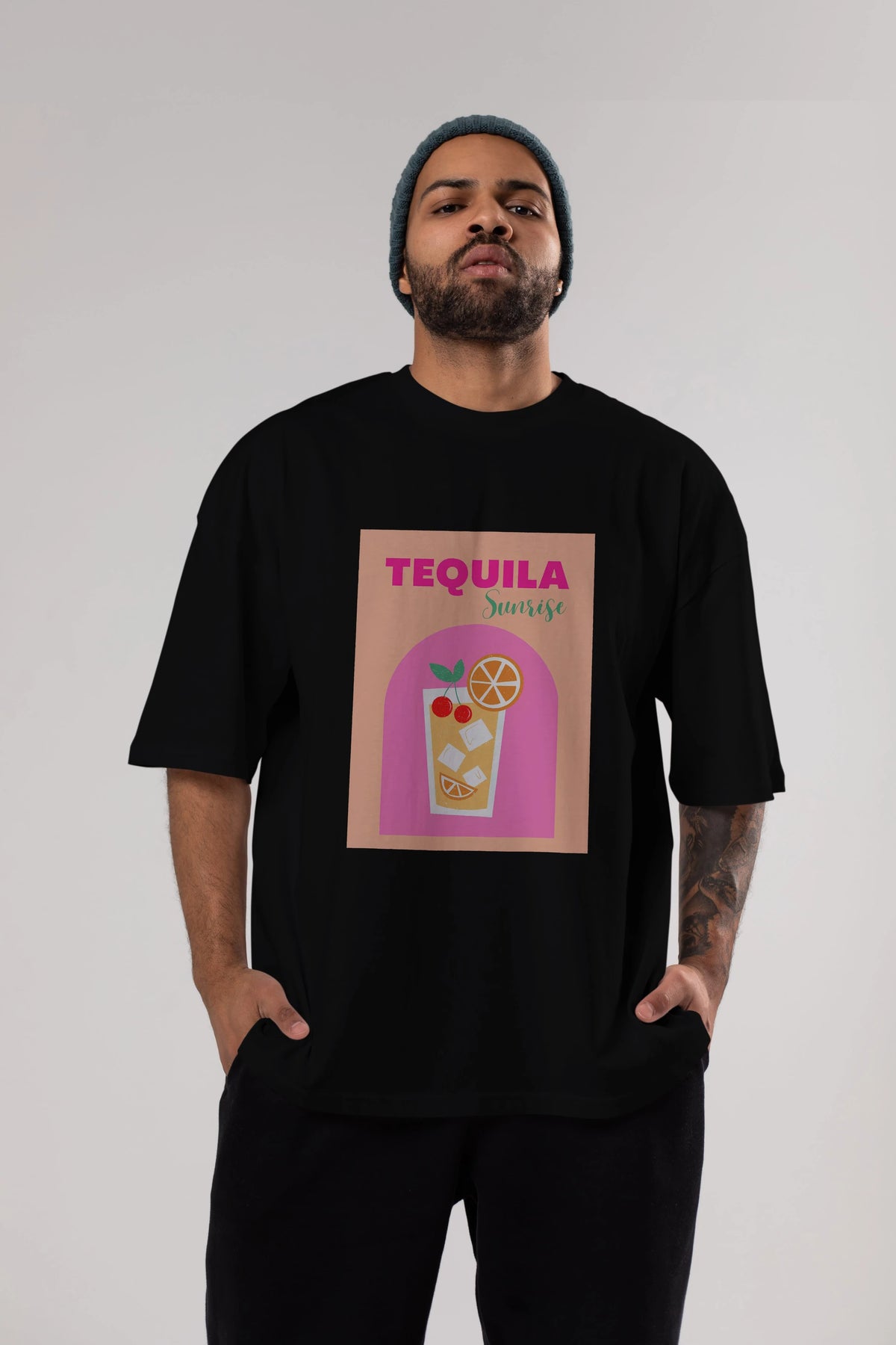 Tequila Sunrise 2 Ön Baskılı Oversize t-shirt Erkek Kadın Unisex %100 Pamuk Bisiklet Yaka tişort
