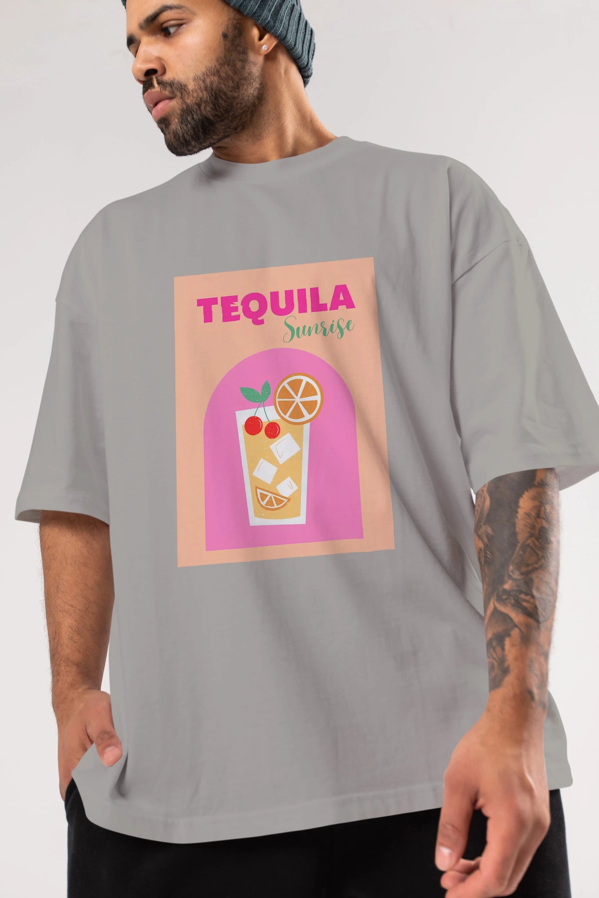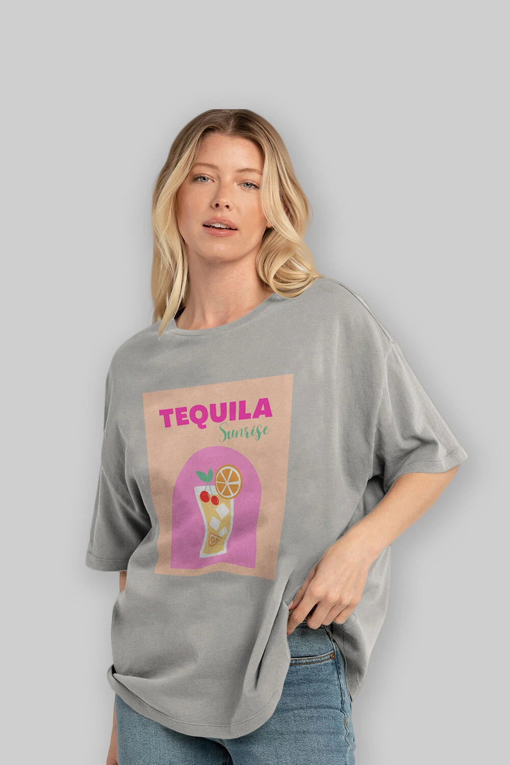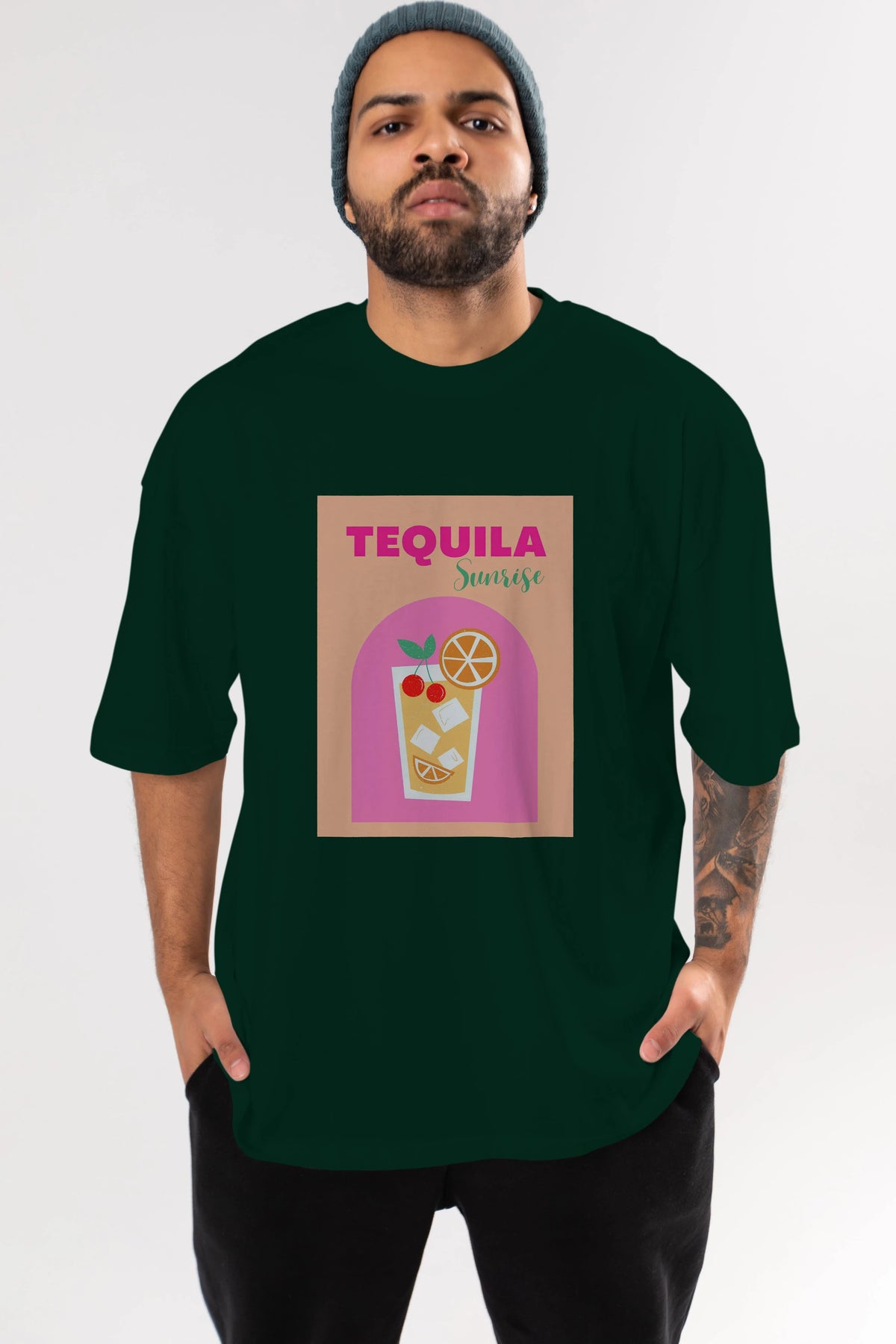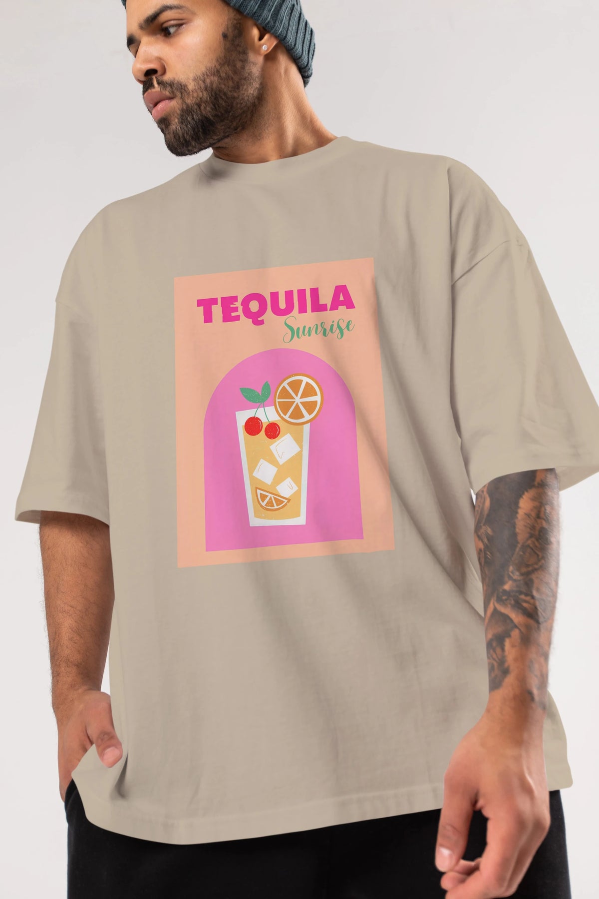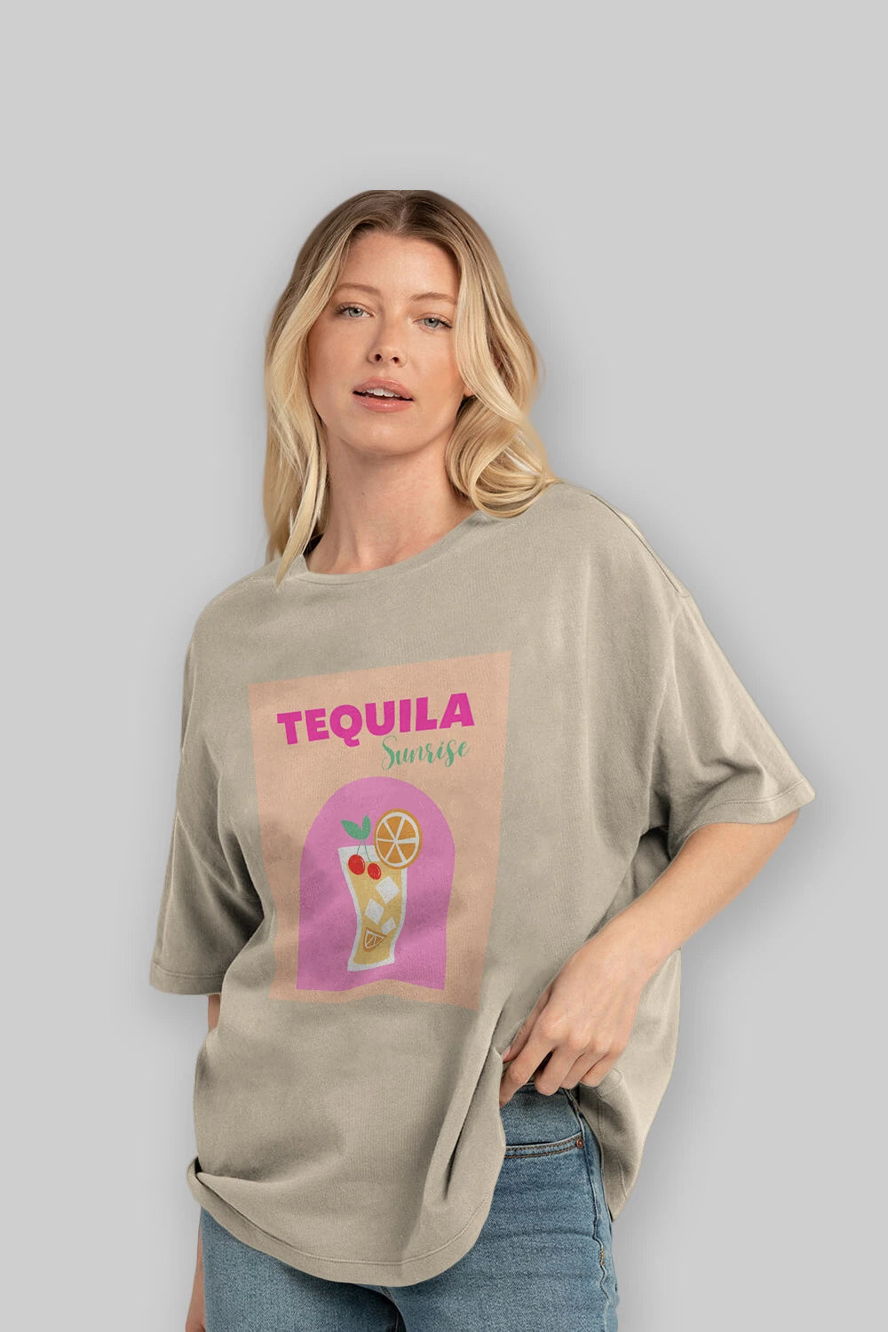 Tequila Sunrise 2 Ön Baskılı Oversize t-shirt Erkek Kadın Unisex %100 Pamuk Bisiklet Yaka tişort