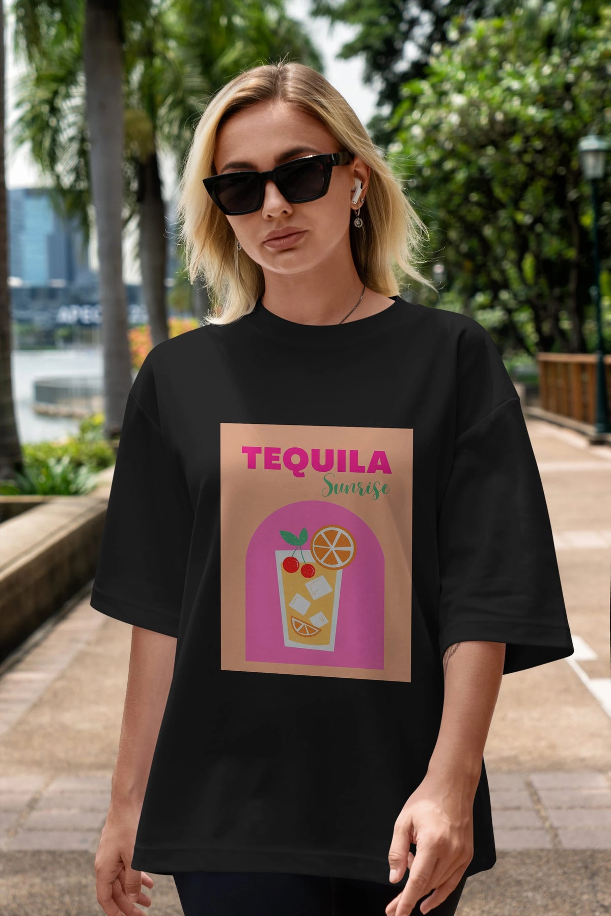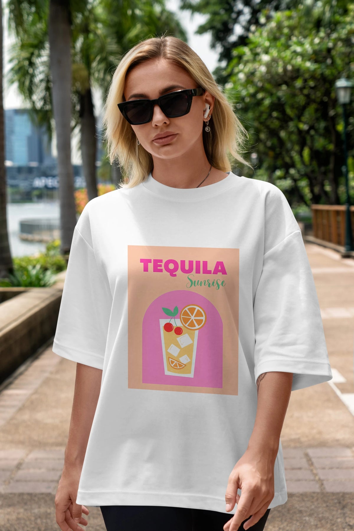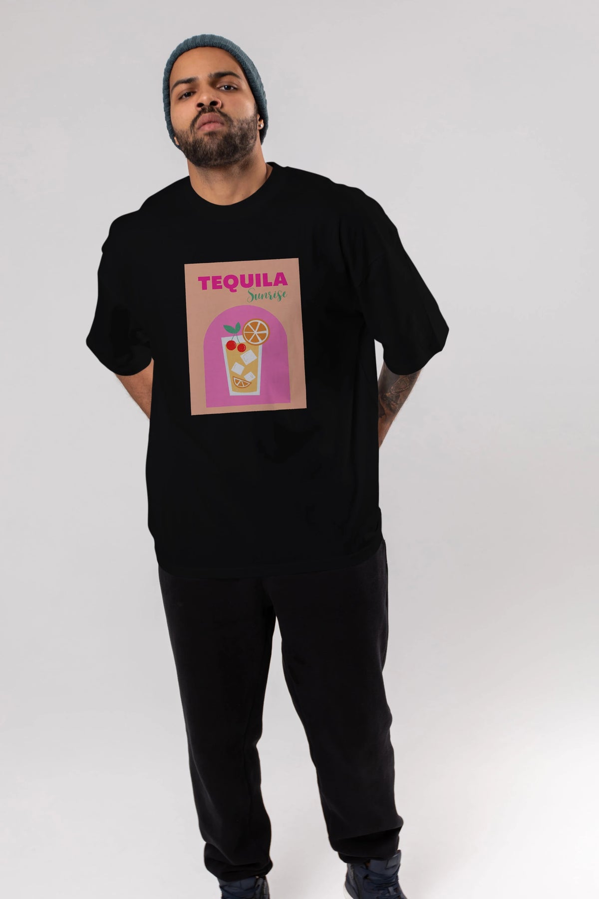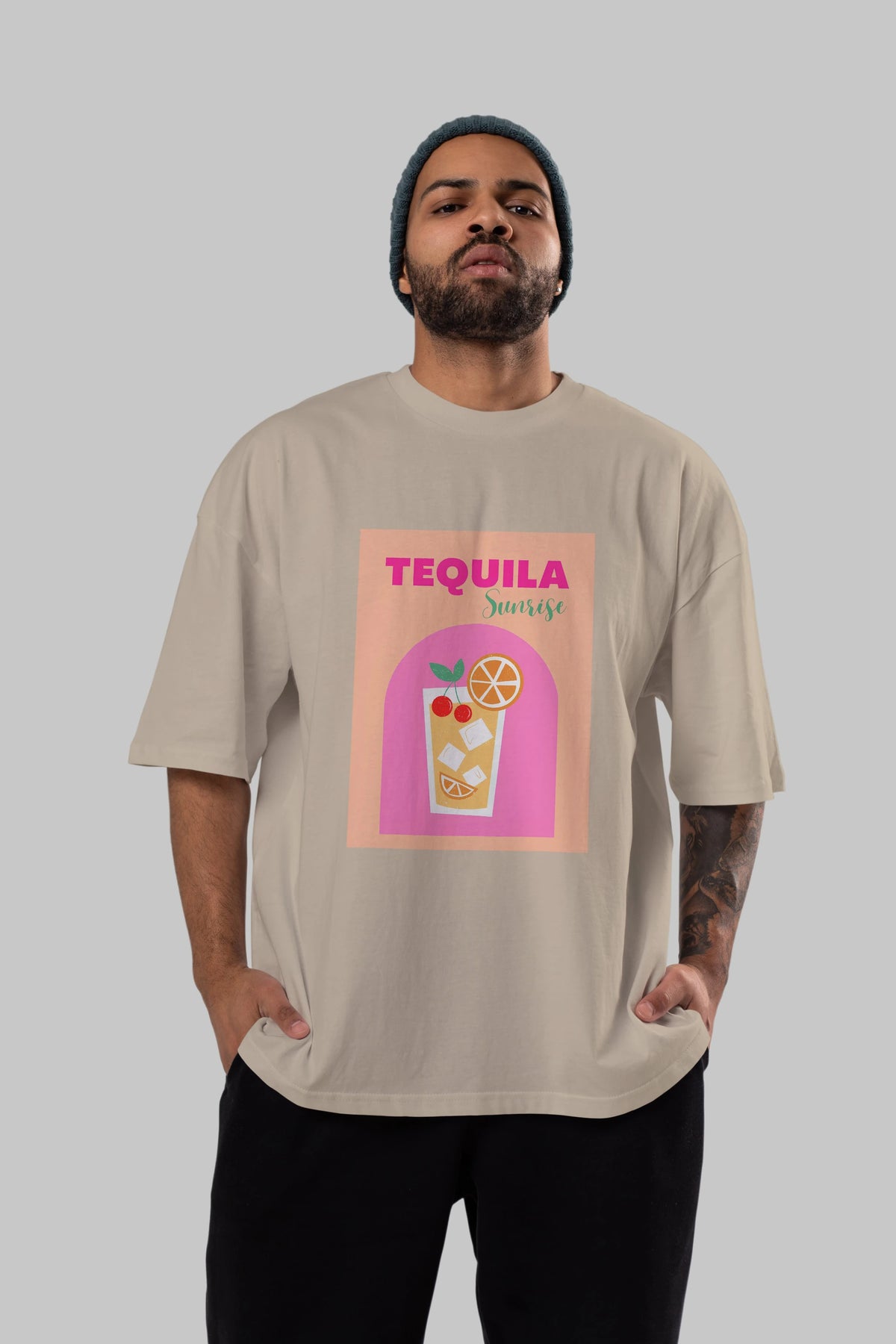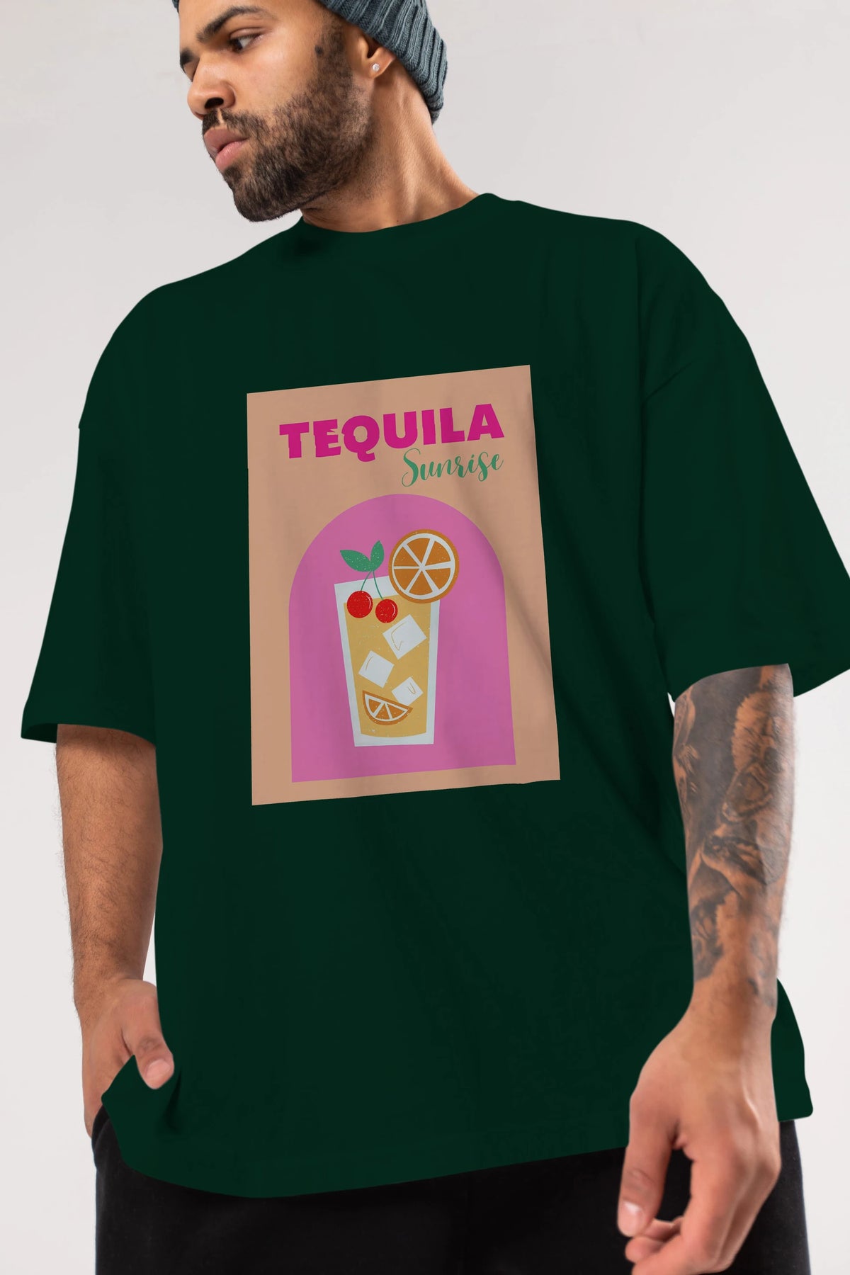 Tequila Sunrise 2 Ön Baskılı Oversize t-shirt Erkek Kadın Unisex %100 Pamuk Bisiklet Yaka tişort