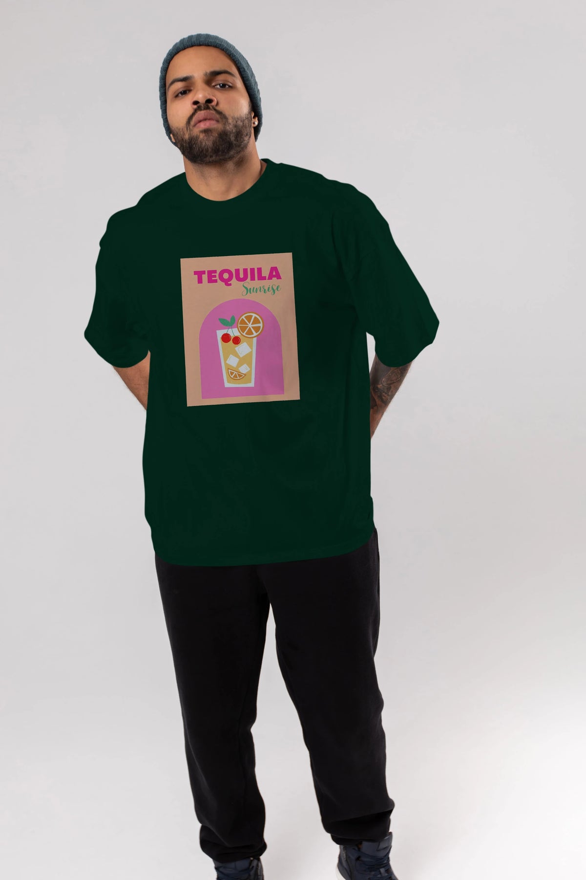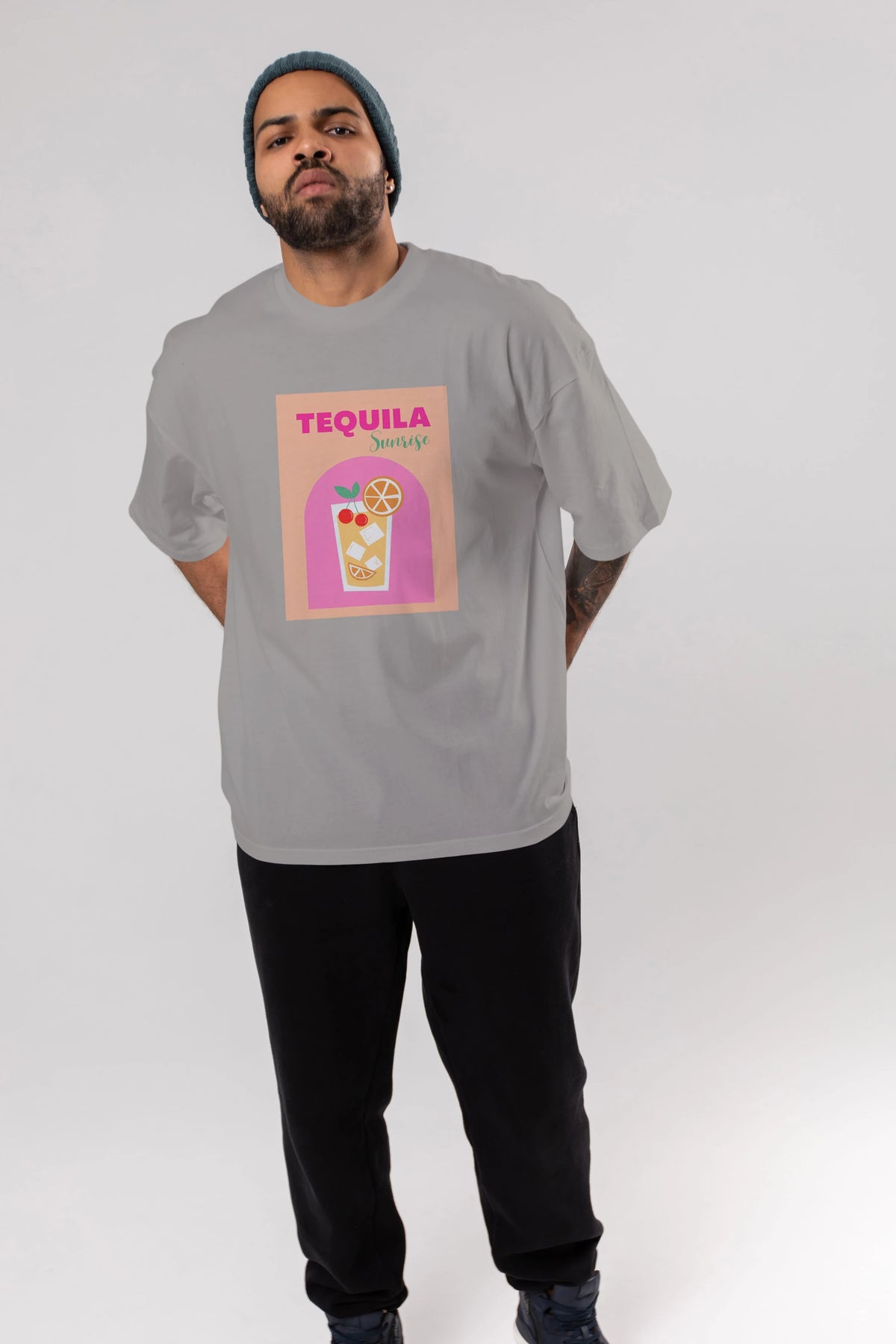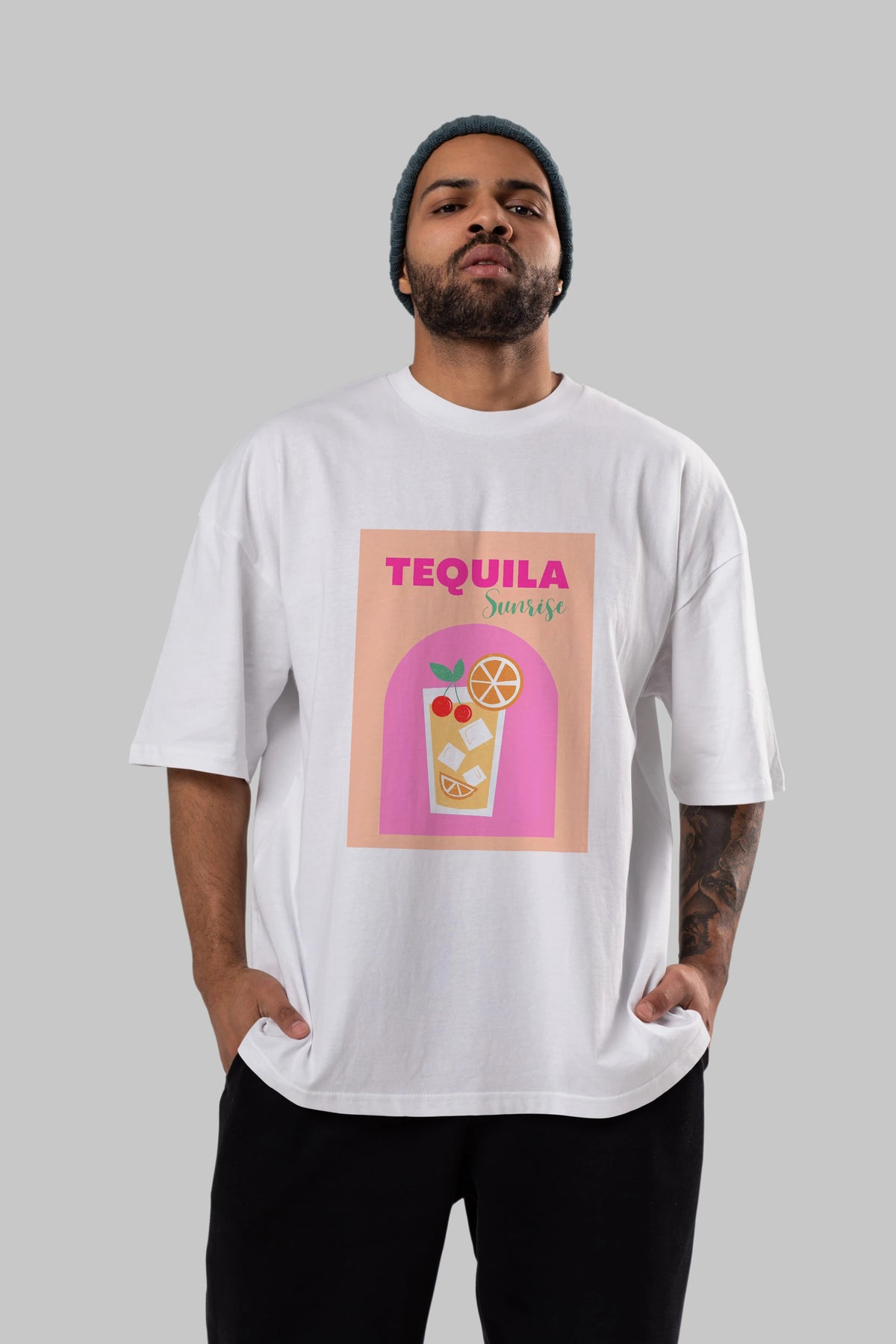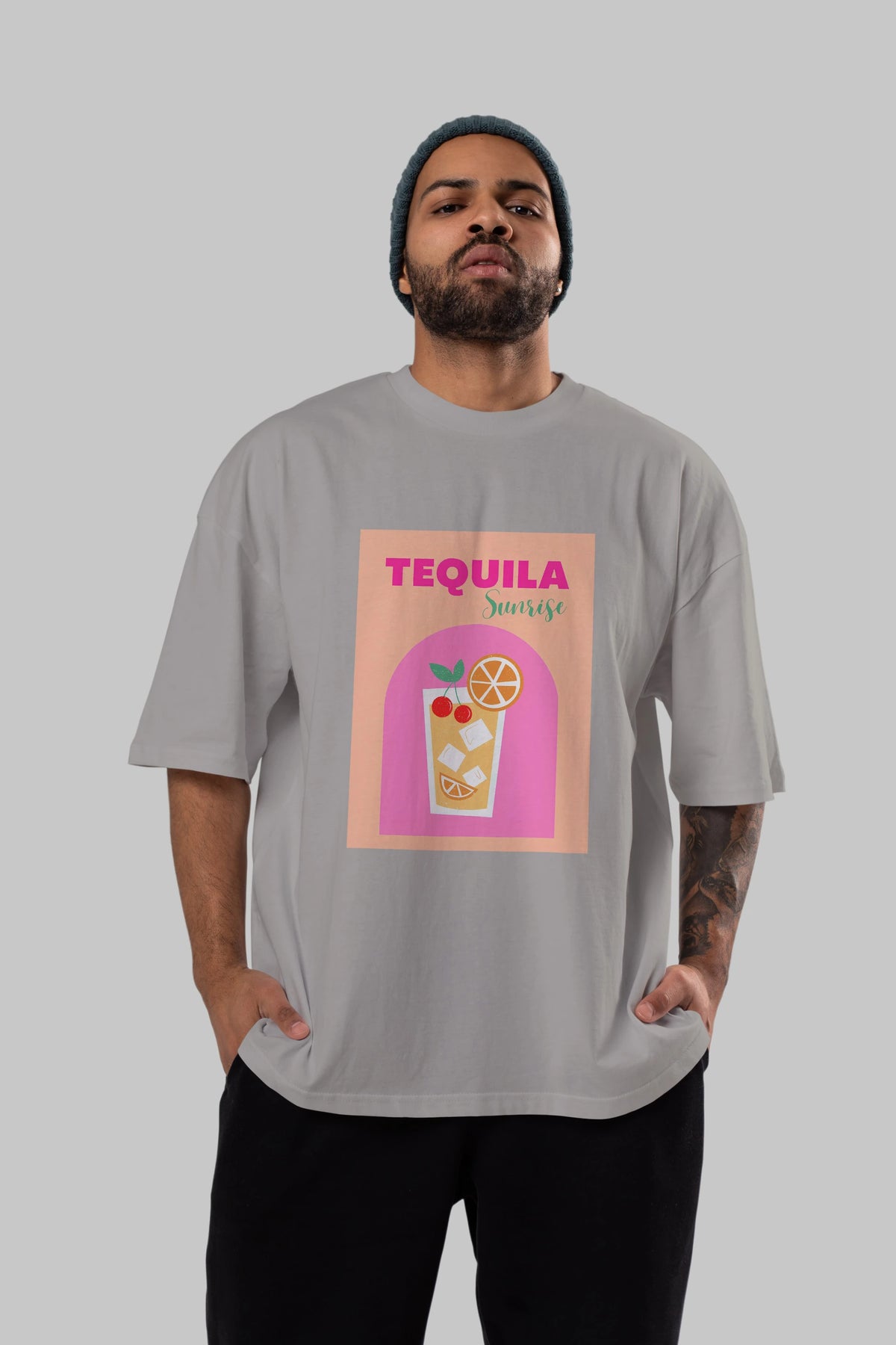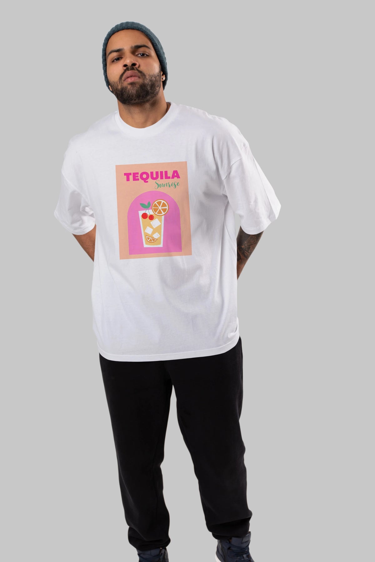 Tequila Sunrise 2 Ön Baskılı Oversize t-shirt Erkek Kadın Unisex %100 Pamuk Bisiklet Yaka tişort