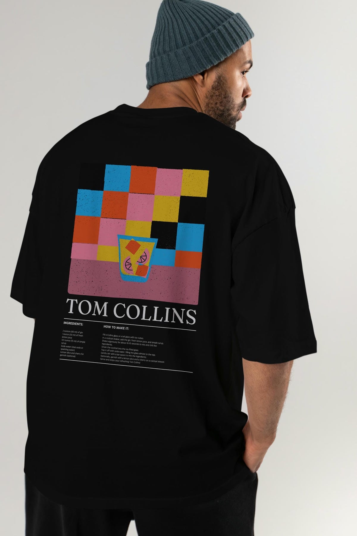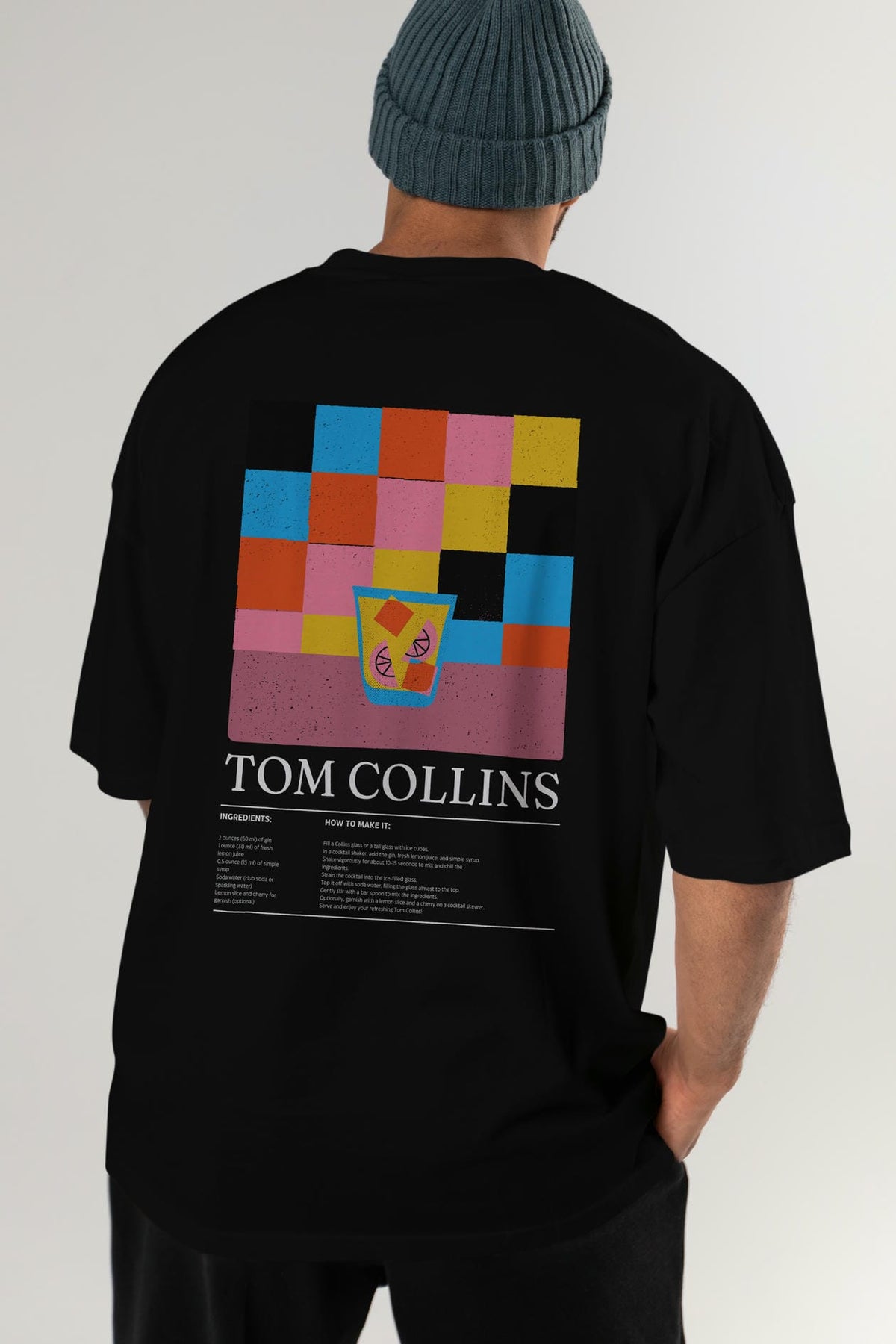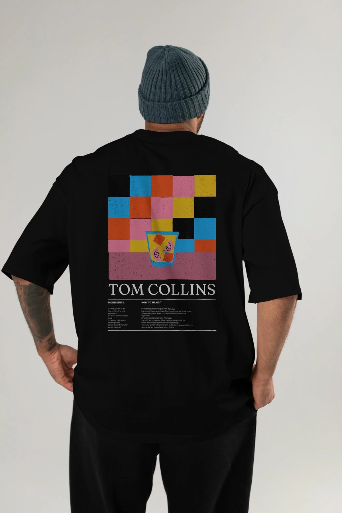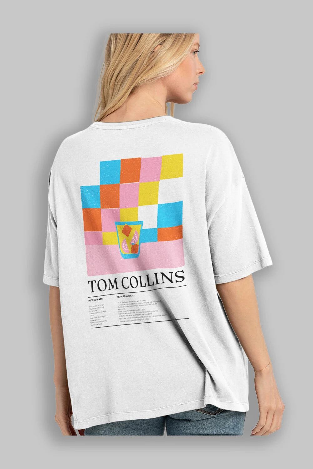 Tom Collins Kokteyl Serisi Arka Baskılı Oversize t-shirt Erkek Kadın %100 Pamuk Bisiklet Yaka tişort