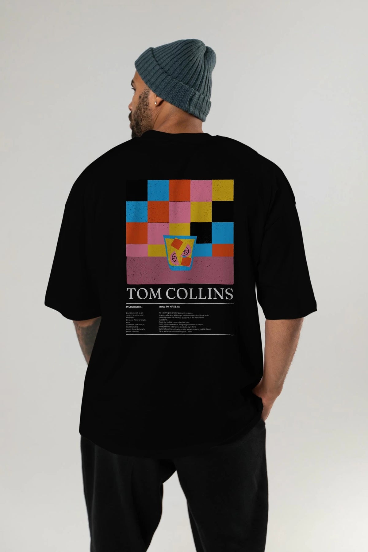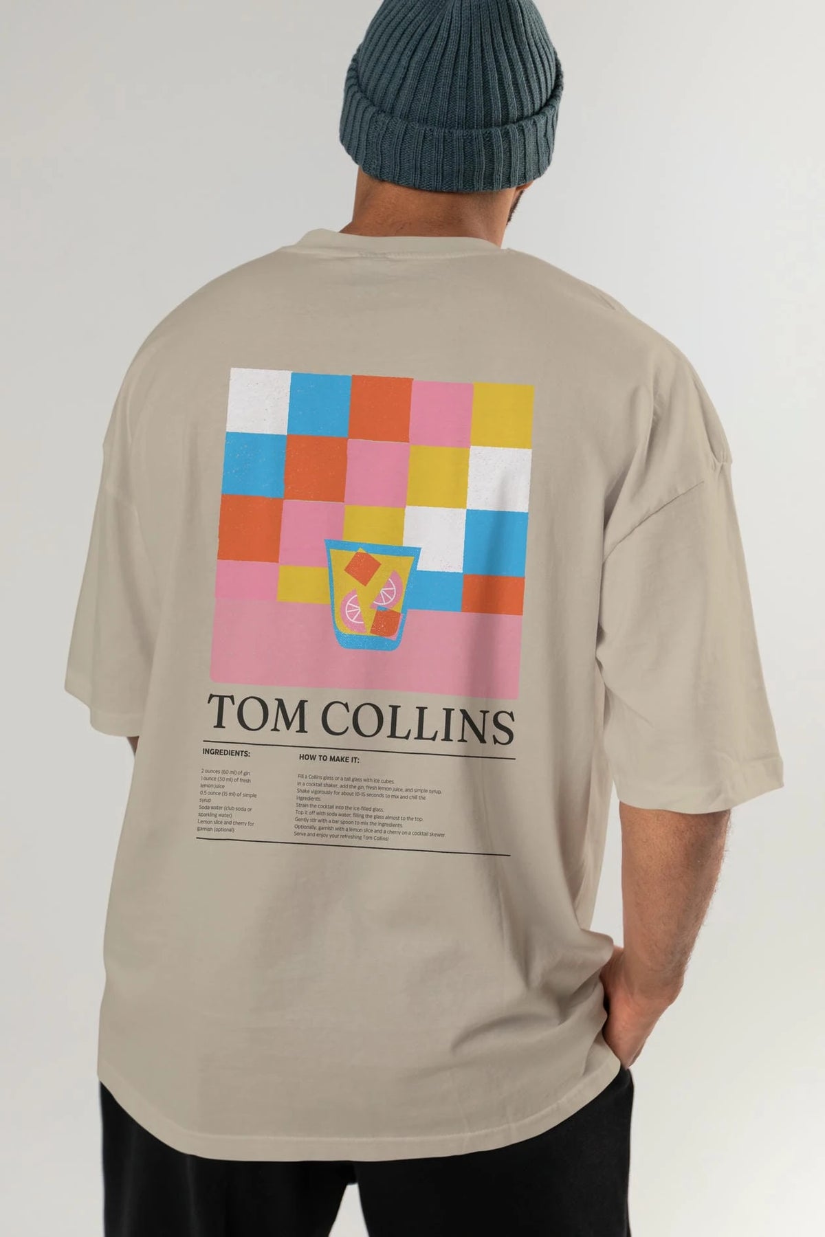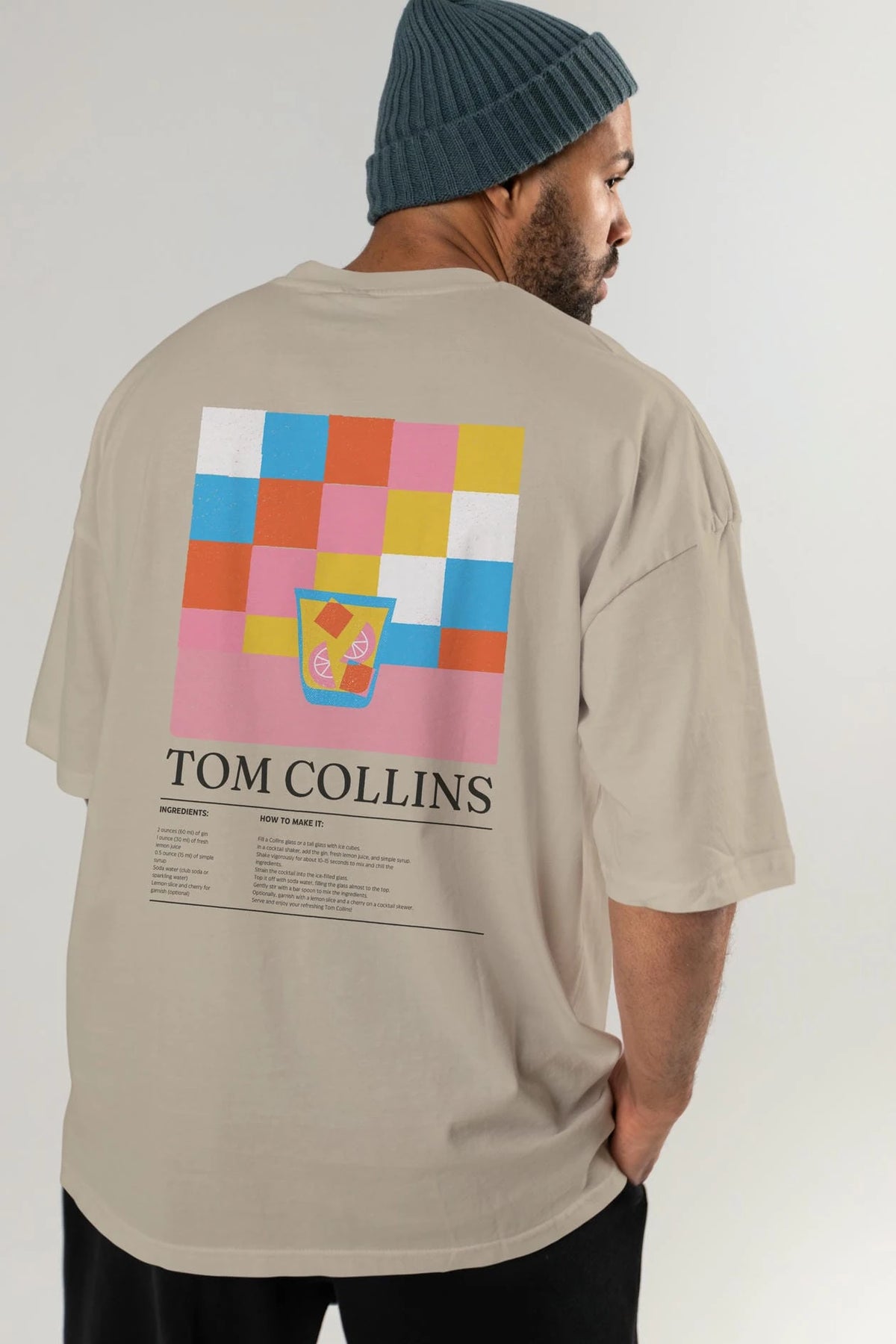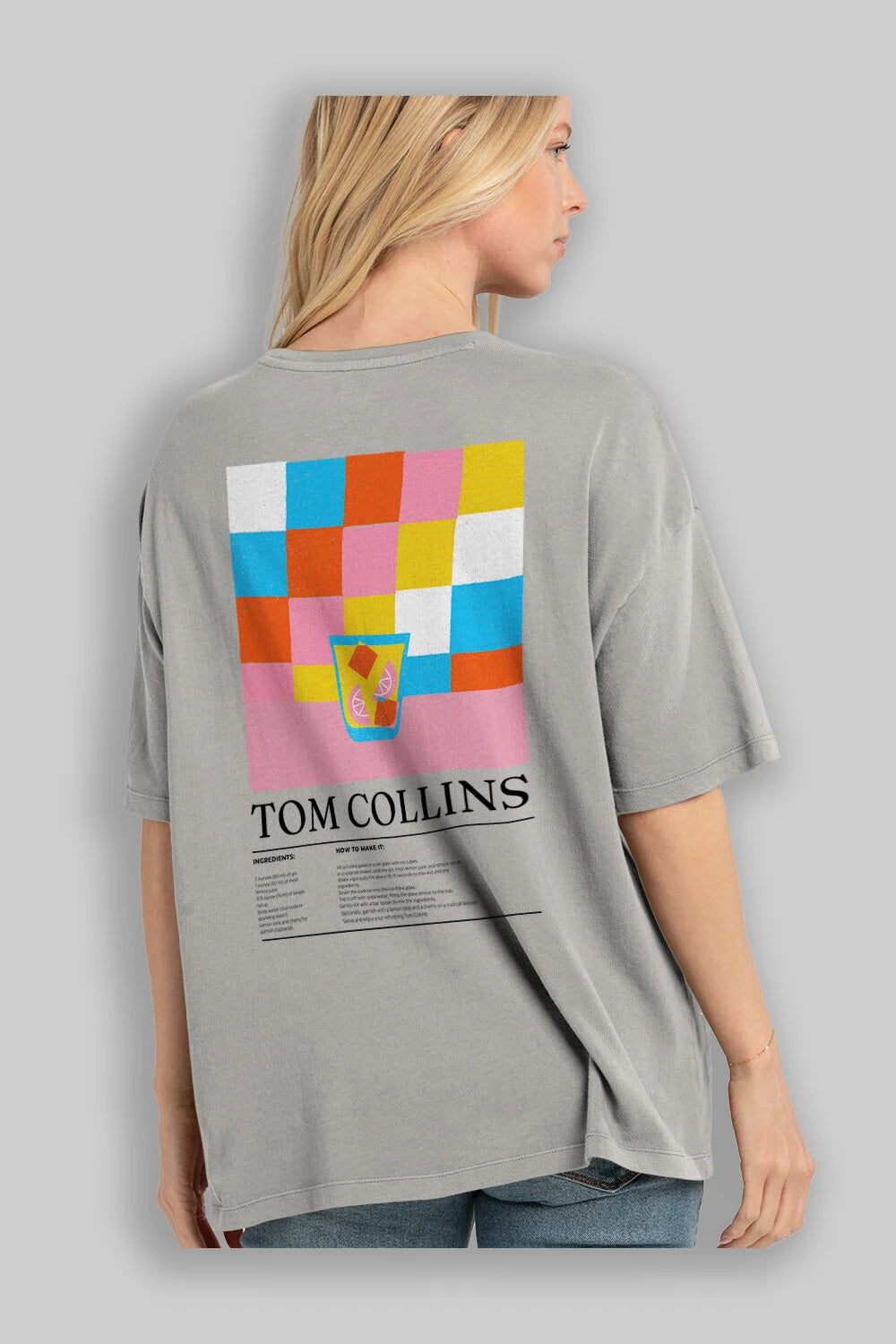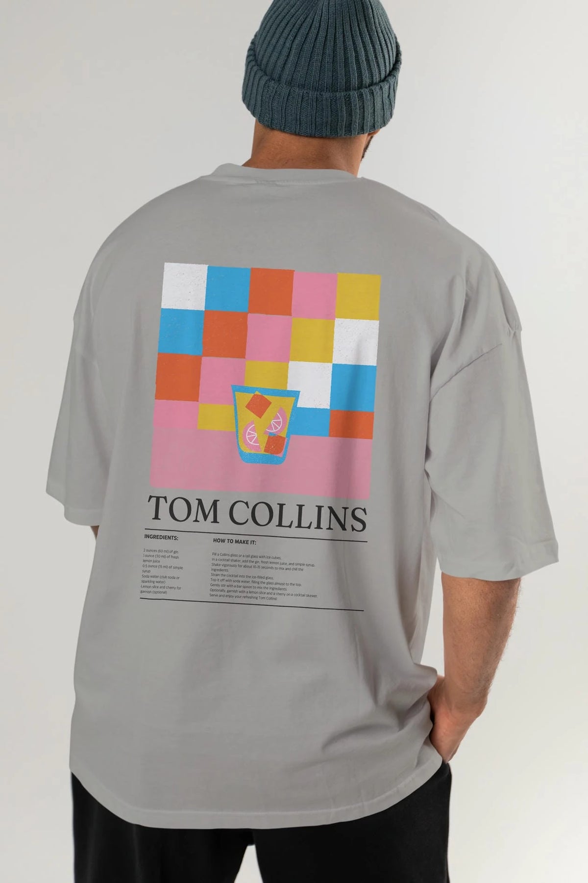Tom Collins Kokteyl Serisi Arka Baskılı Oversize t-shirt Erkek Kadın %100 Pamuk Bisiklet Yaka tişort