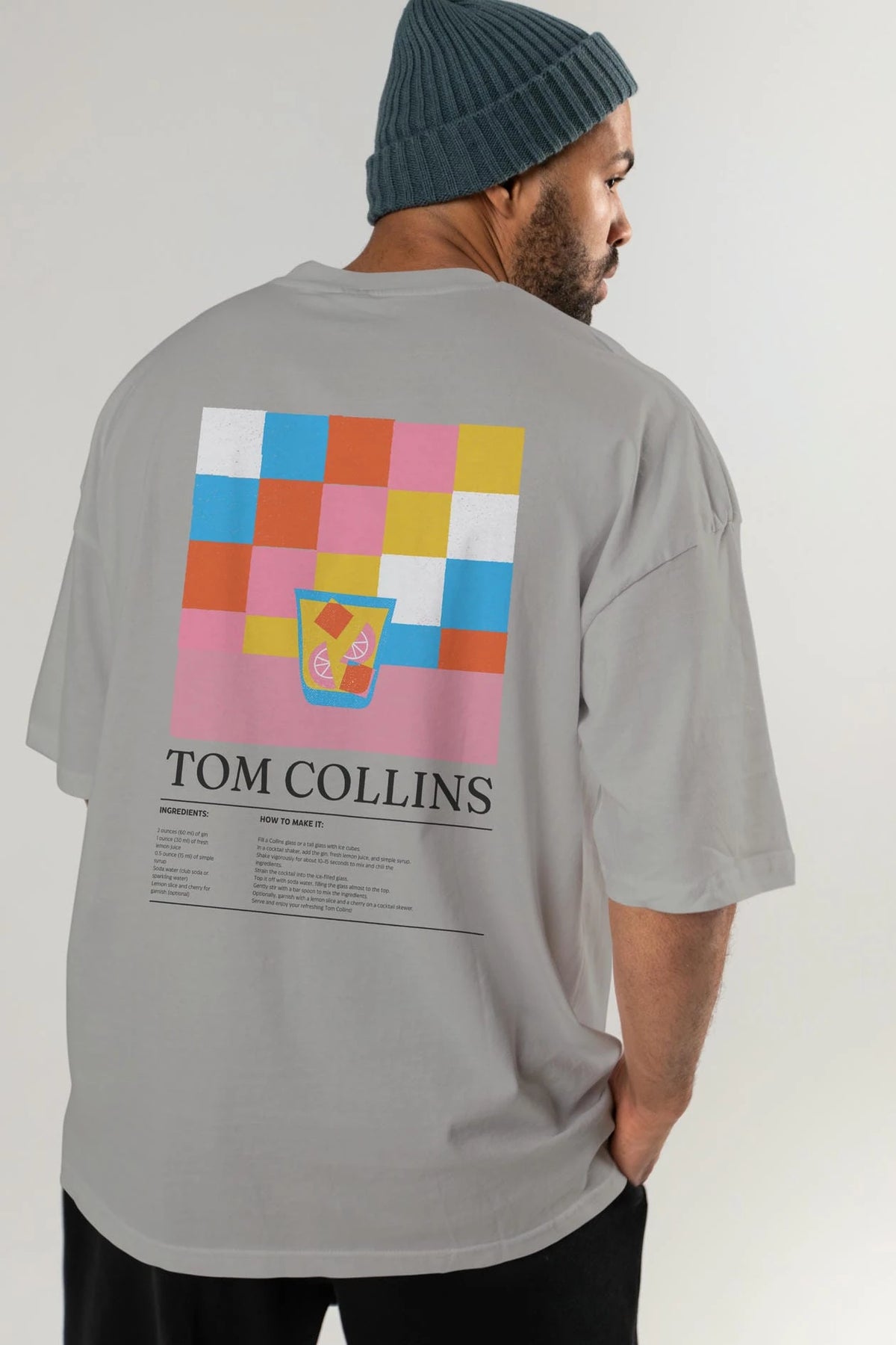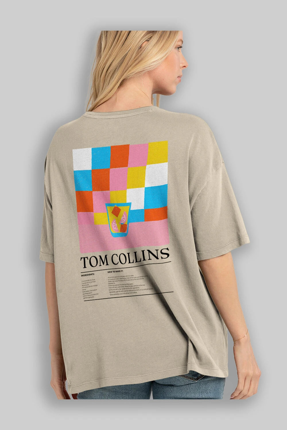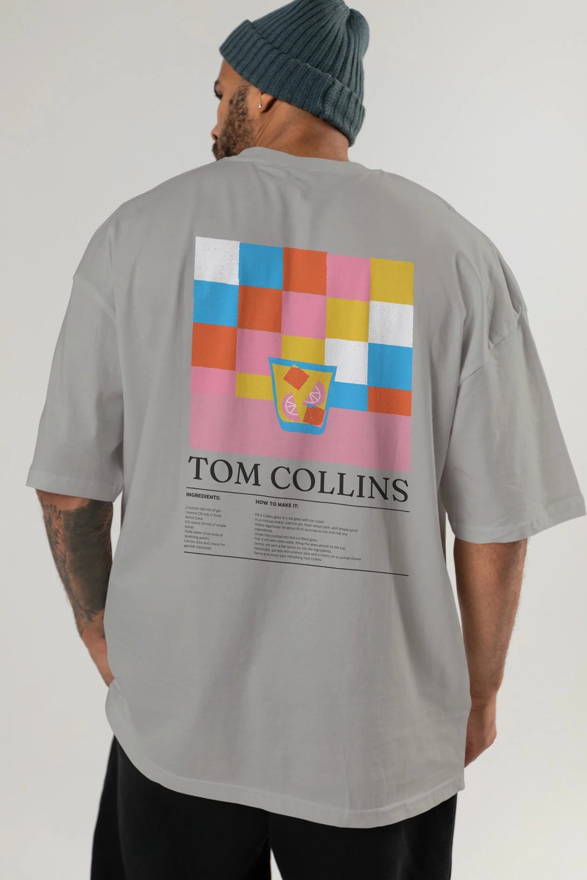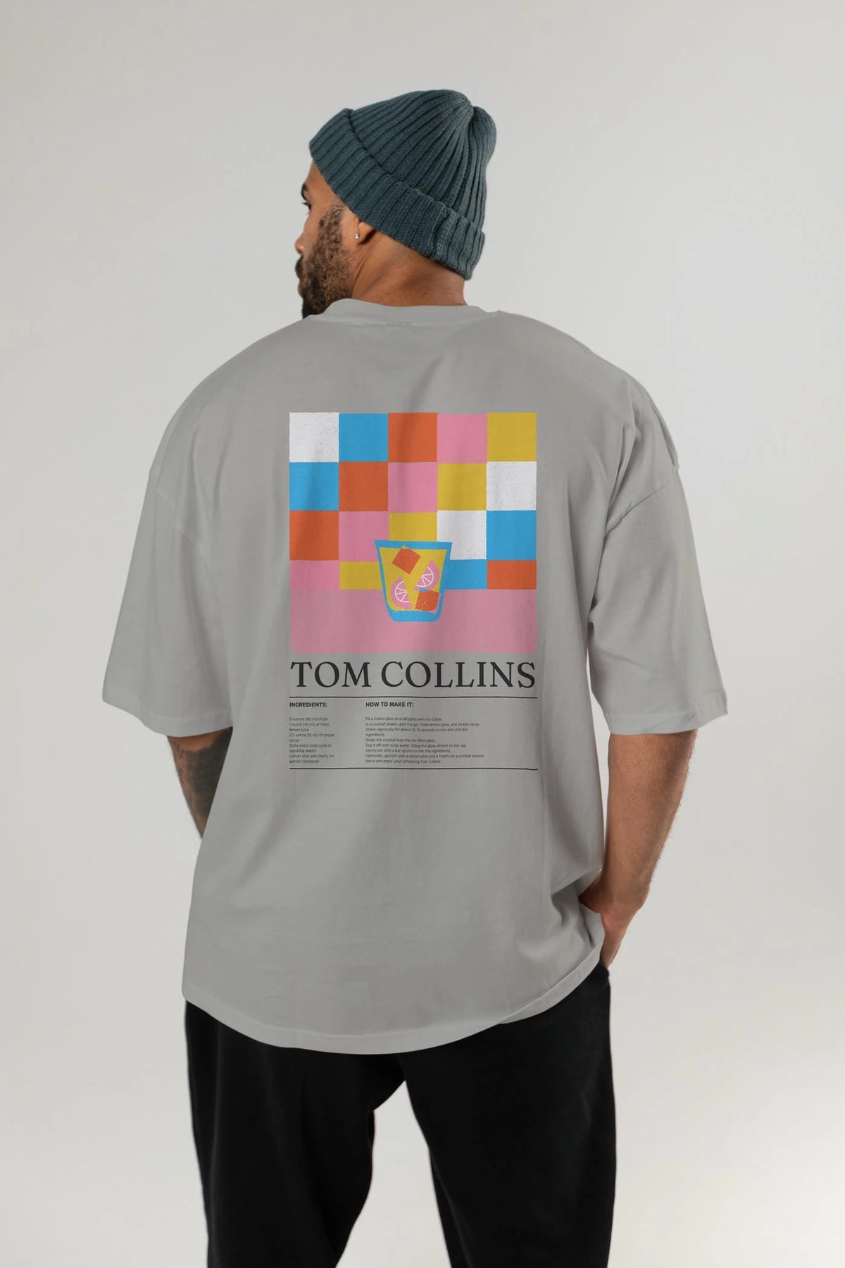 Tom Collins Kokteyl Serisi Arka Baskılı Oversize t-shirt Erkek Kadın %100 Pamuk Bisiklet Yaka tişort