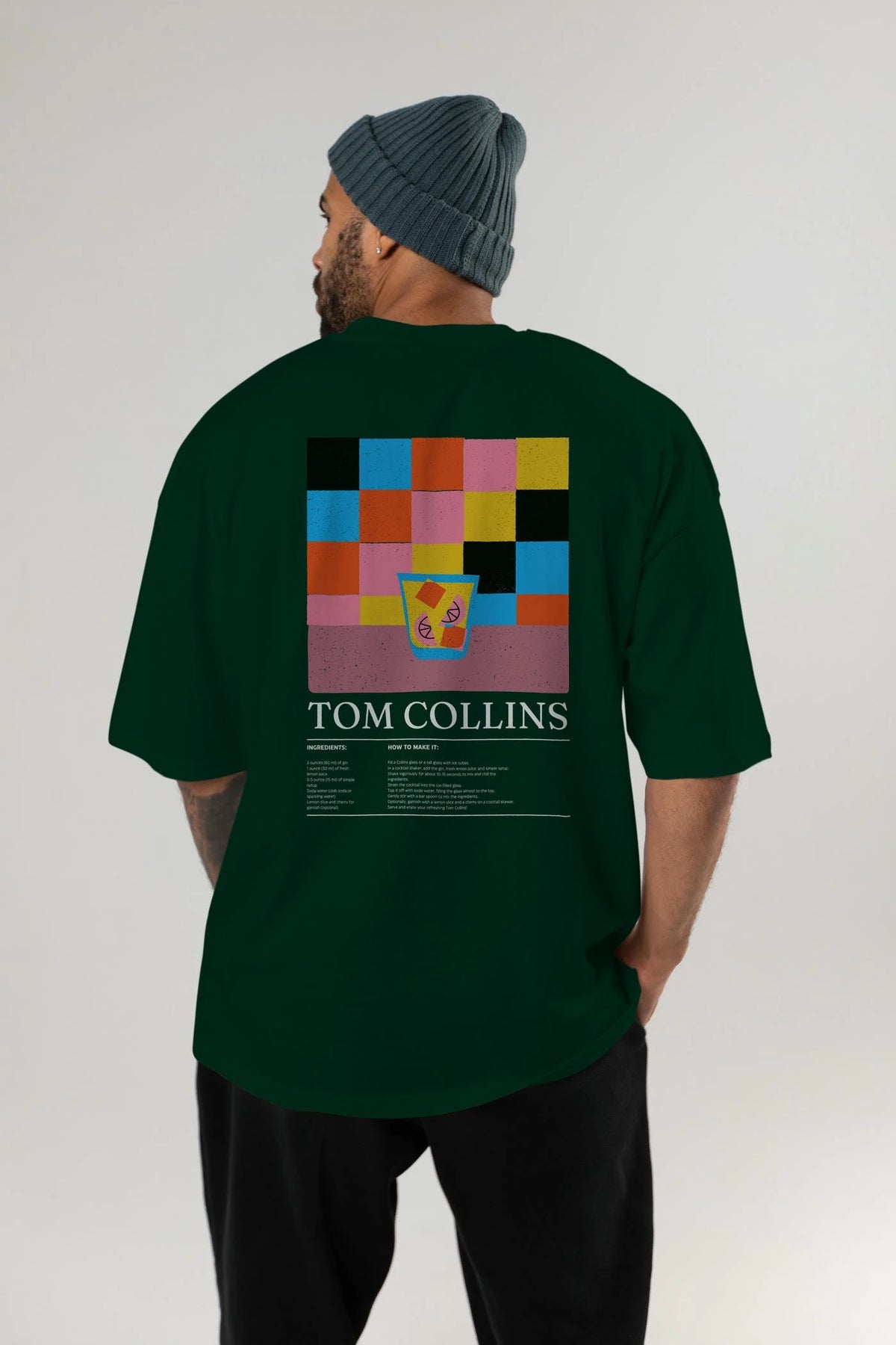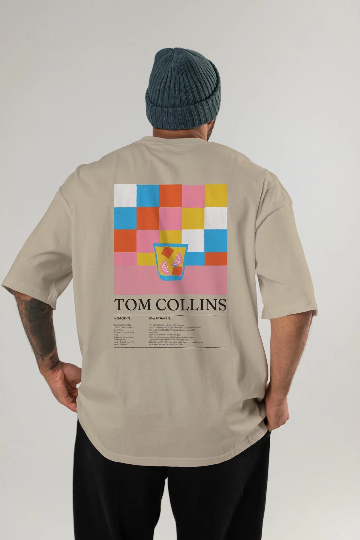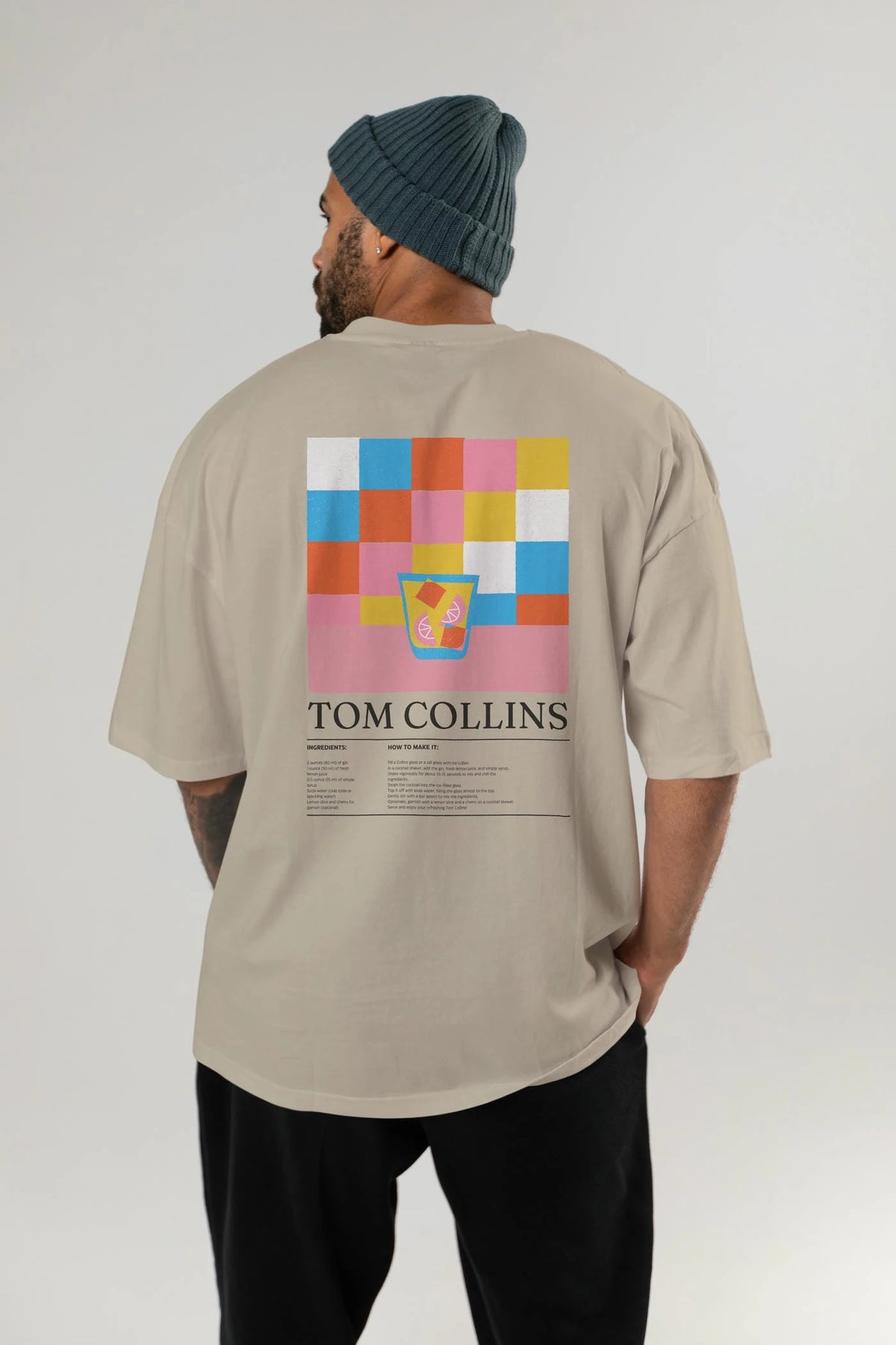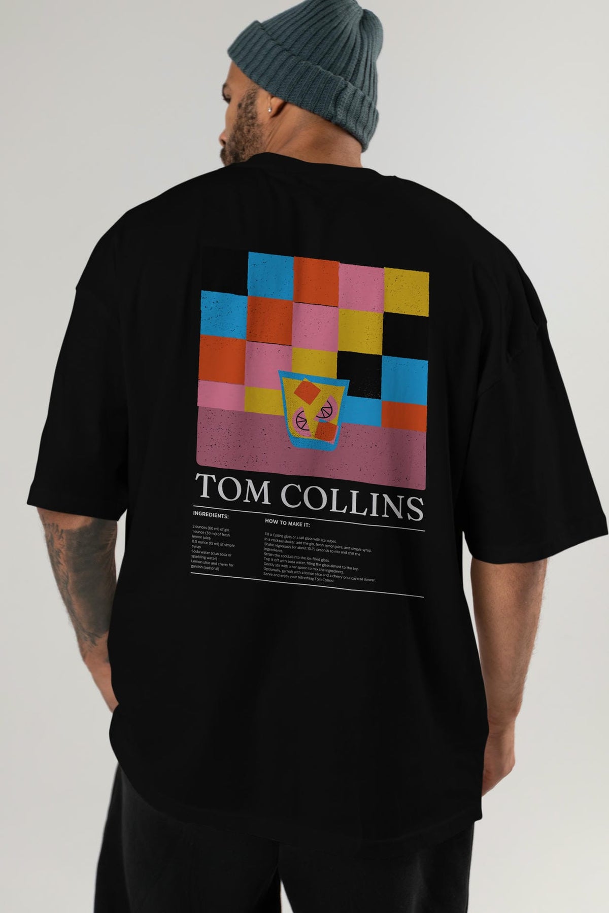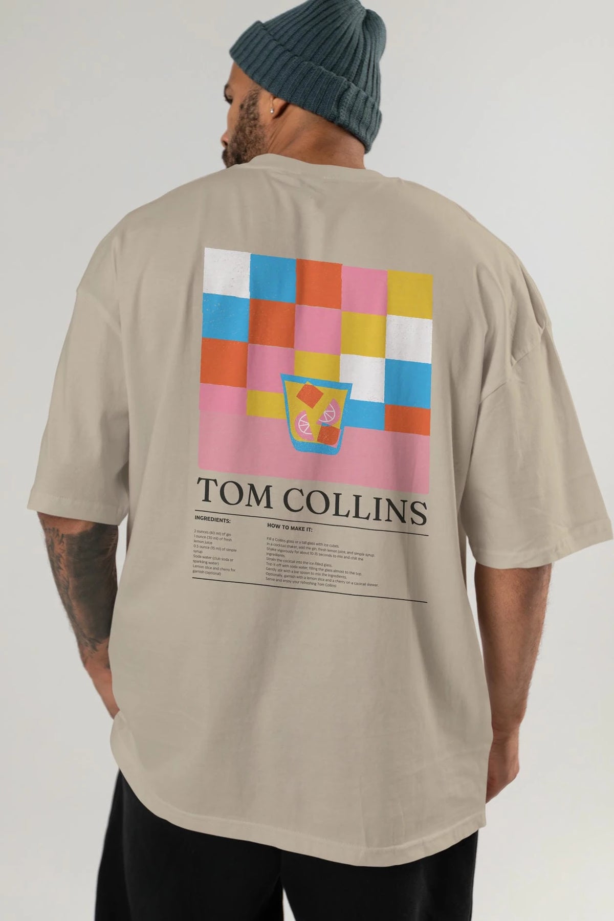 Tom Collins Kokteyl Serisi Arka Baskılı Oversize t-shirt Erkek Kadın %100 Pamuk Bisiklet Yaka tişort