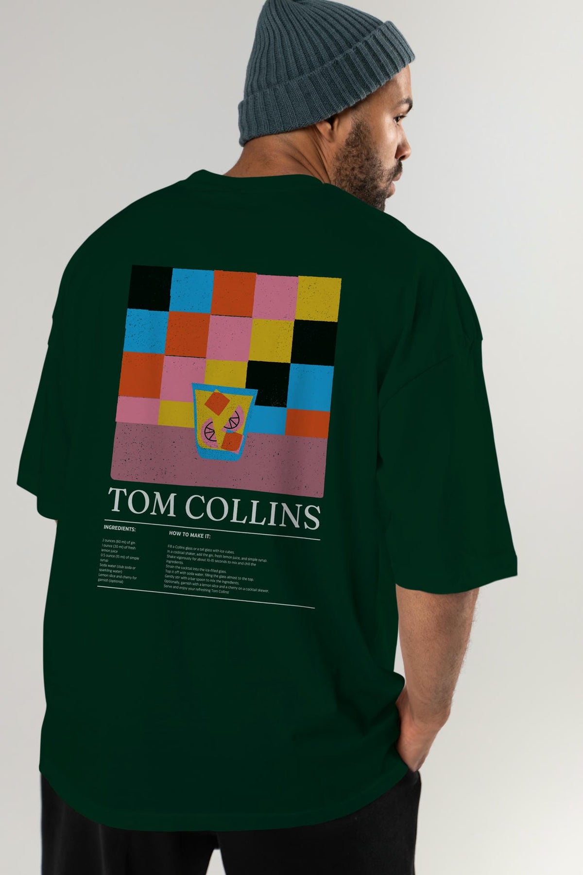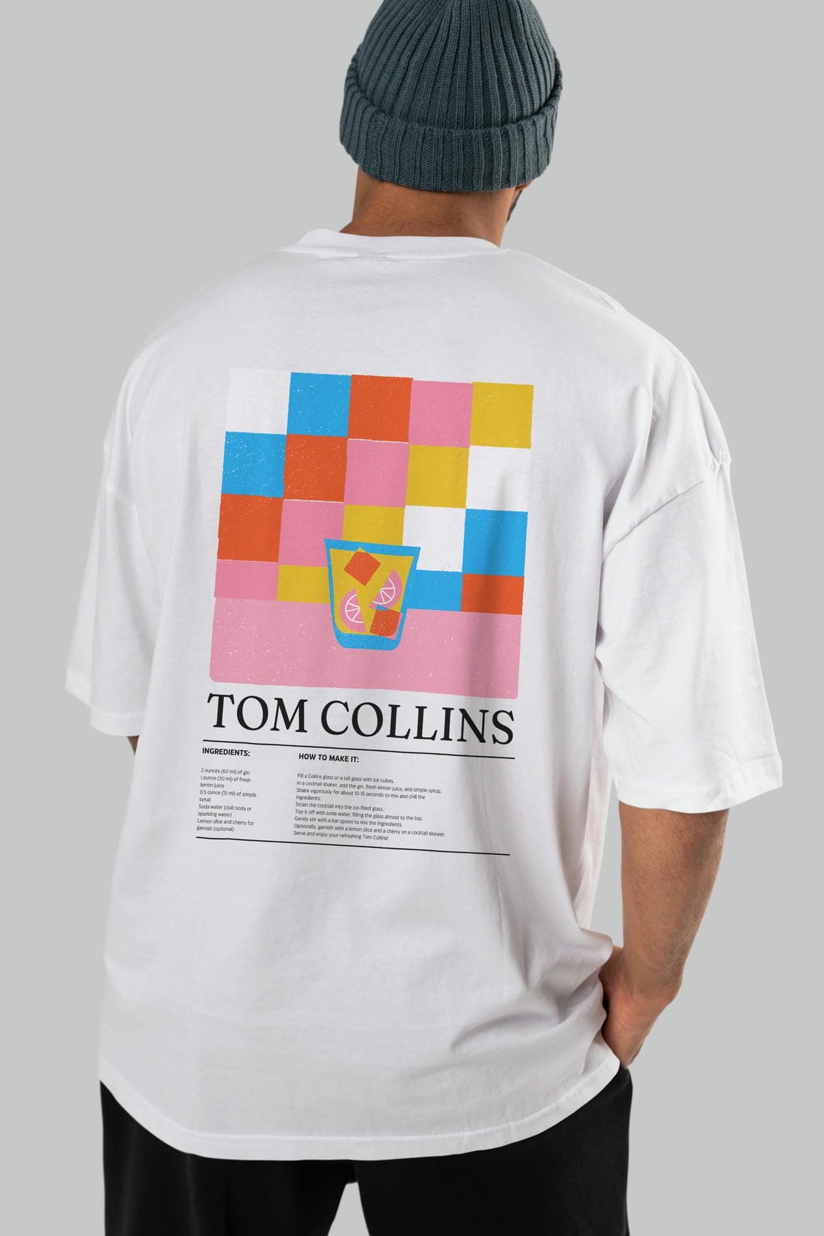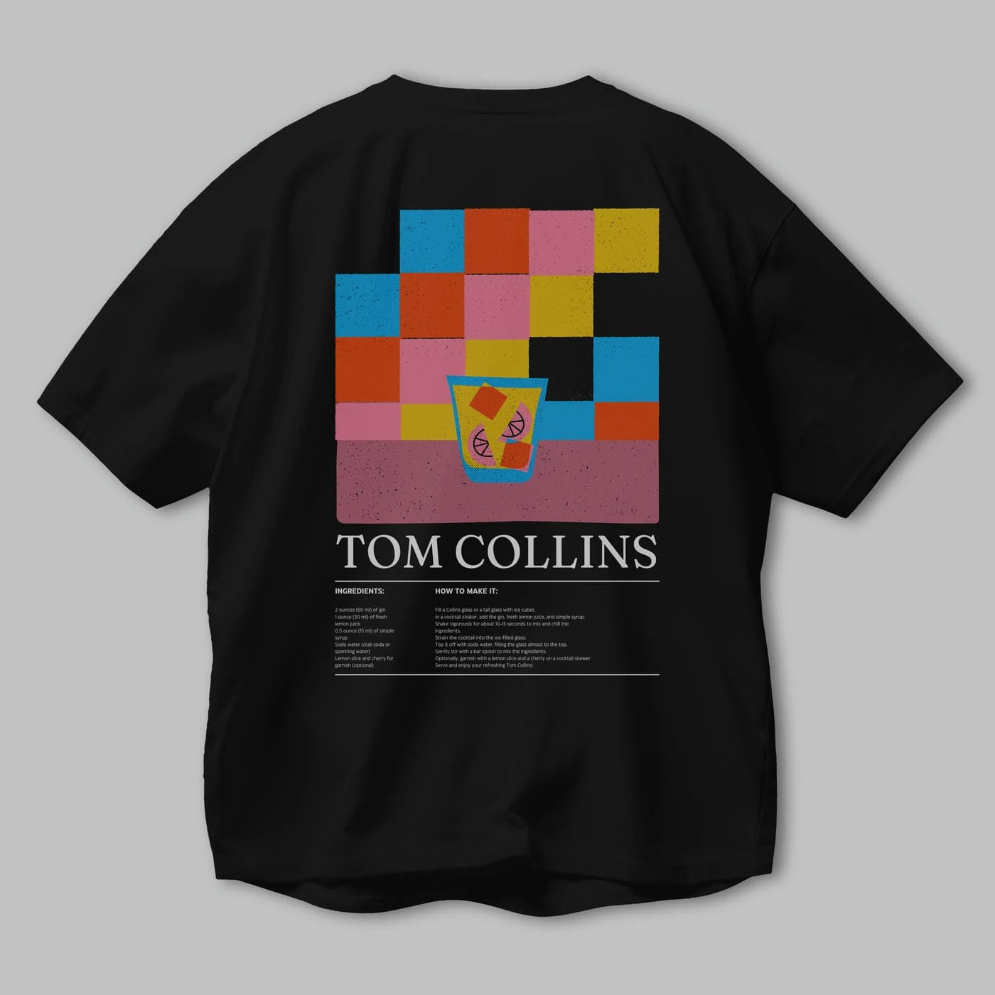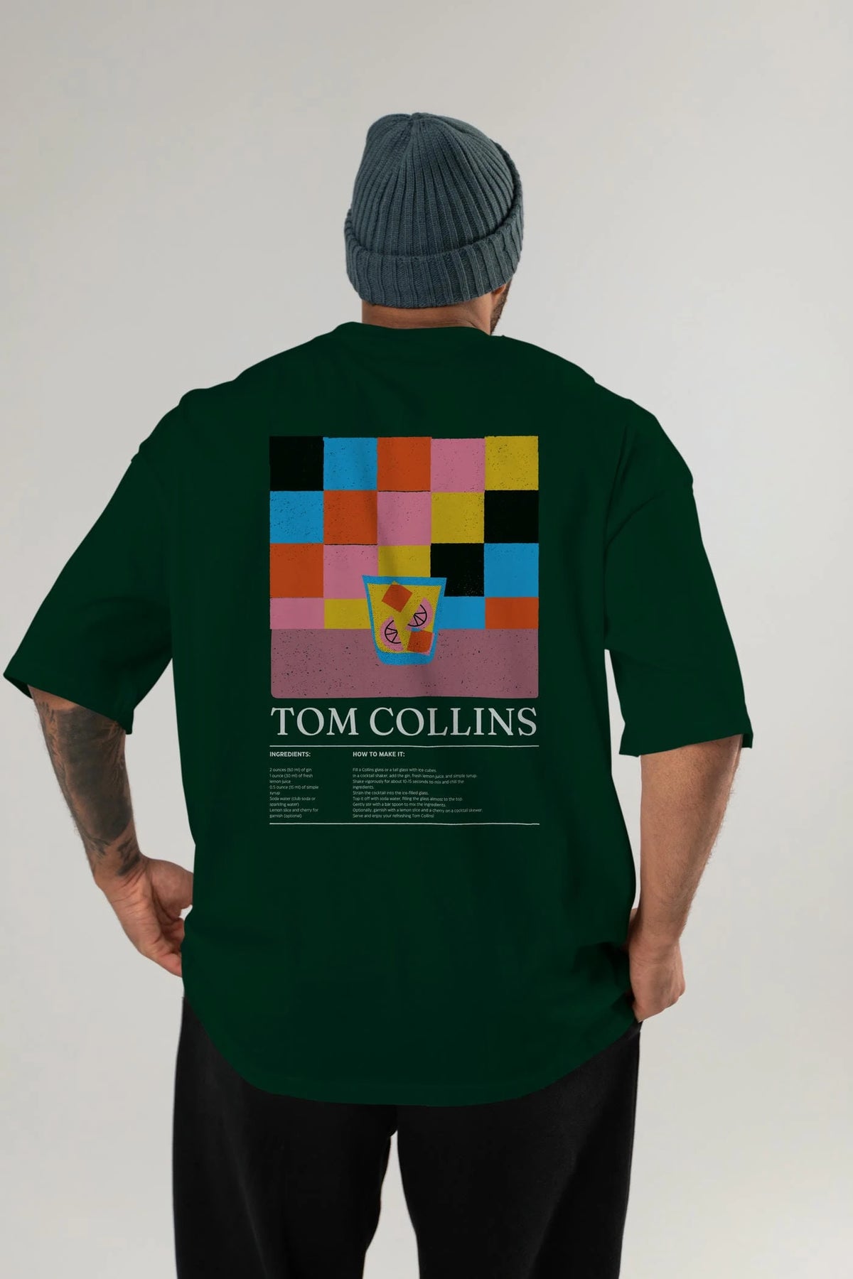 Tom Collins Kokteyl Serisi Arka Baskılı Oversize t-shirt Erkek Kadın %100 Pamuk Bisiklet Yaka tişort