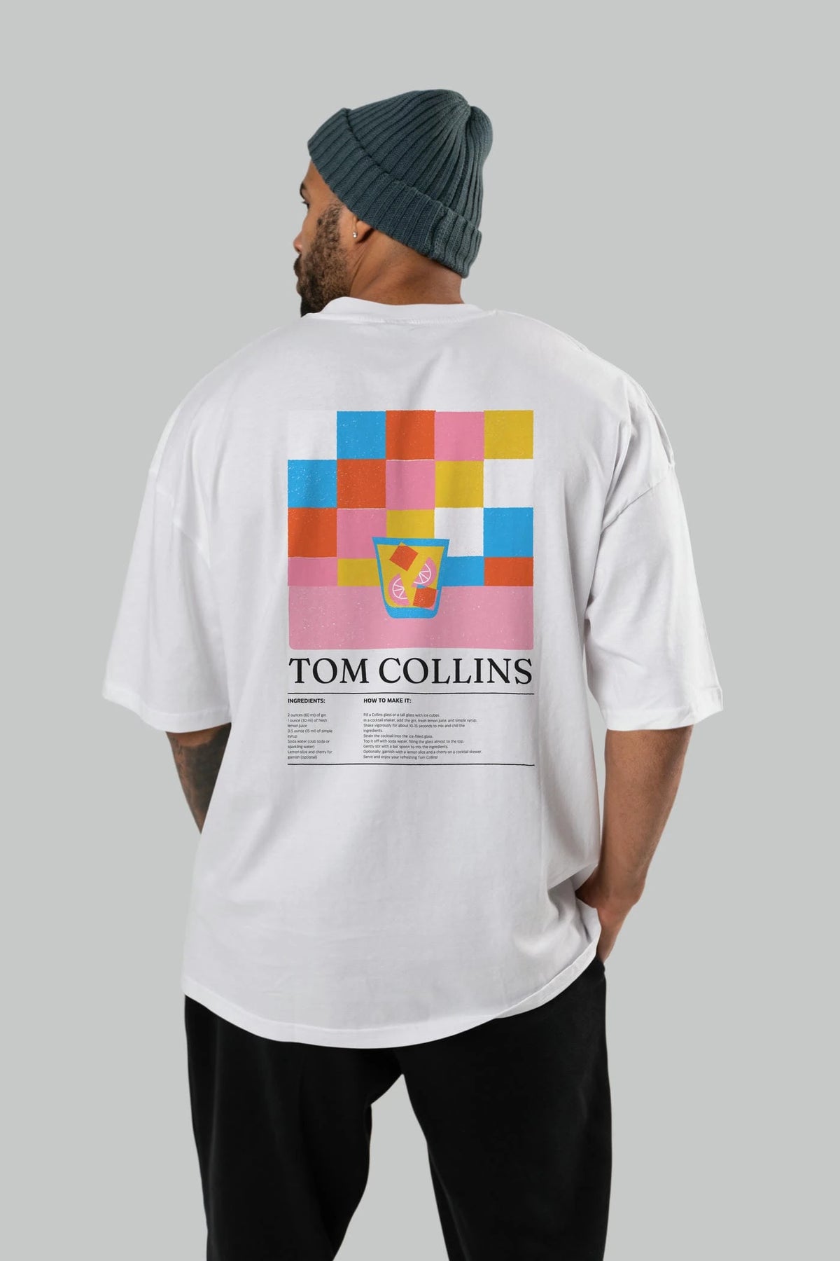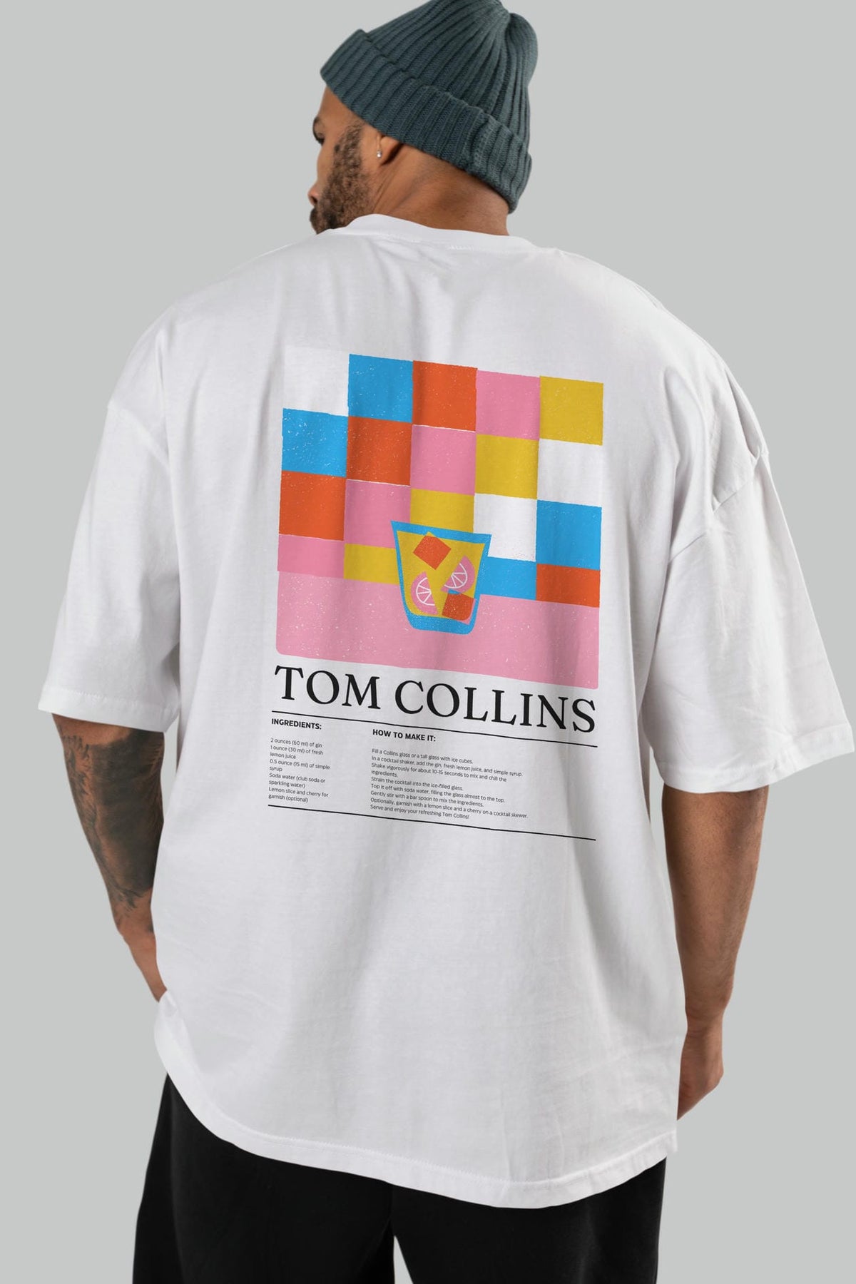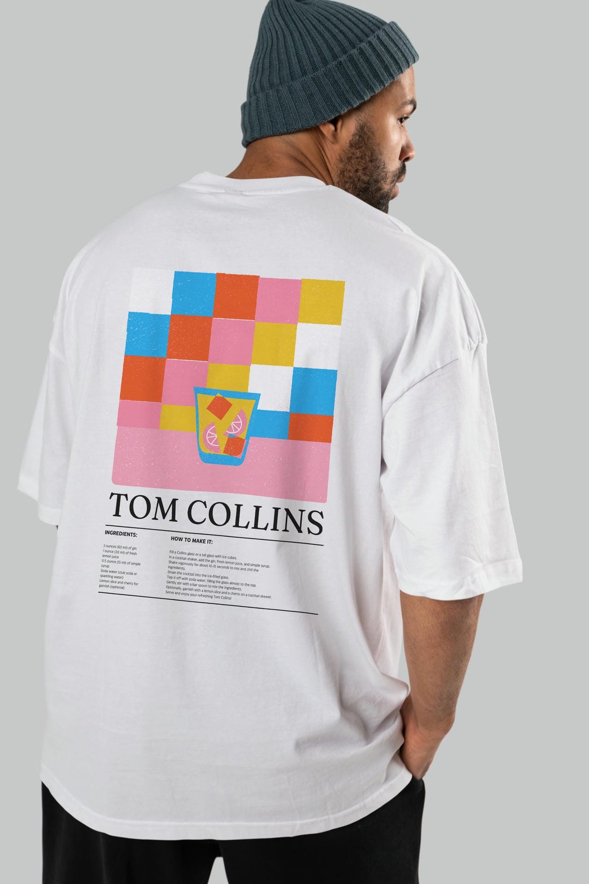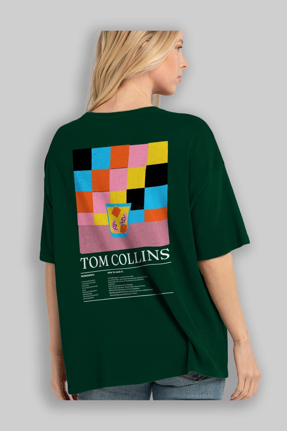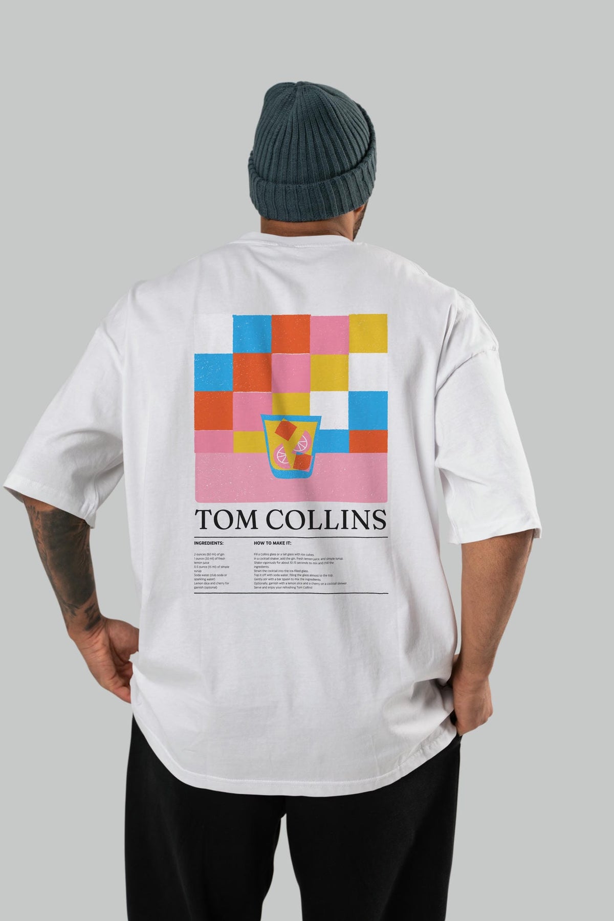 Tom Collins Kokteyl Serisi Arka Baskılı Oversize t-shirt Erkek Kadın %100 Pamuk Bisiklet Yaka tişort