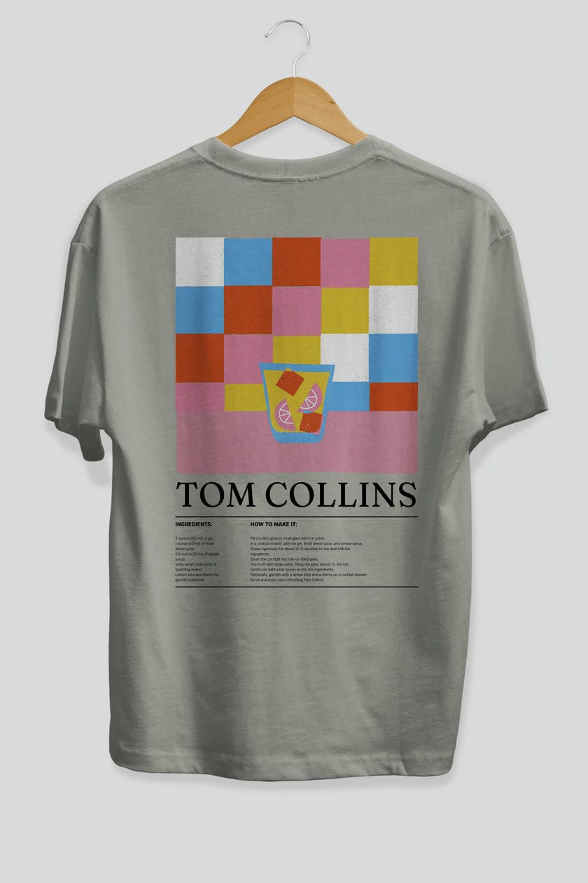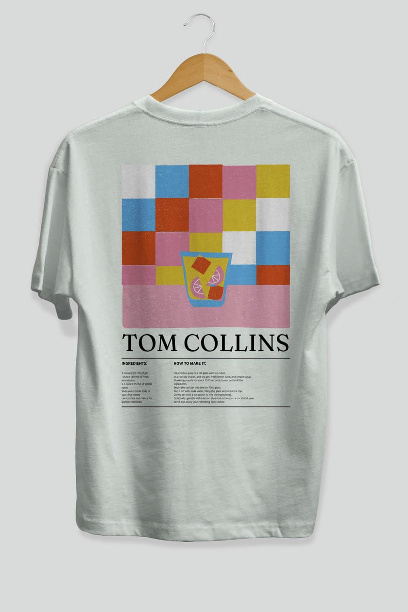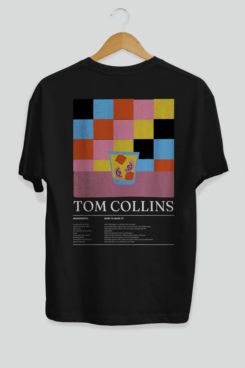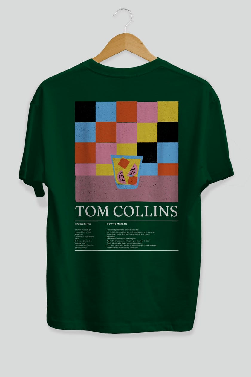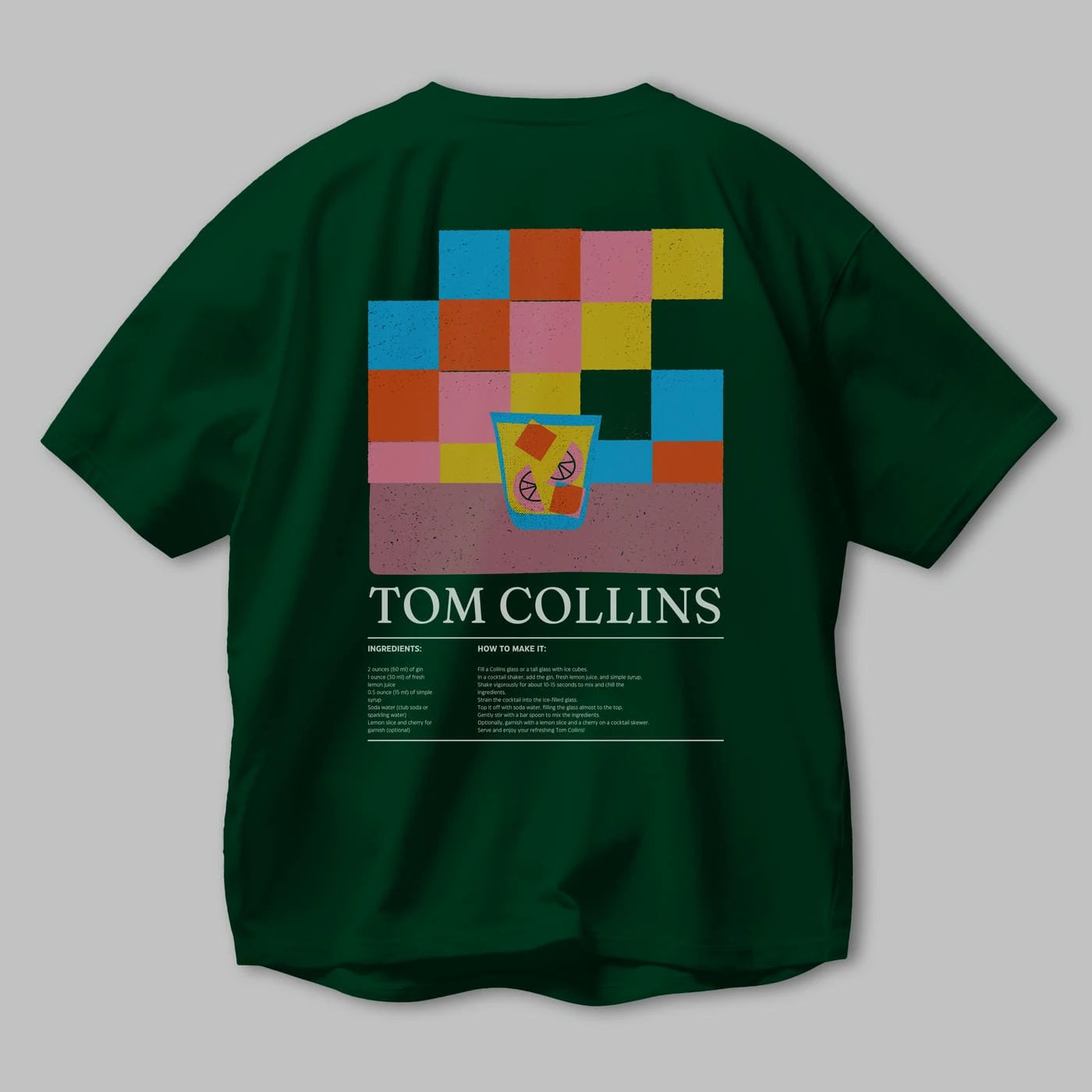 Tom Collins Kokteyl Serisi Arka Baskılı Oversize t-shirt Erkek Kadın %100 Pamuk Bisiklet Yaka tişort