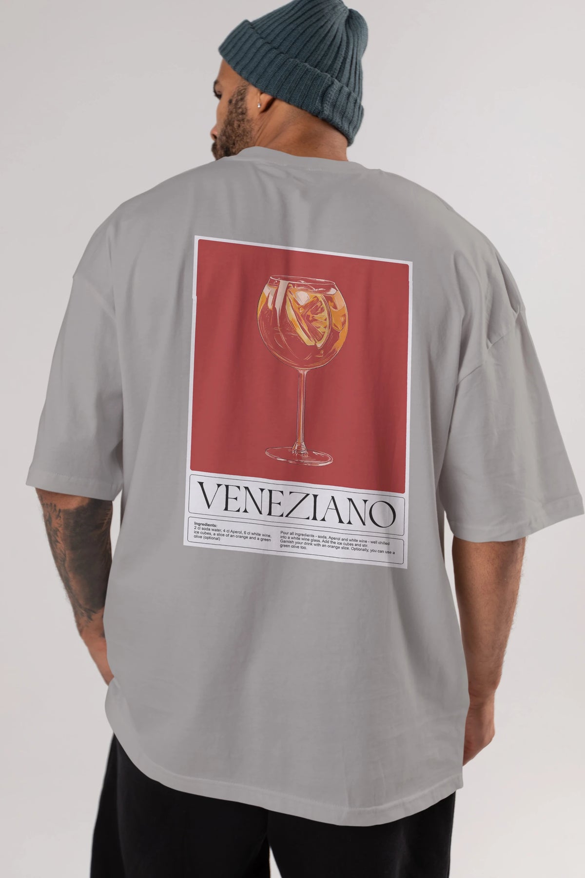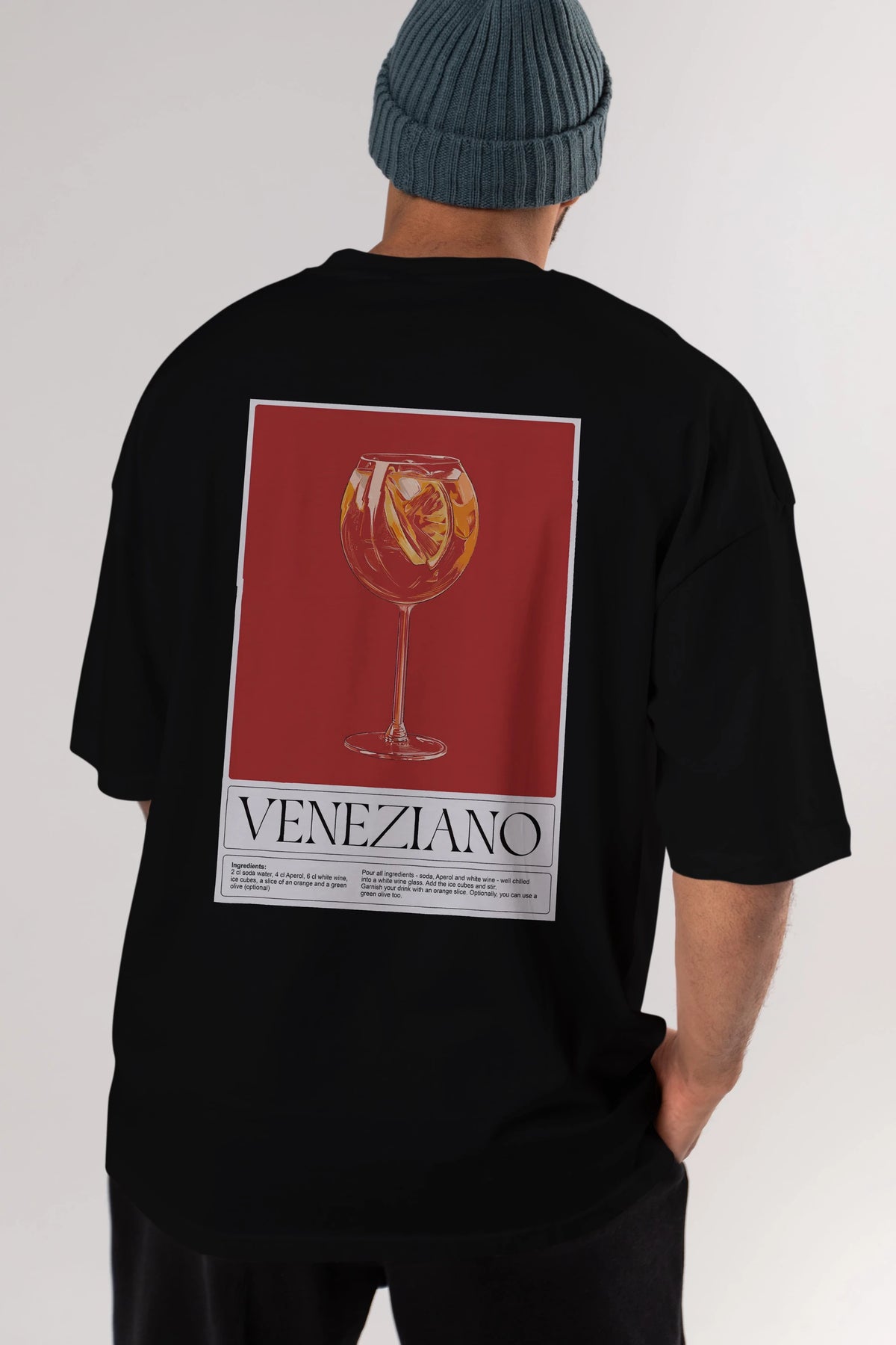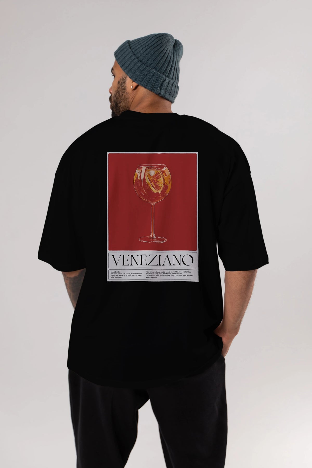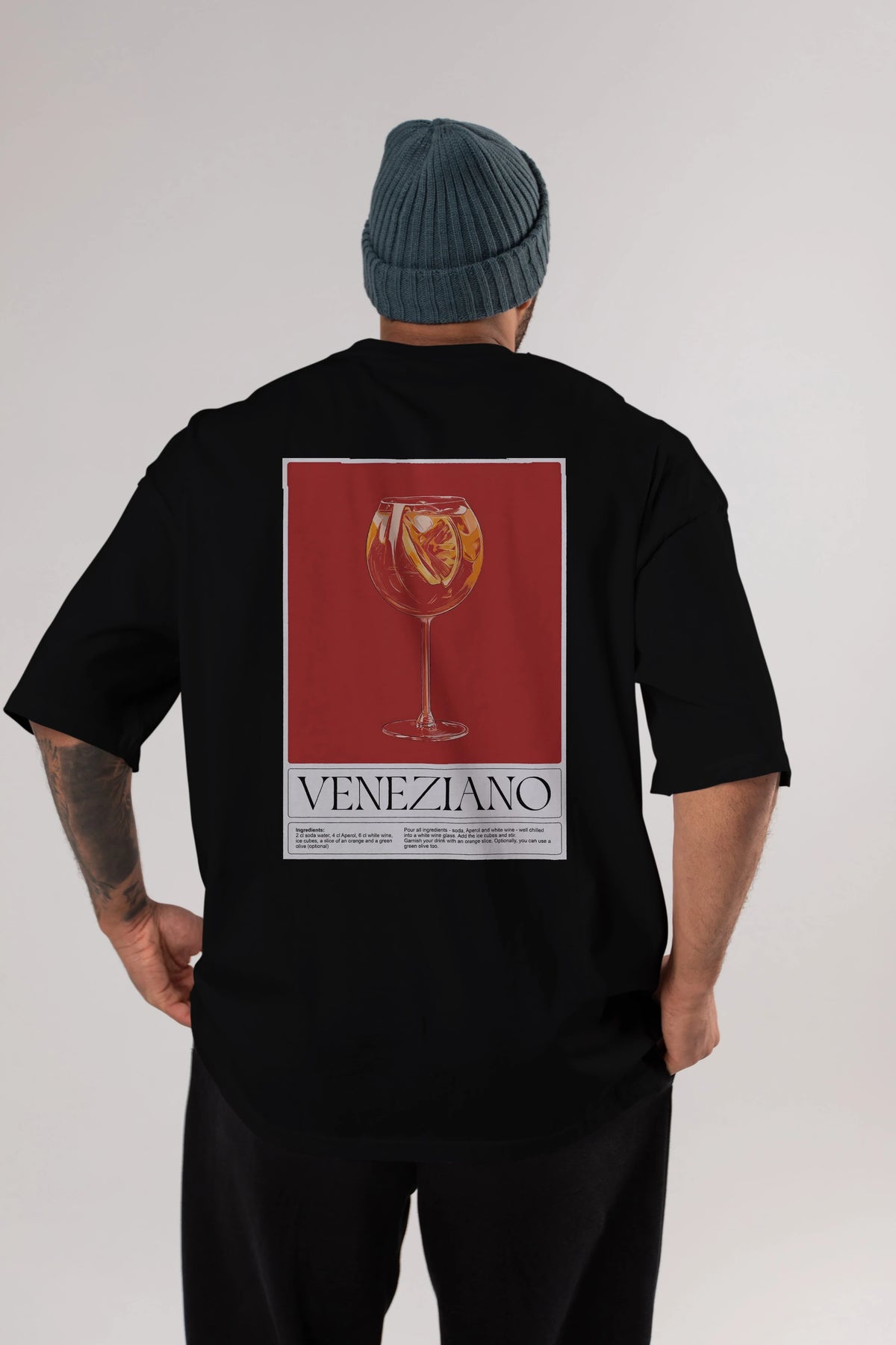 Veneziano Arka Baskılı Oversize t-shirt Erkek Kadın Unisex %100 Pamuk Bisiklet Yaka tişort