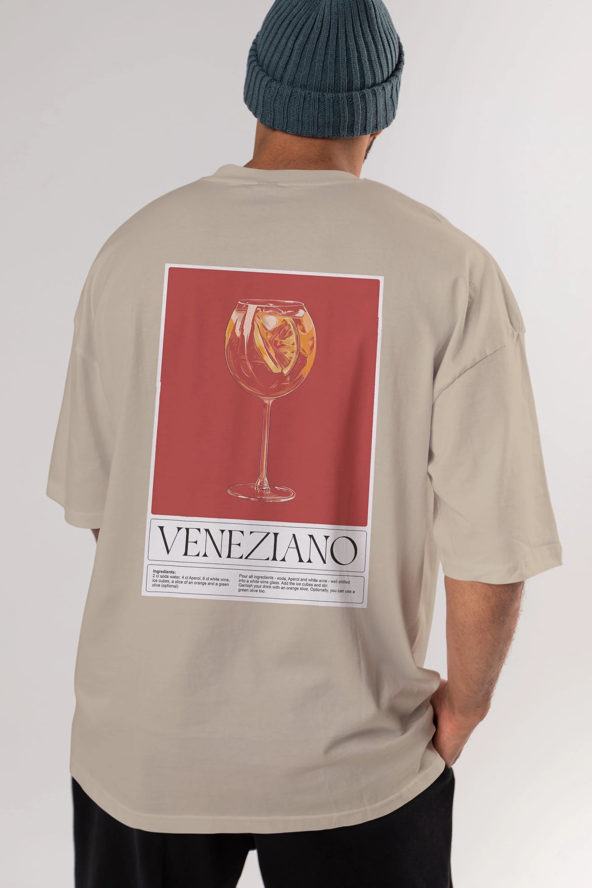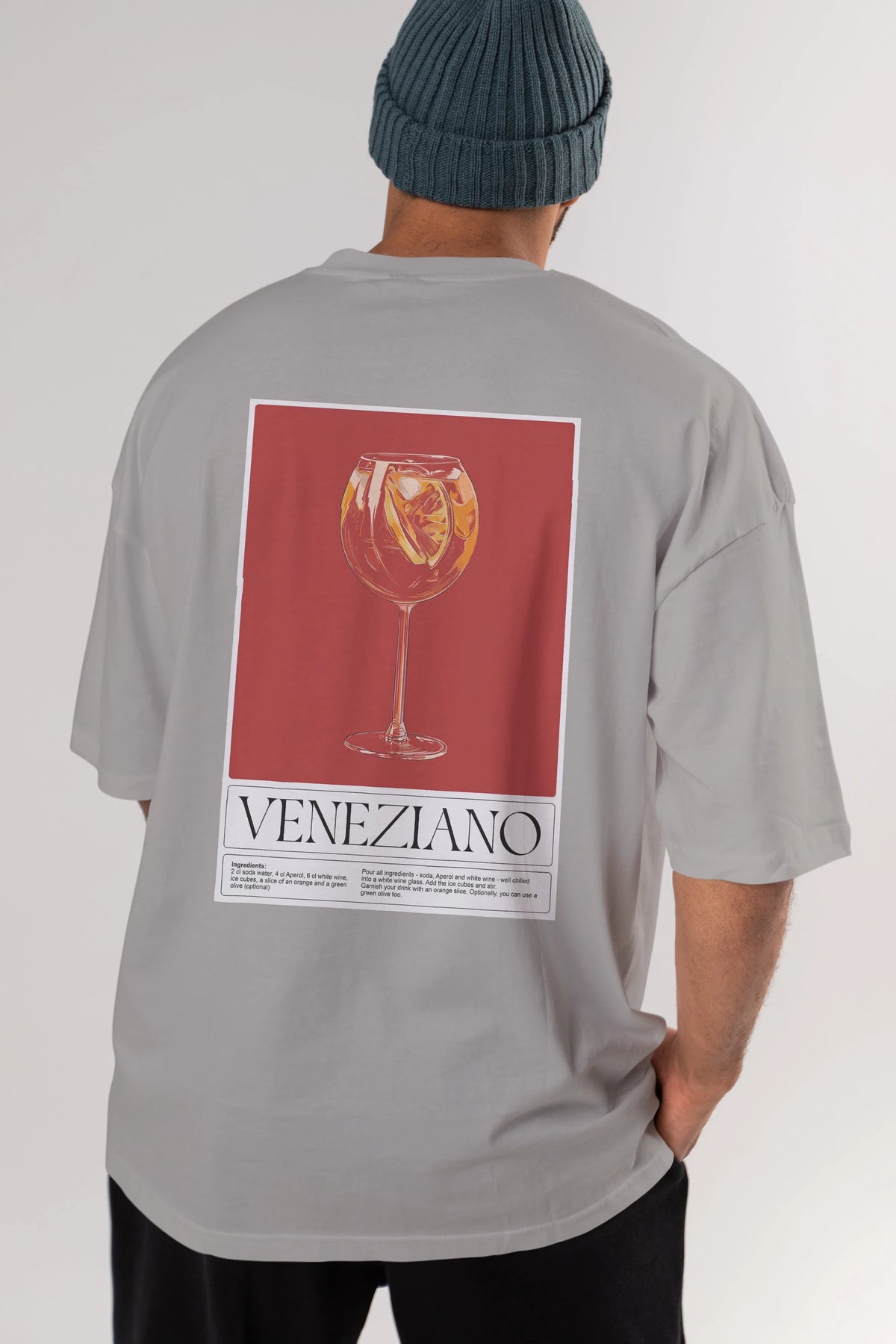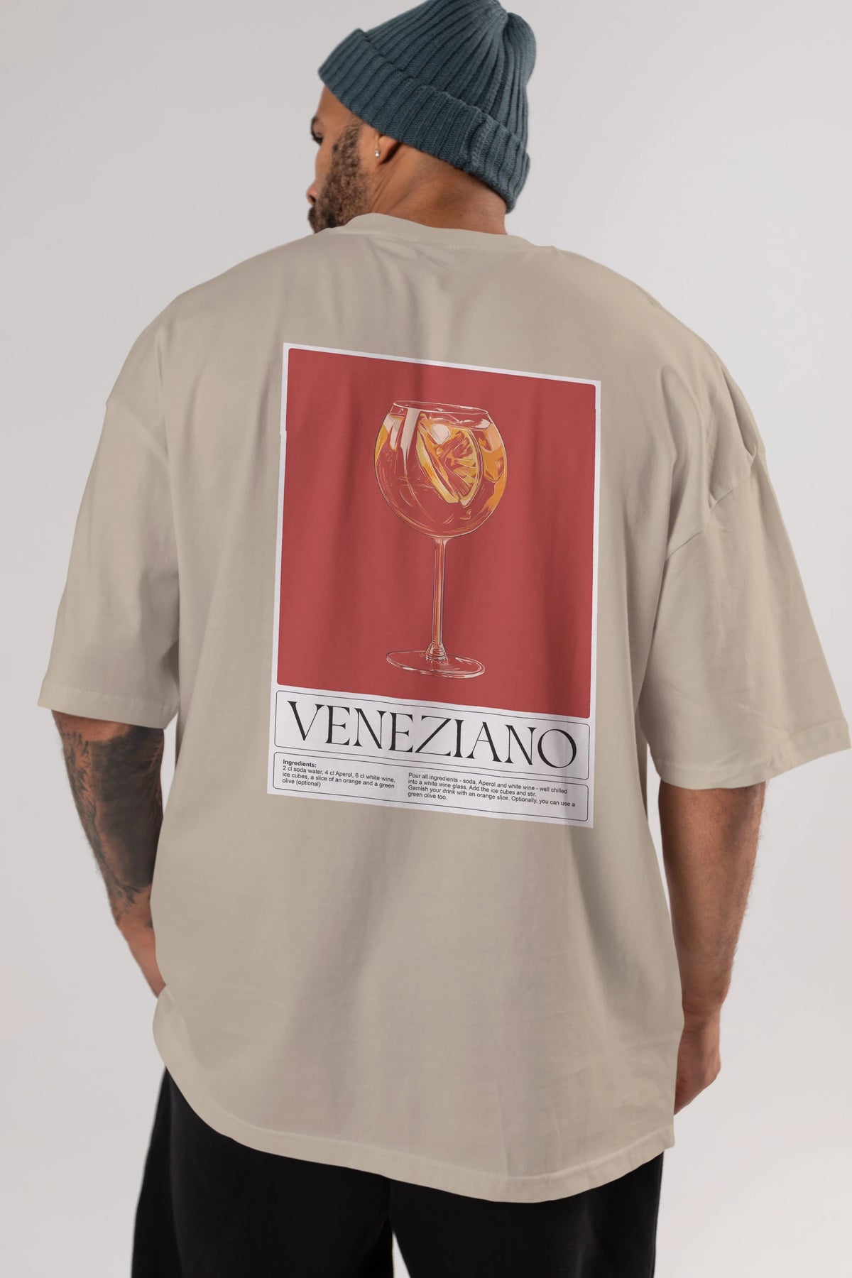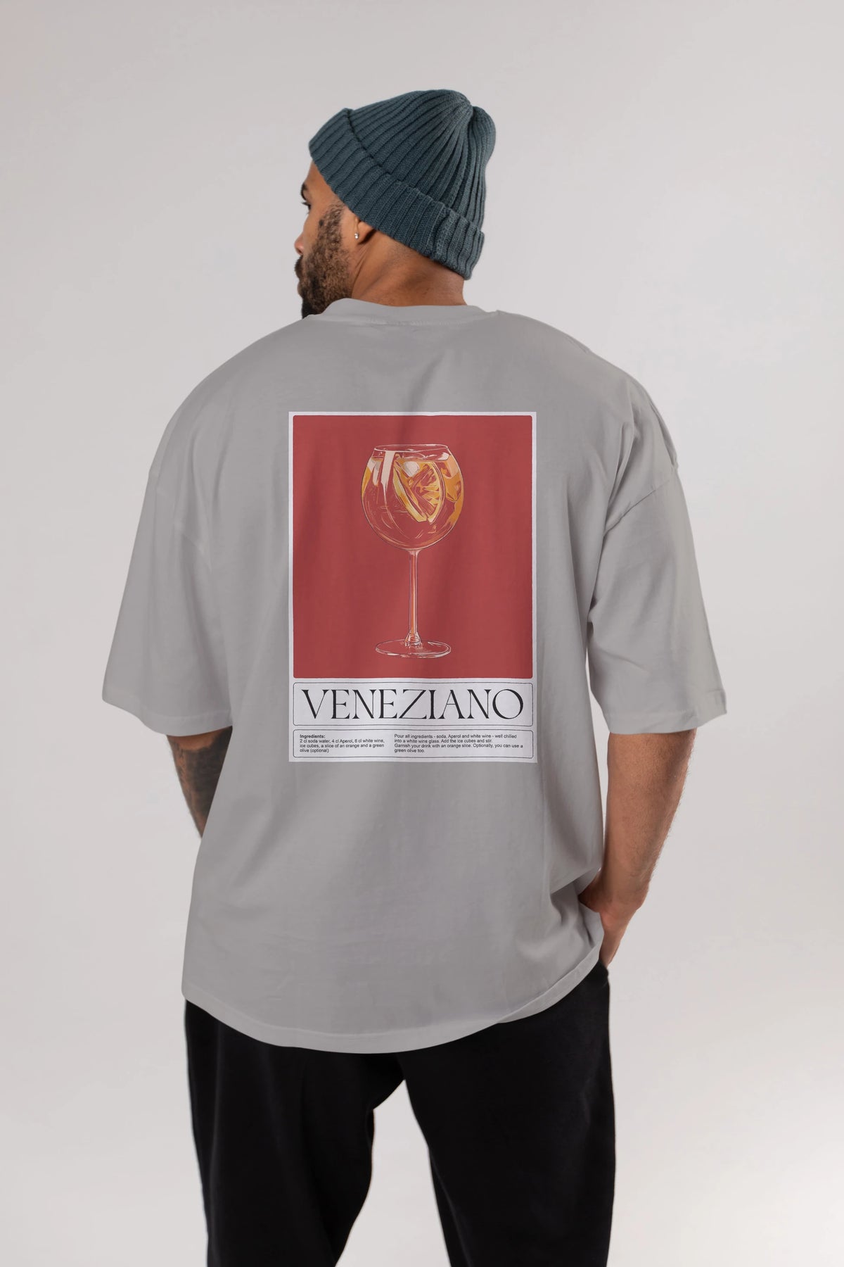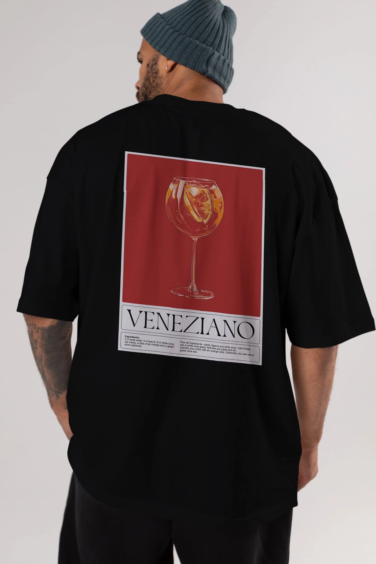 Veneziano Arka Baskılı Oversize t-shirt Erkek Kadın Unisex %100 Pamuk Bisiklet Yaka tişort