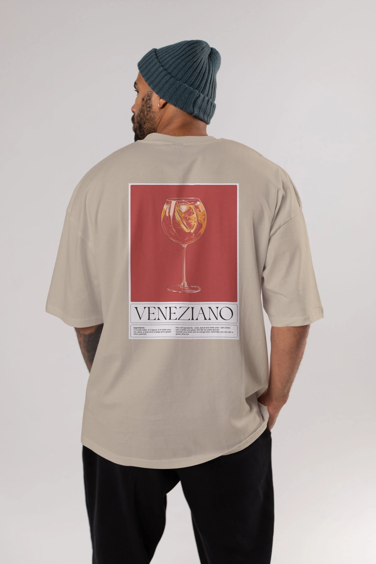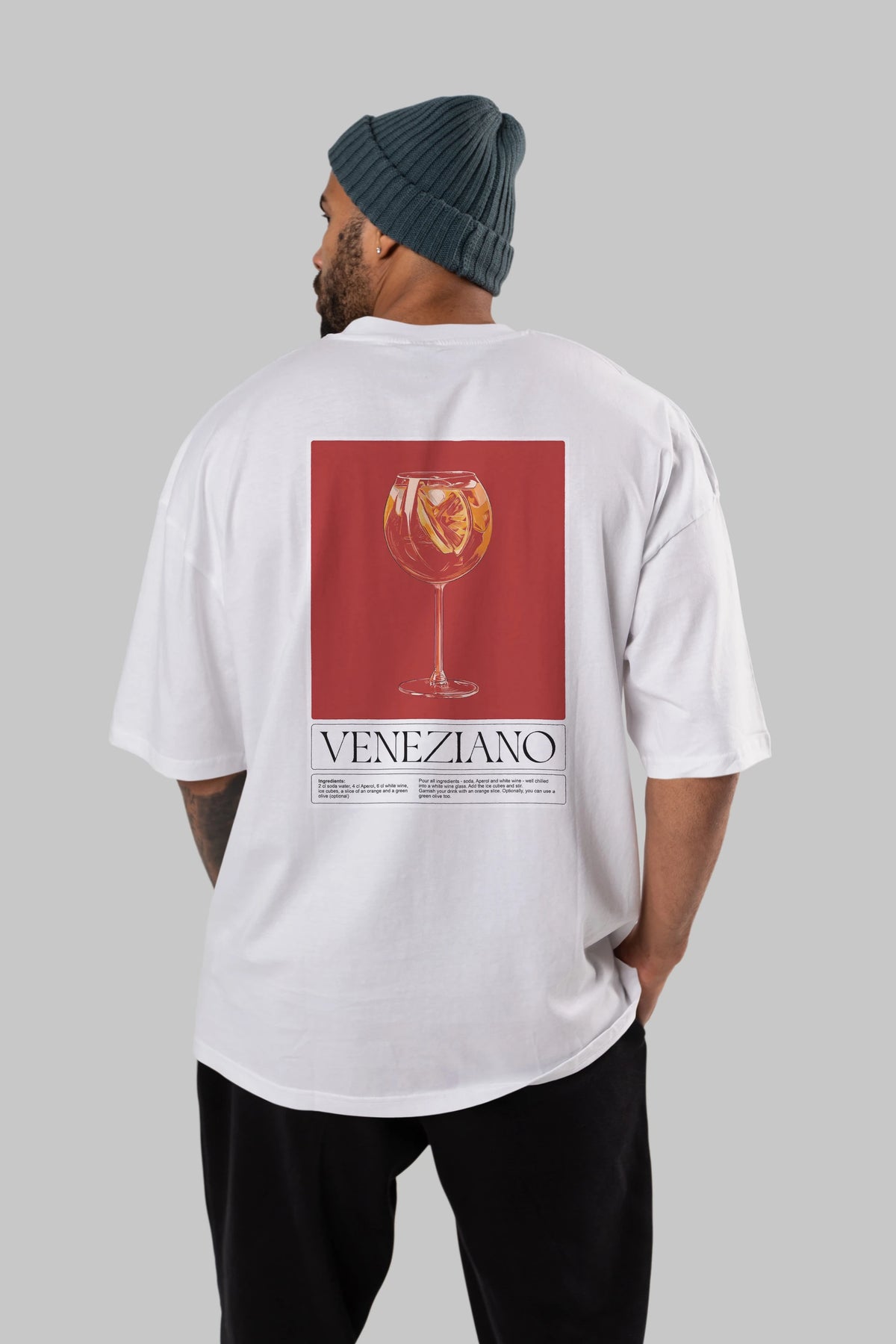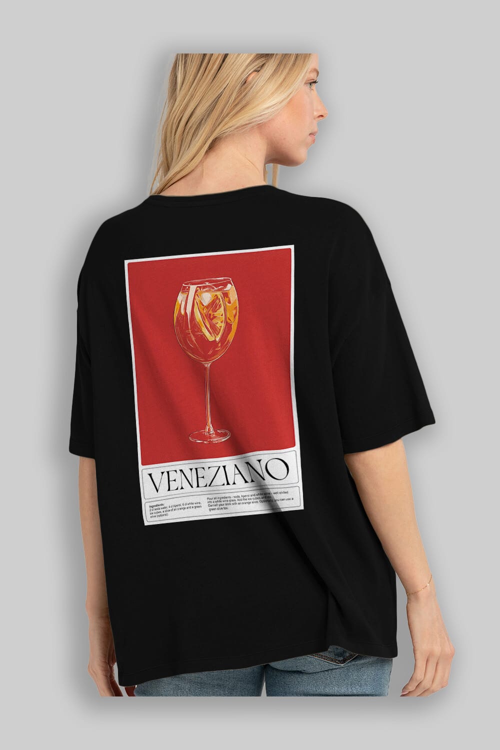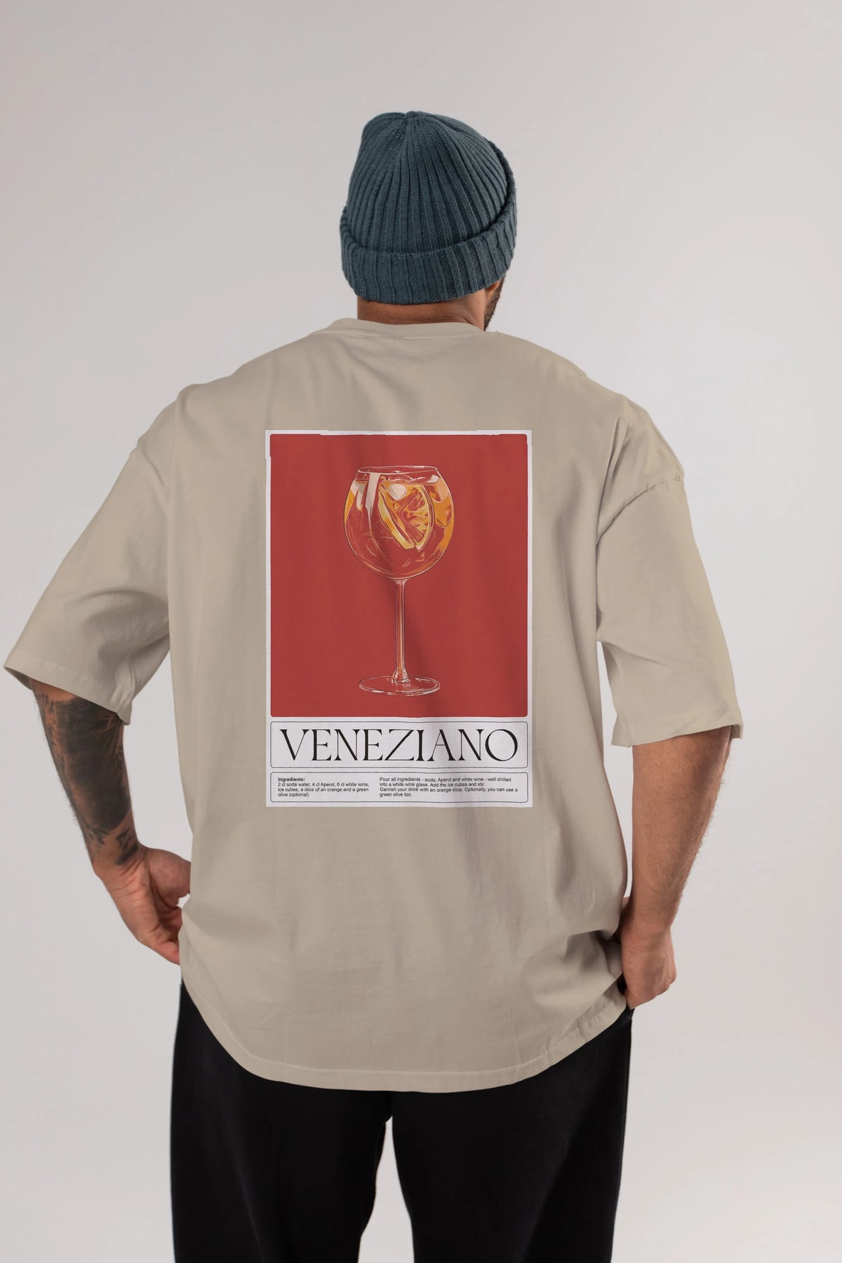 Veneziano Arka Baskılı Oversize t-shirt Erkek Kadın Unisex %100 Pamuk Bisiklet Yaka tişort