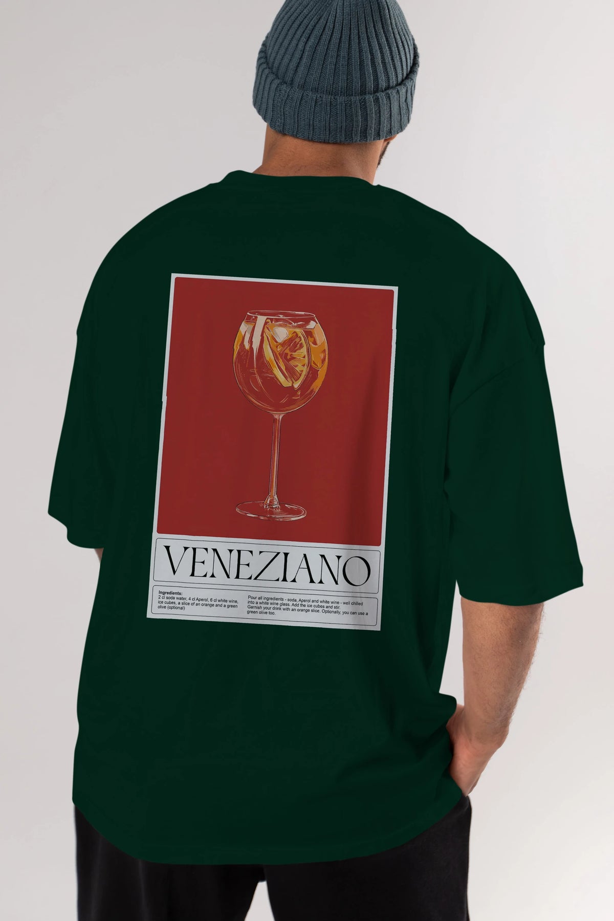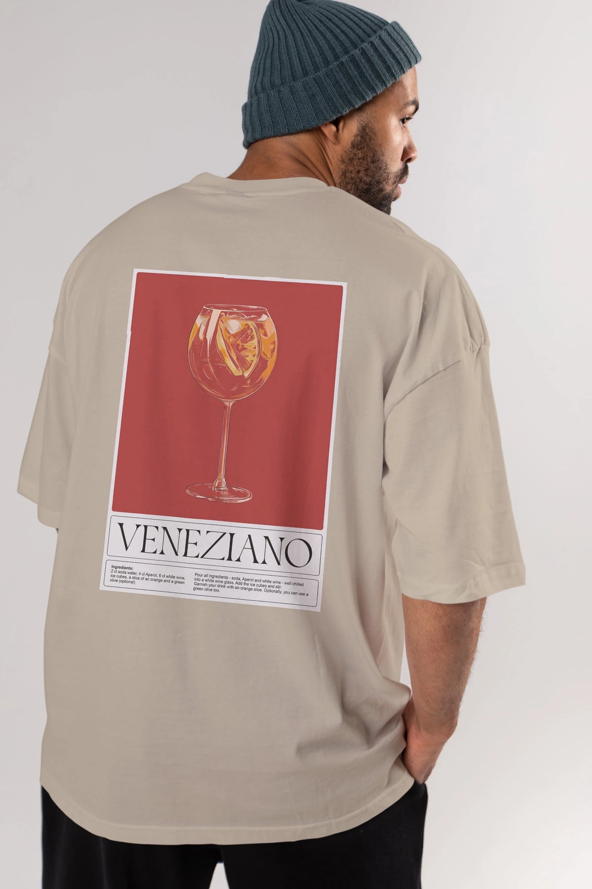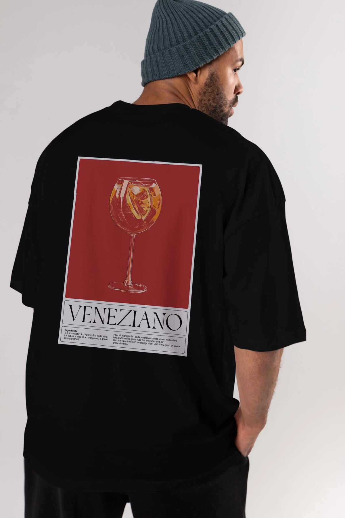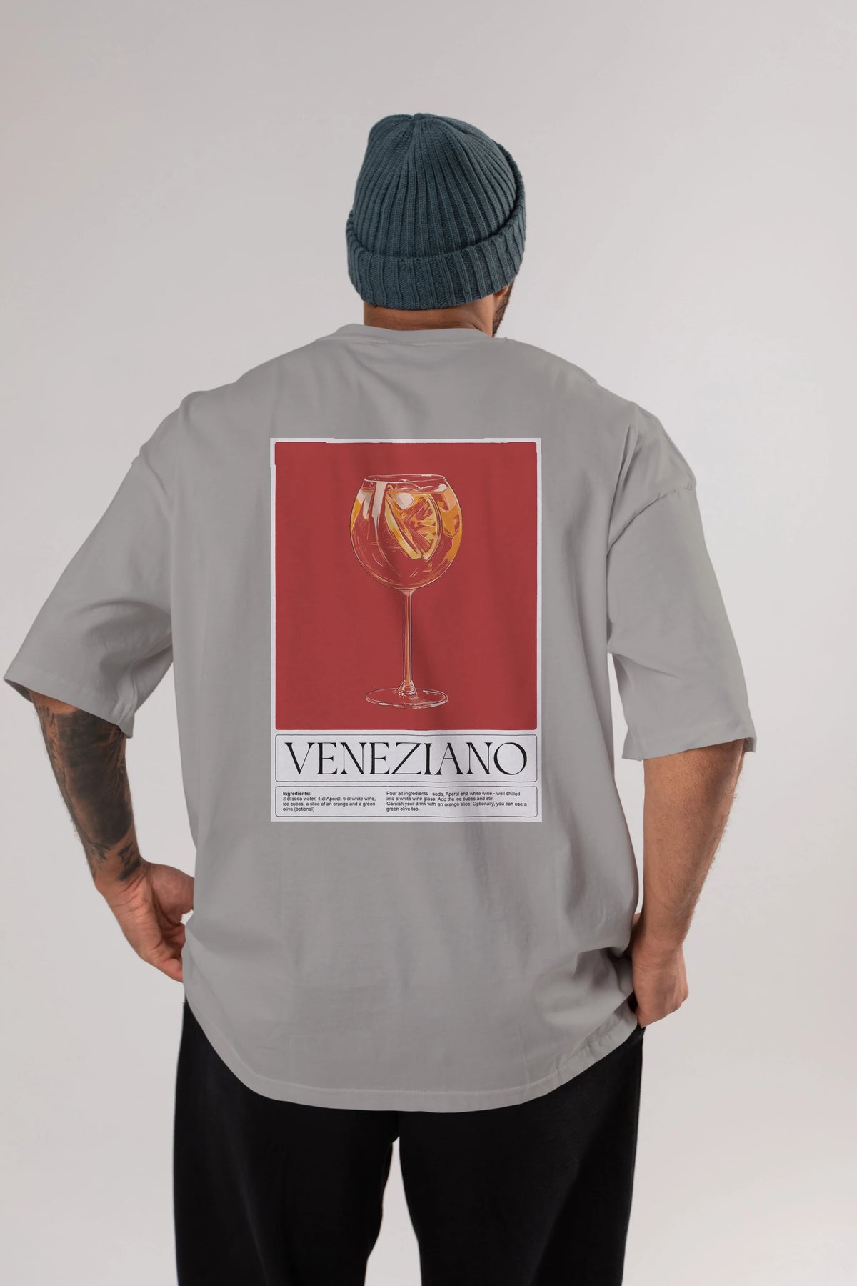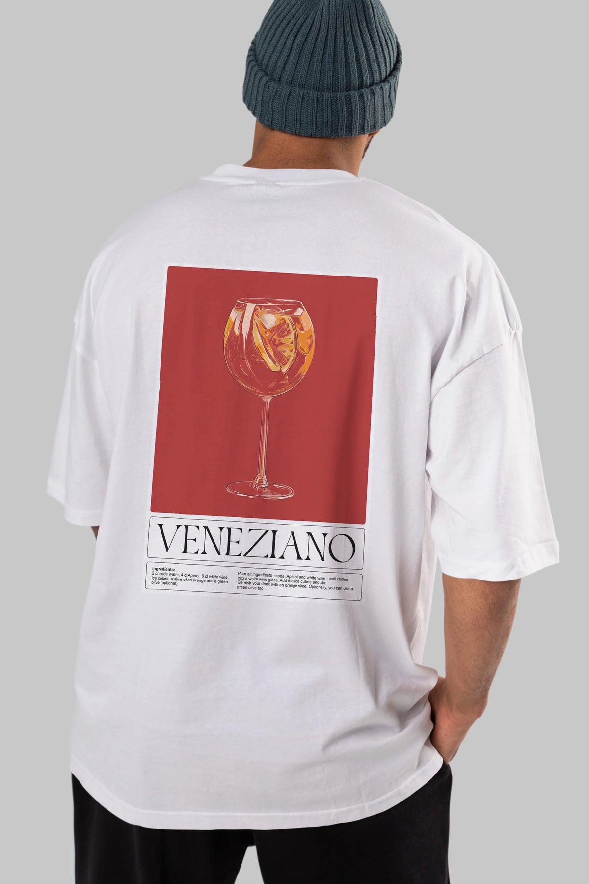 Veneziano Arka Baskılı Oversize t-shirt Erkek Kadın Unisex %100 Pamuk Bisiklet Yaka tişort