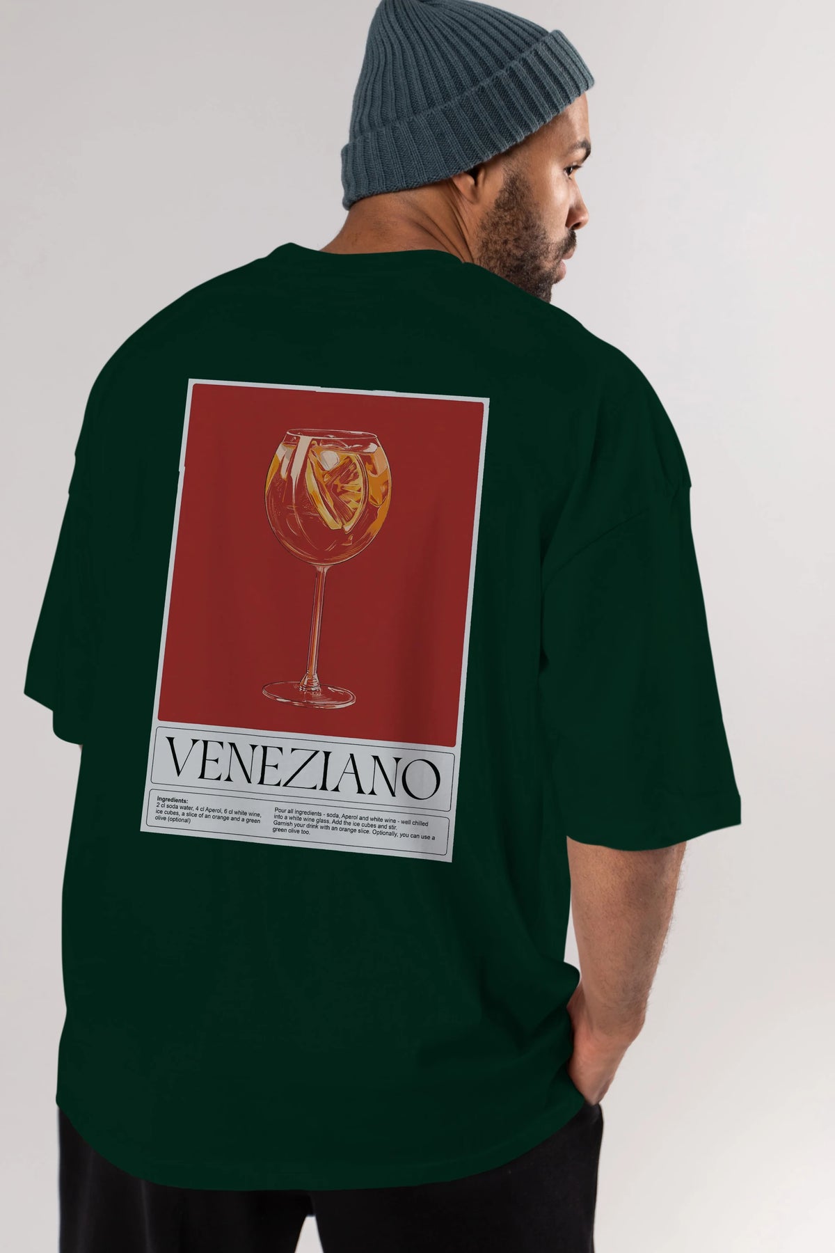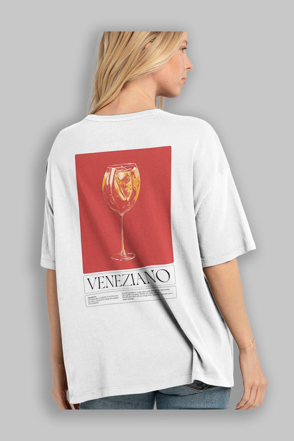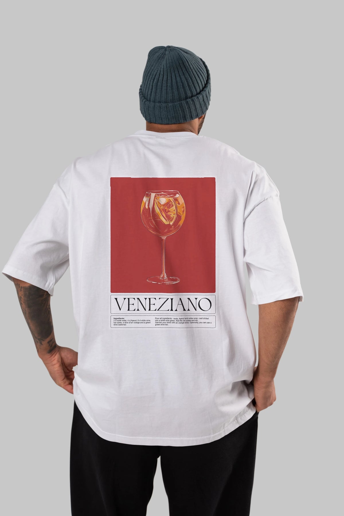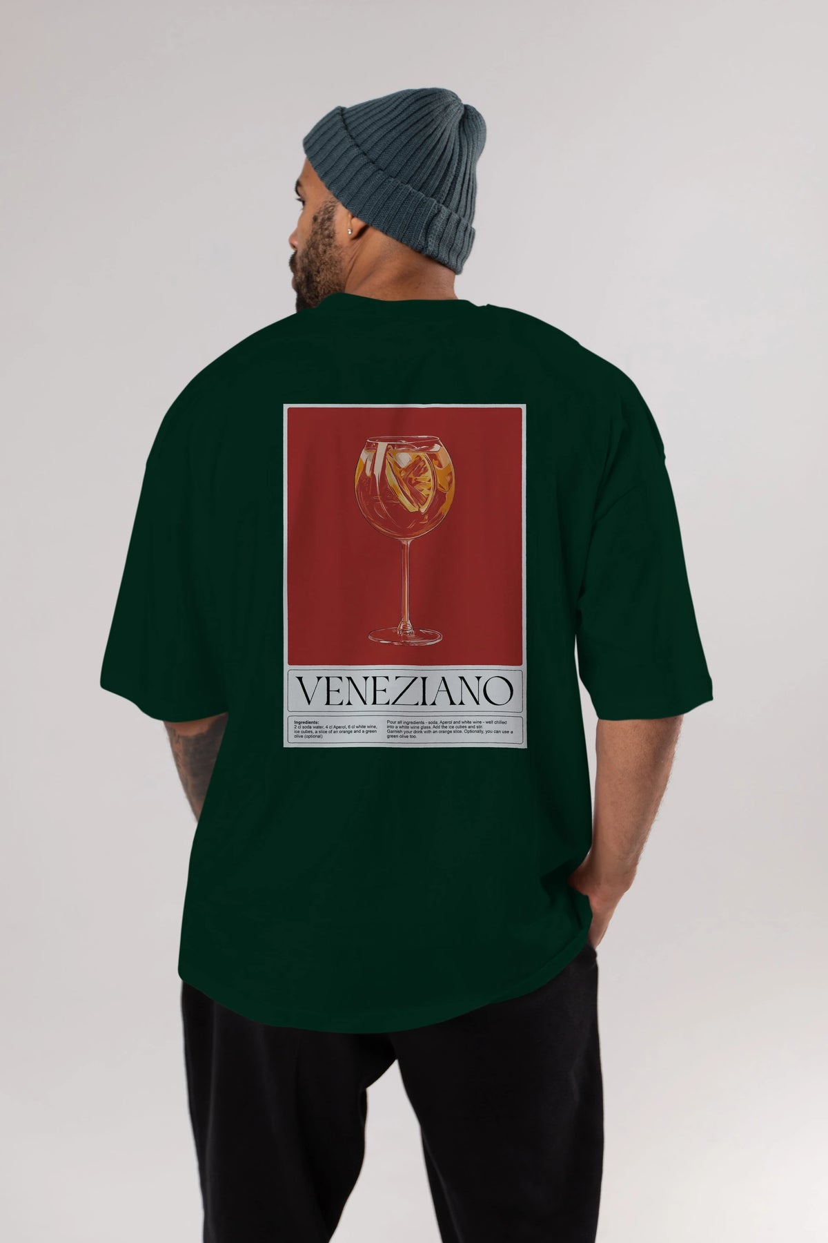 Veneziano Arka Baskılı Oversize t-shirt Erkek Kadın Unisex %100 Pamuk Bisiklet Yaka tişort