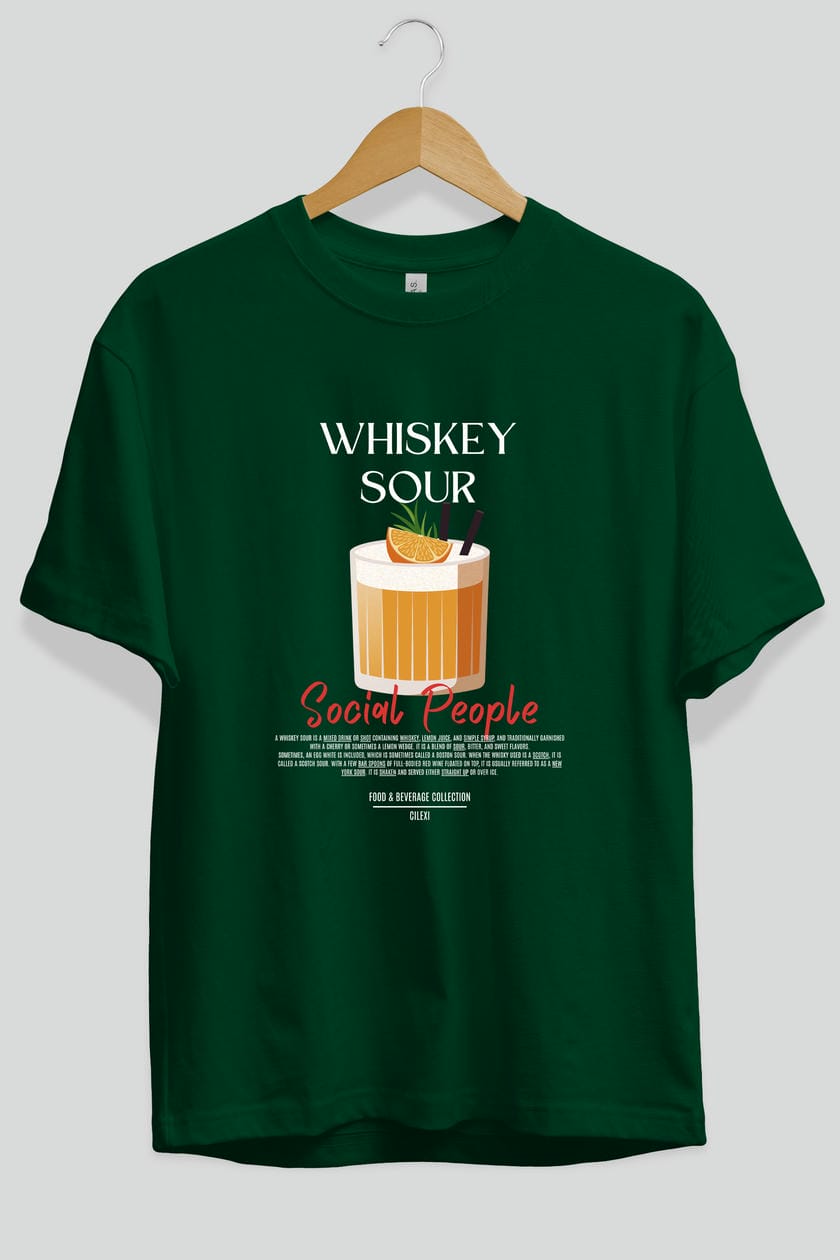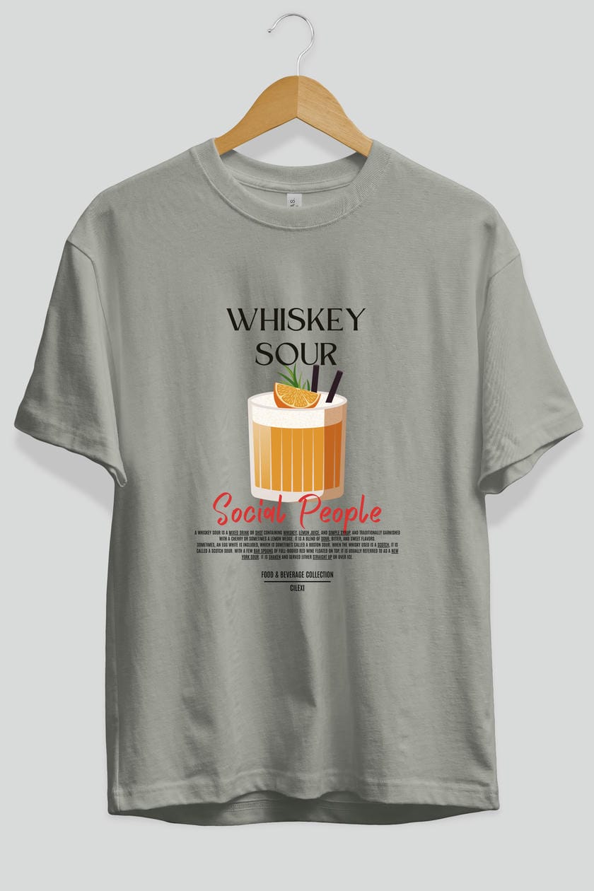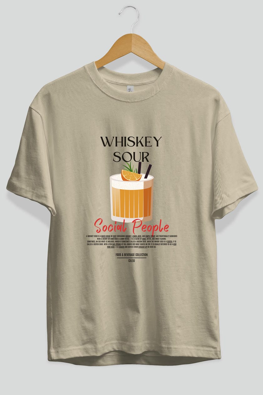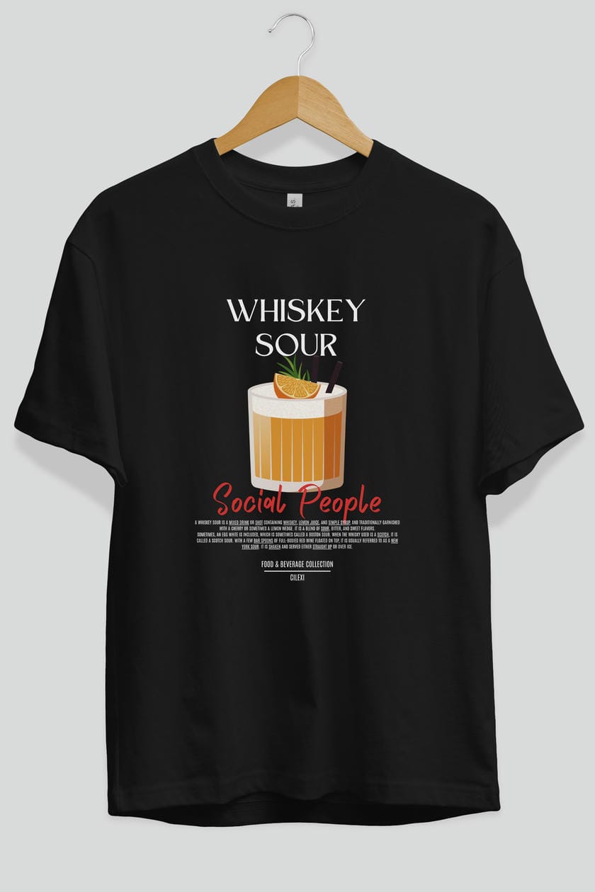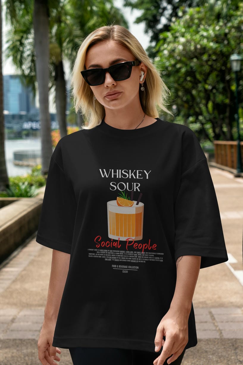 Whıskey Sour Kokteyl Serisi ön Baskılı Oversize t-shirt Erkek Kadın %100 Pamuk Bisiklet Yaka tişort