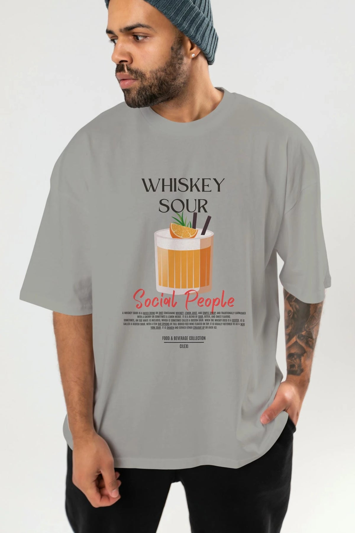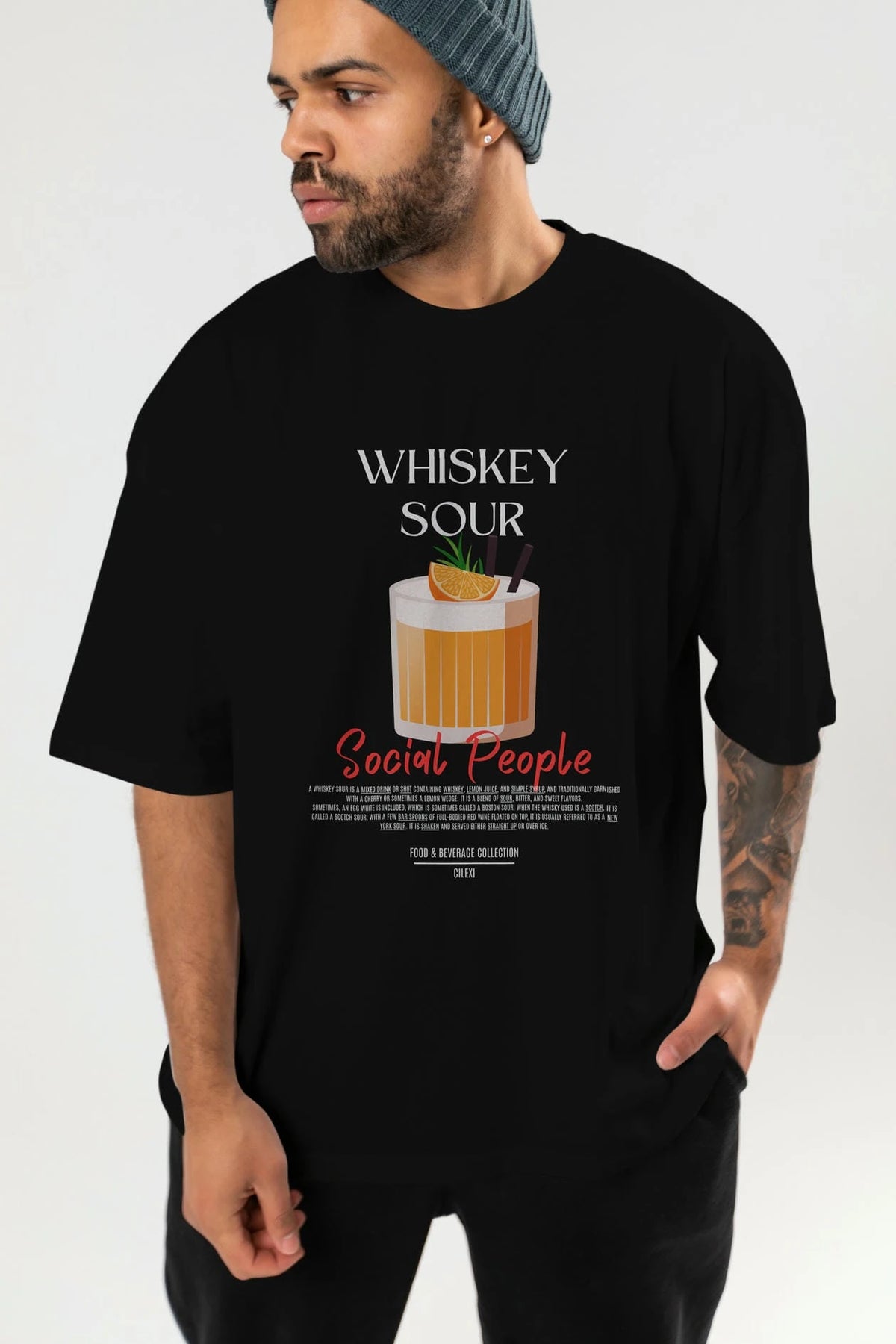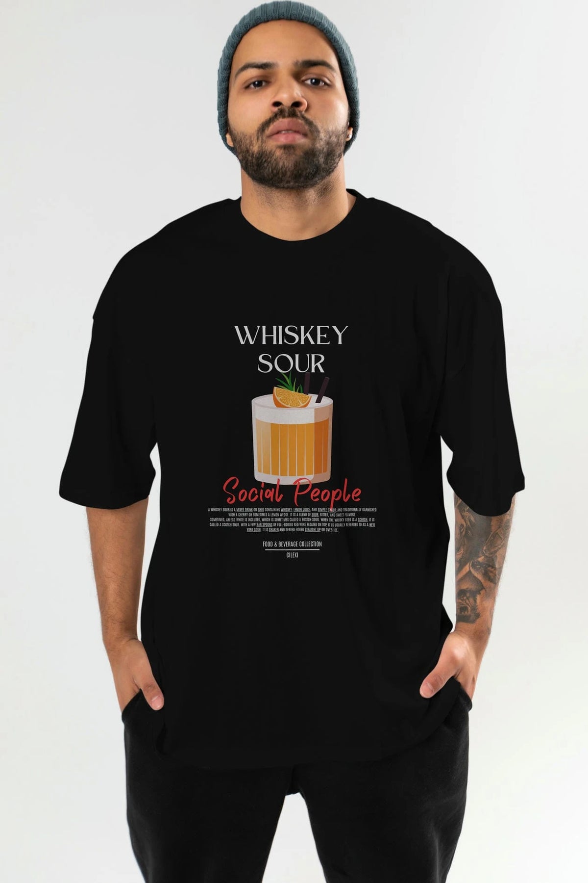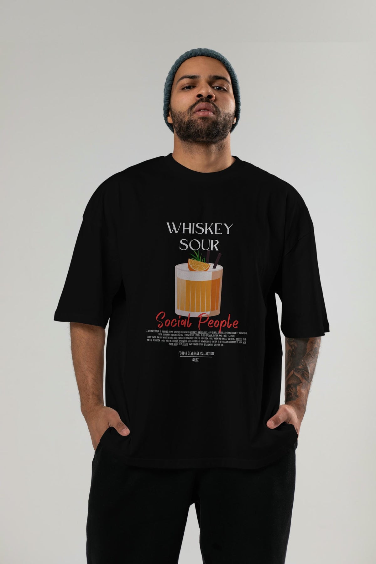 Whıskey Sour Kokteyl Serisi ön Baskılı Oversize t-shirt Erkek Kadın %100 Pamuk Bisiklet Yaka tişort
