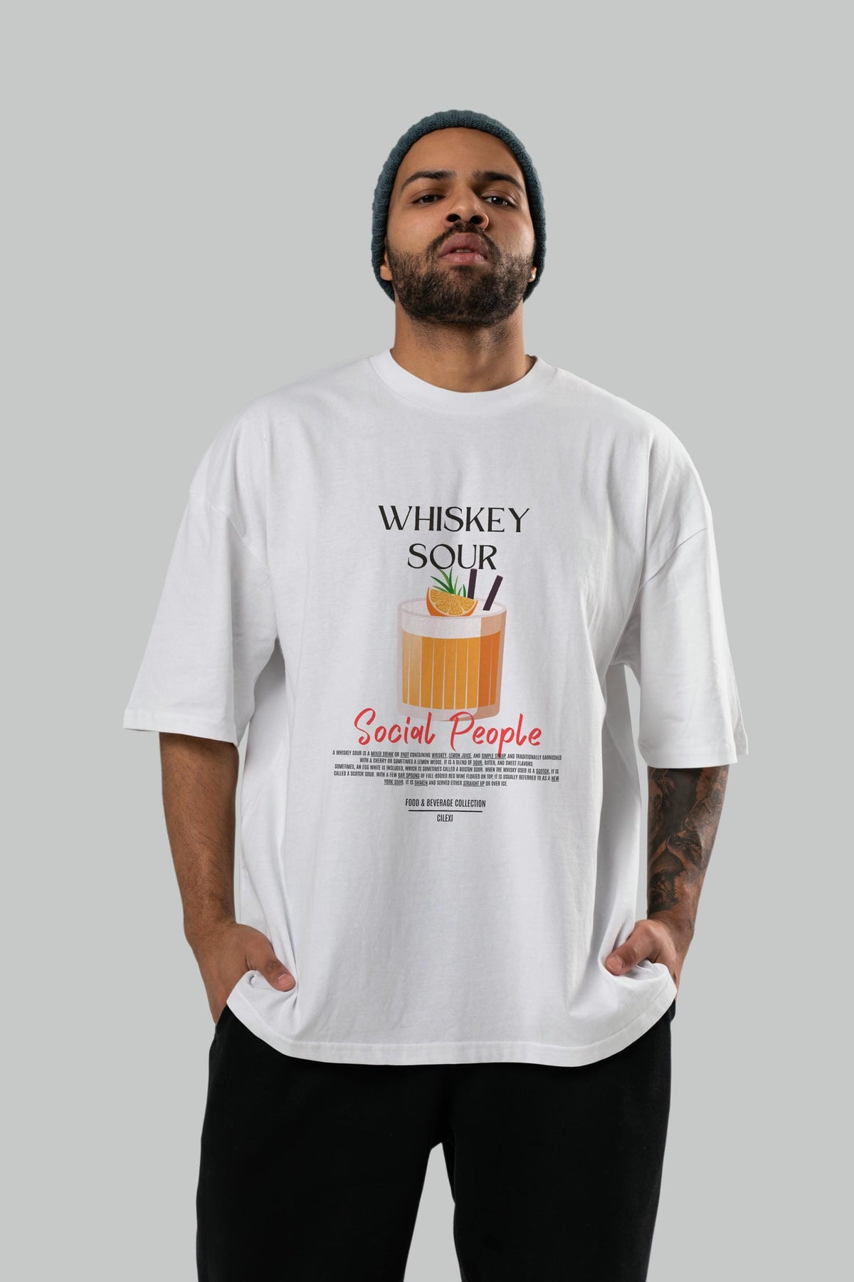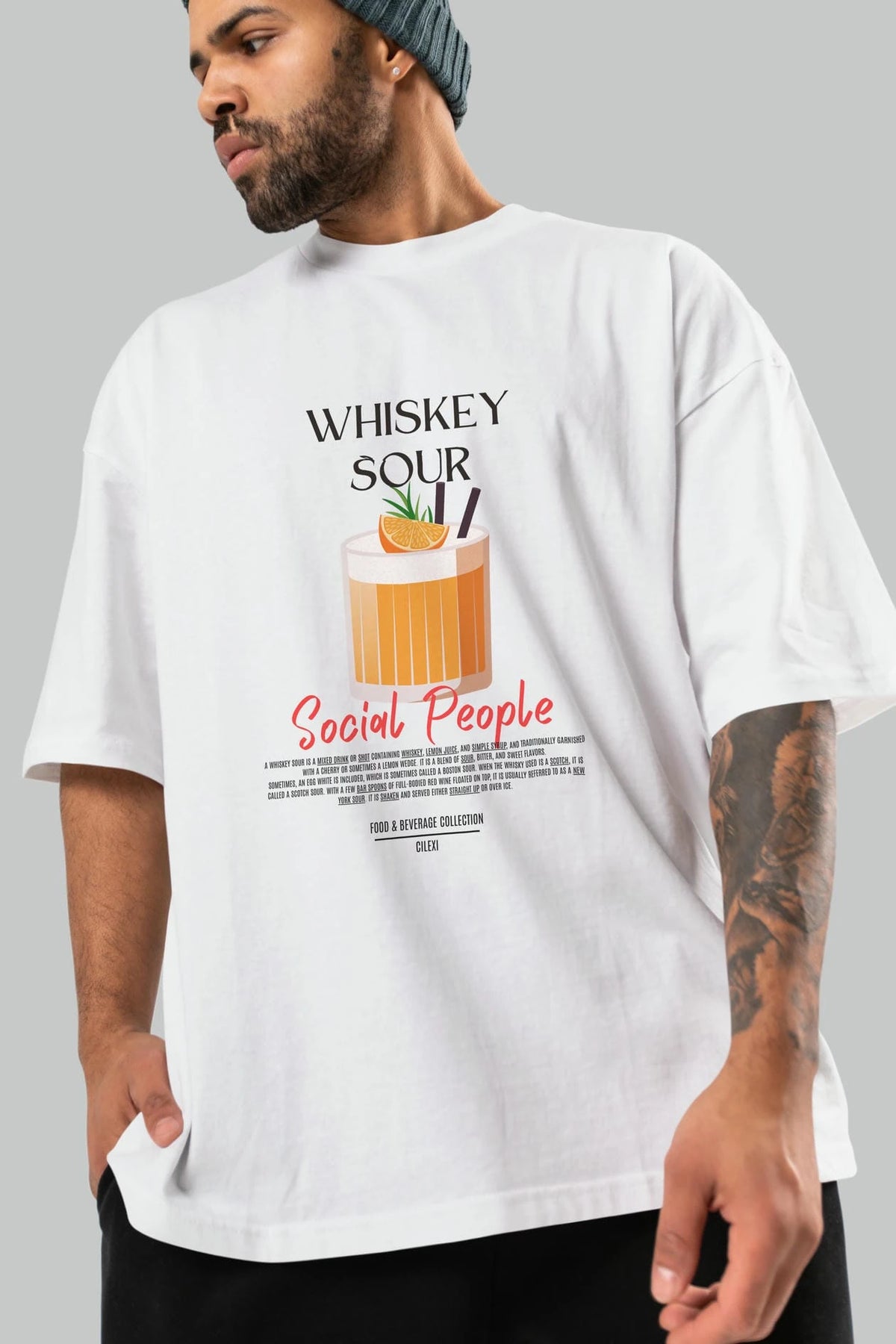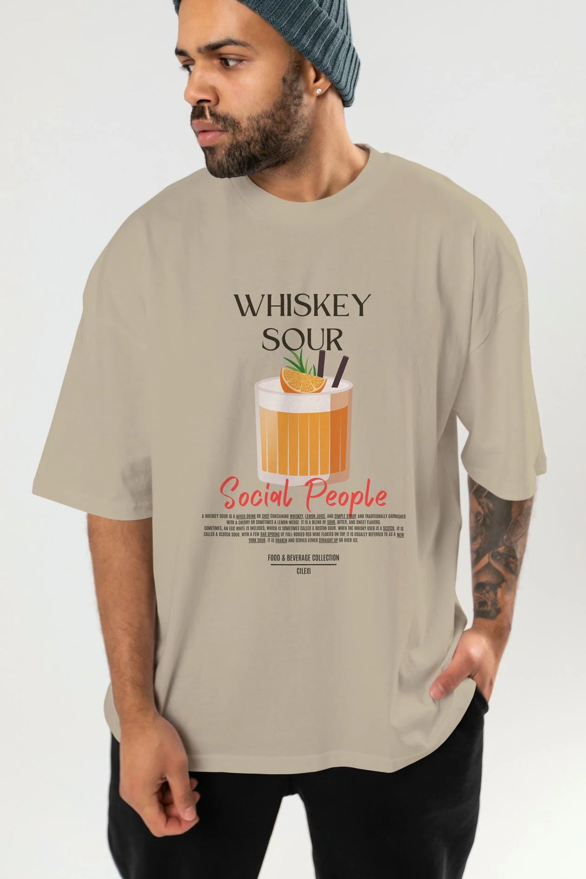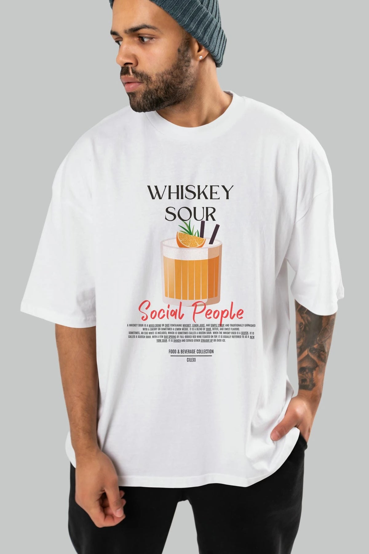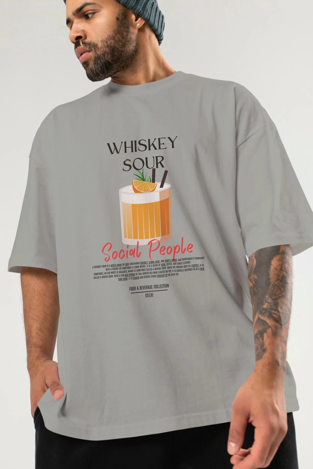 Whıskey Sour Kokteyl Serisi ön Baskılı Oversize t-shirt Erkek Kadın %100 Pamuk Bisiklet Yaka tişort