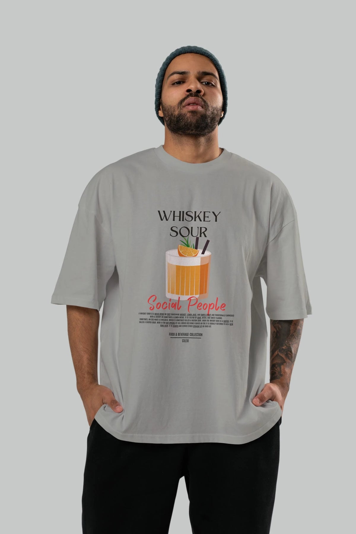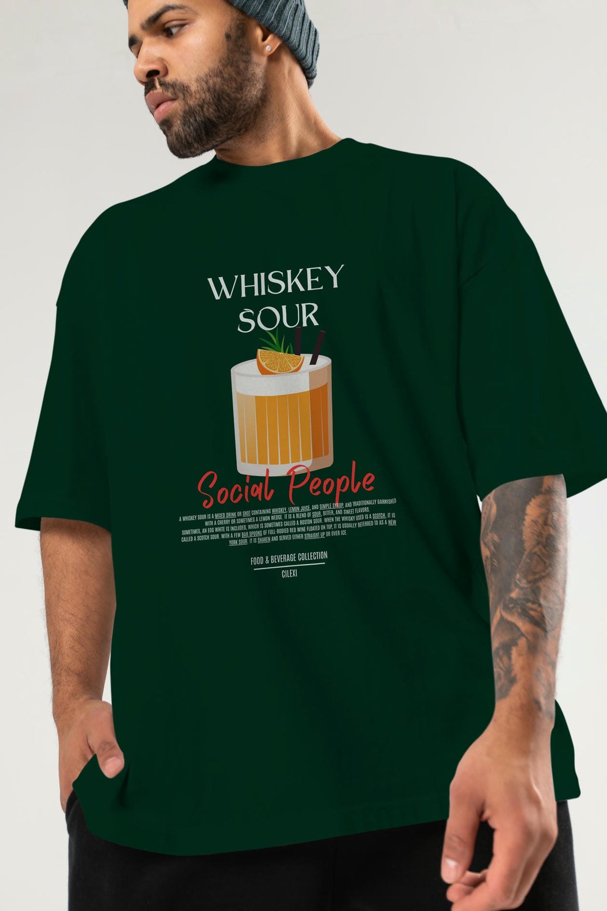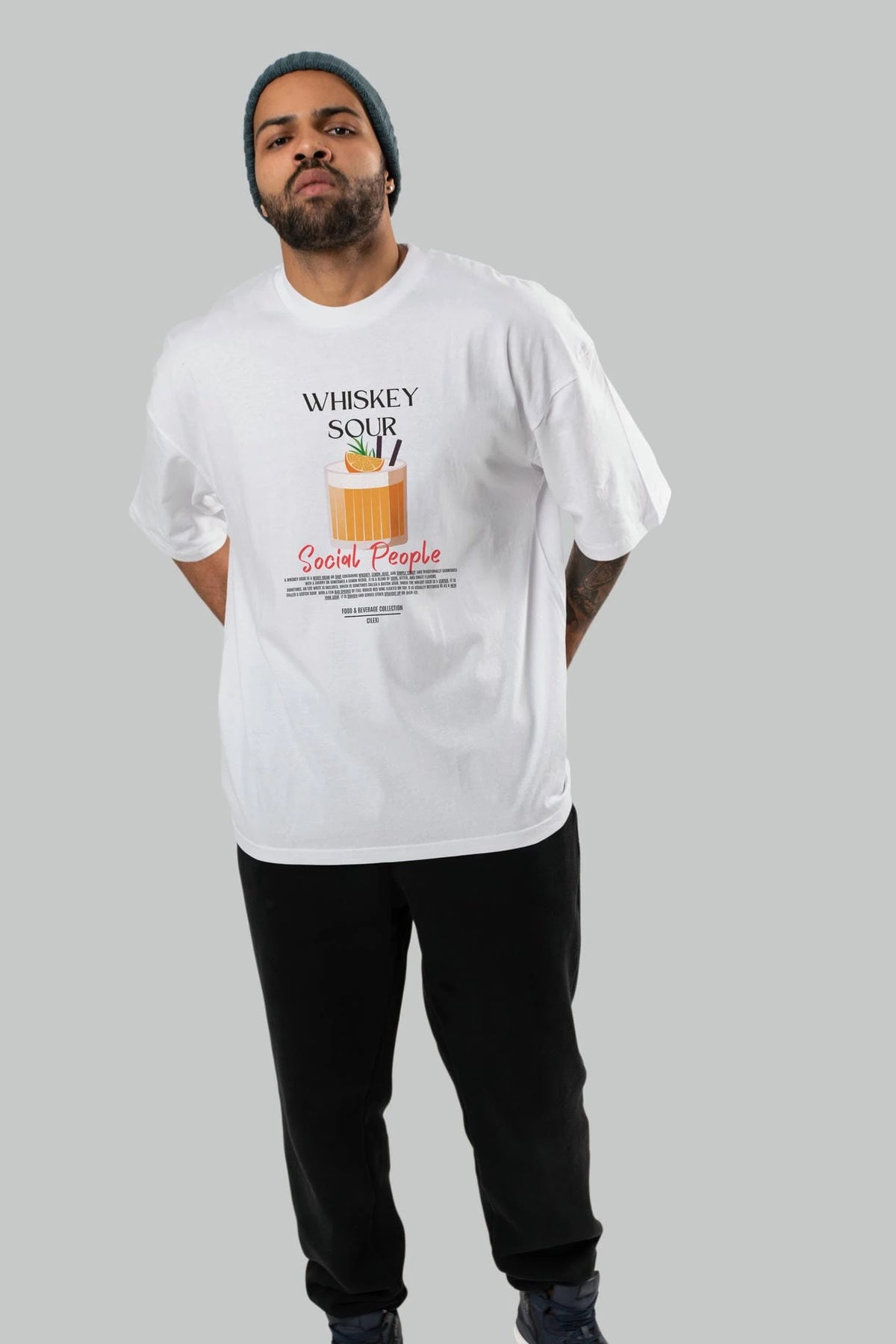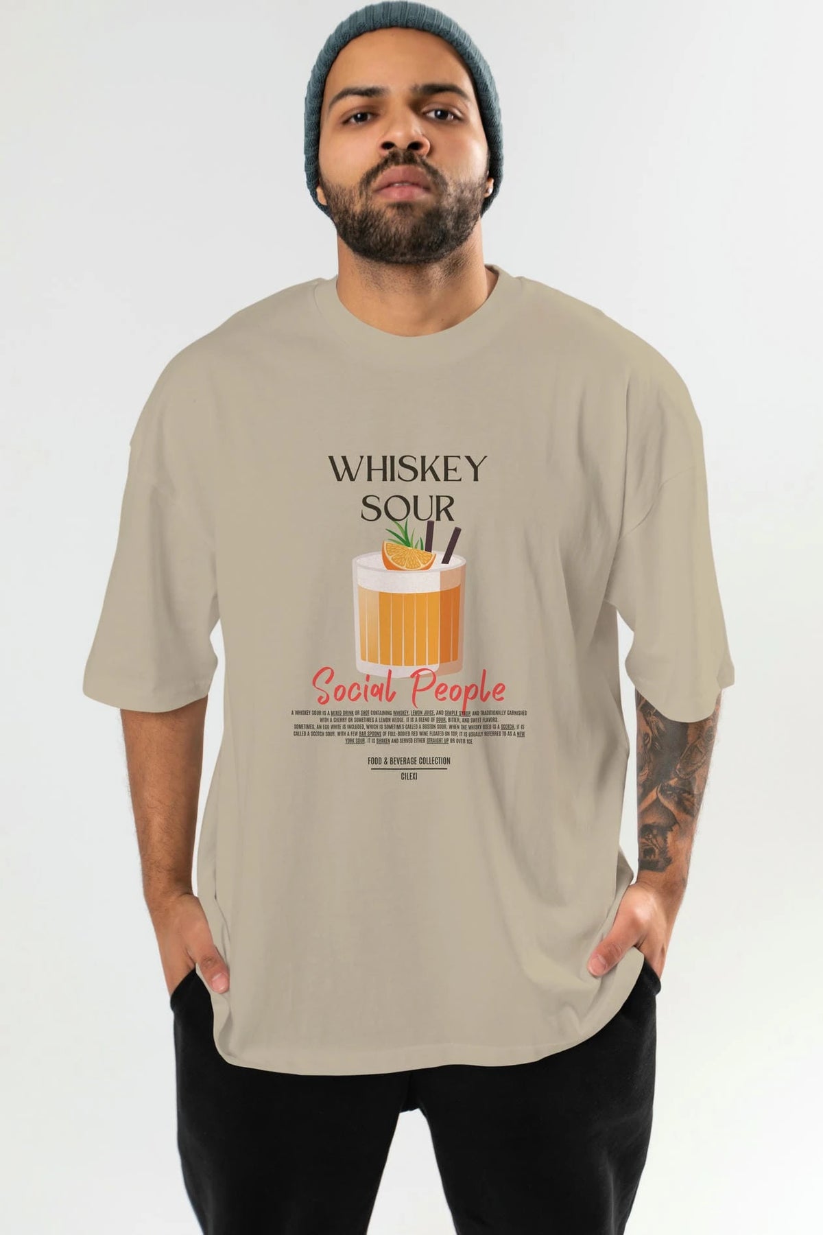 Whıskey Sour Kokteyl Serisi ön Baskılı Oversize t-shirt Erkek Kadın %100 Pamuk Bisiklet Yaka tişort