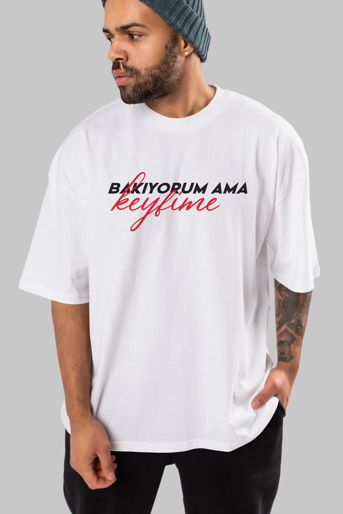 Bakıyorum Ama Keyfime Ön Baskılı Oversize t-shirt %100 pamuk Erkek Kadın Unisex
