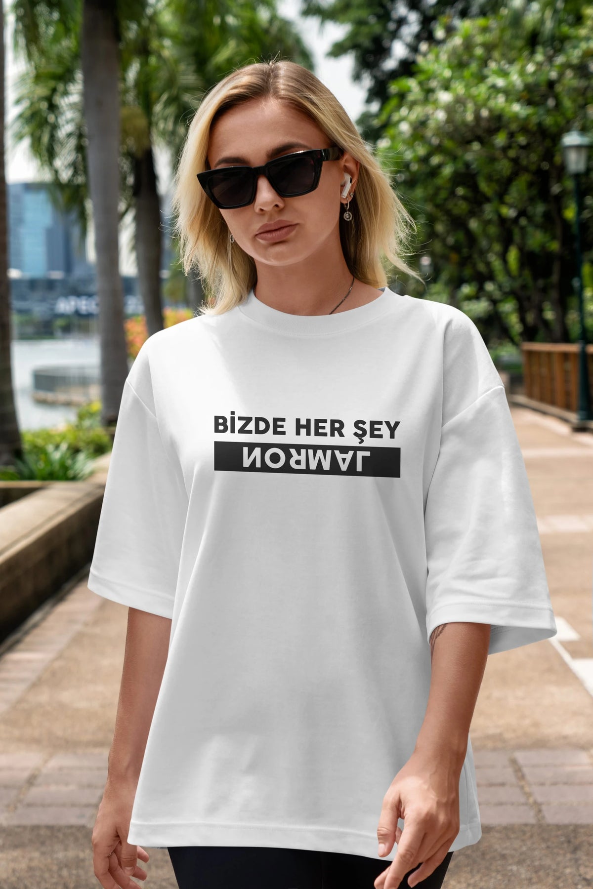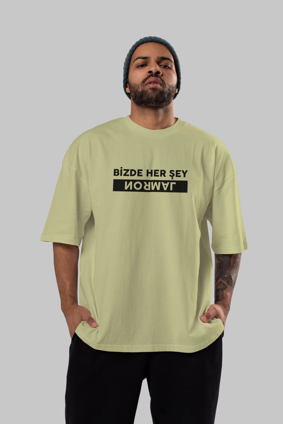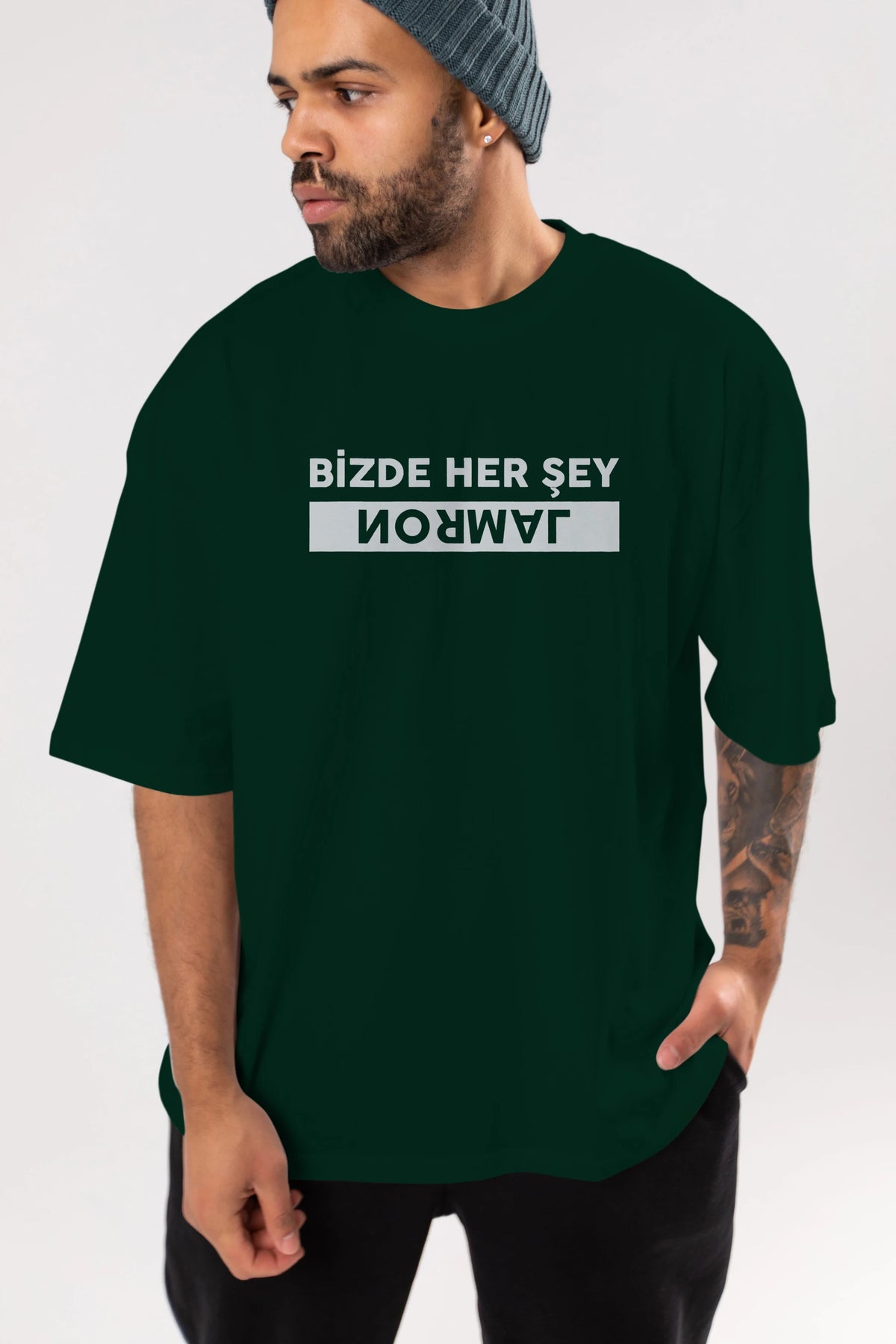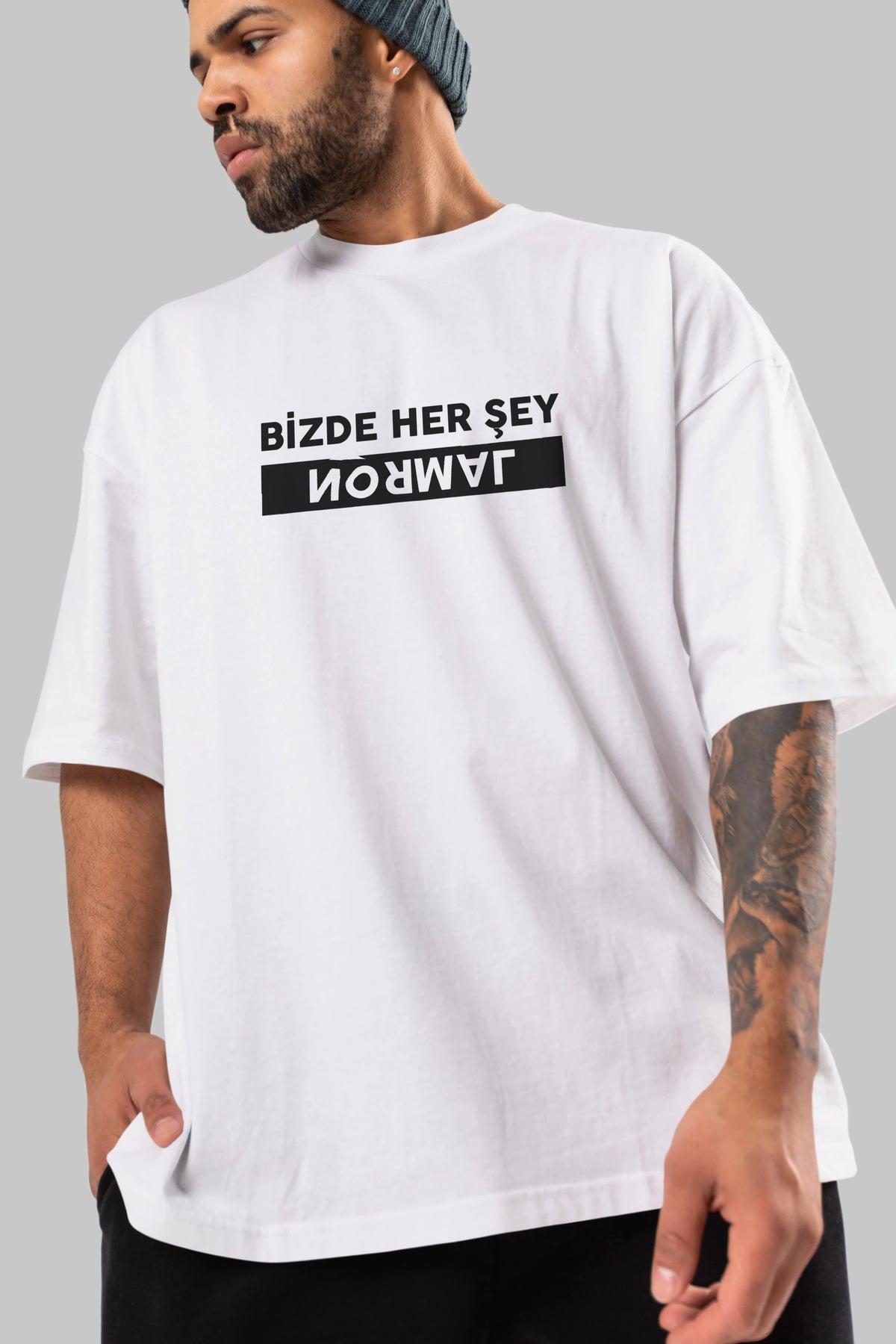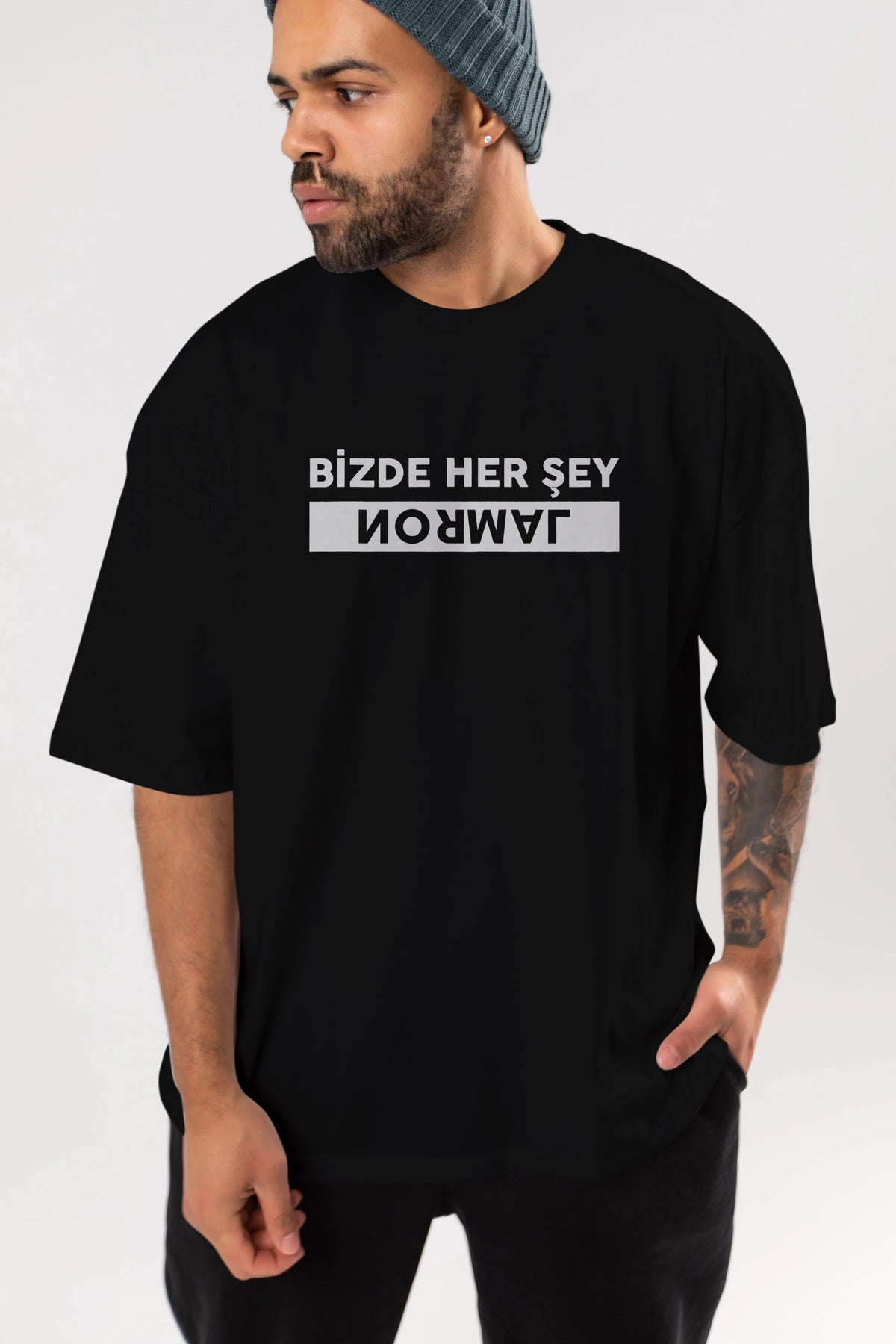 Bizde Her Şey Normal Ön Baskılı Oversize t-shirt %100 pamuk Erkek Kadın Unisex