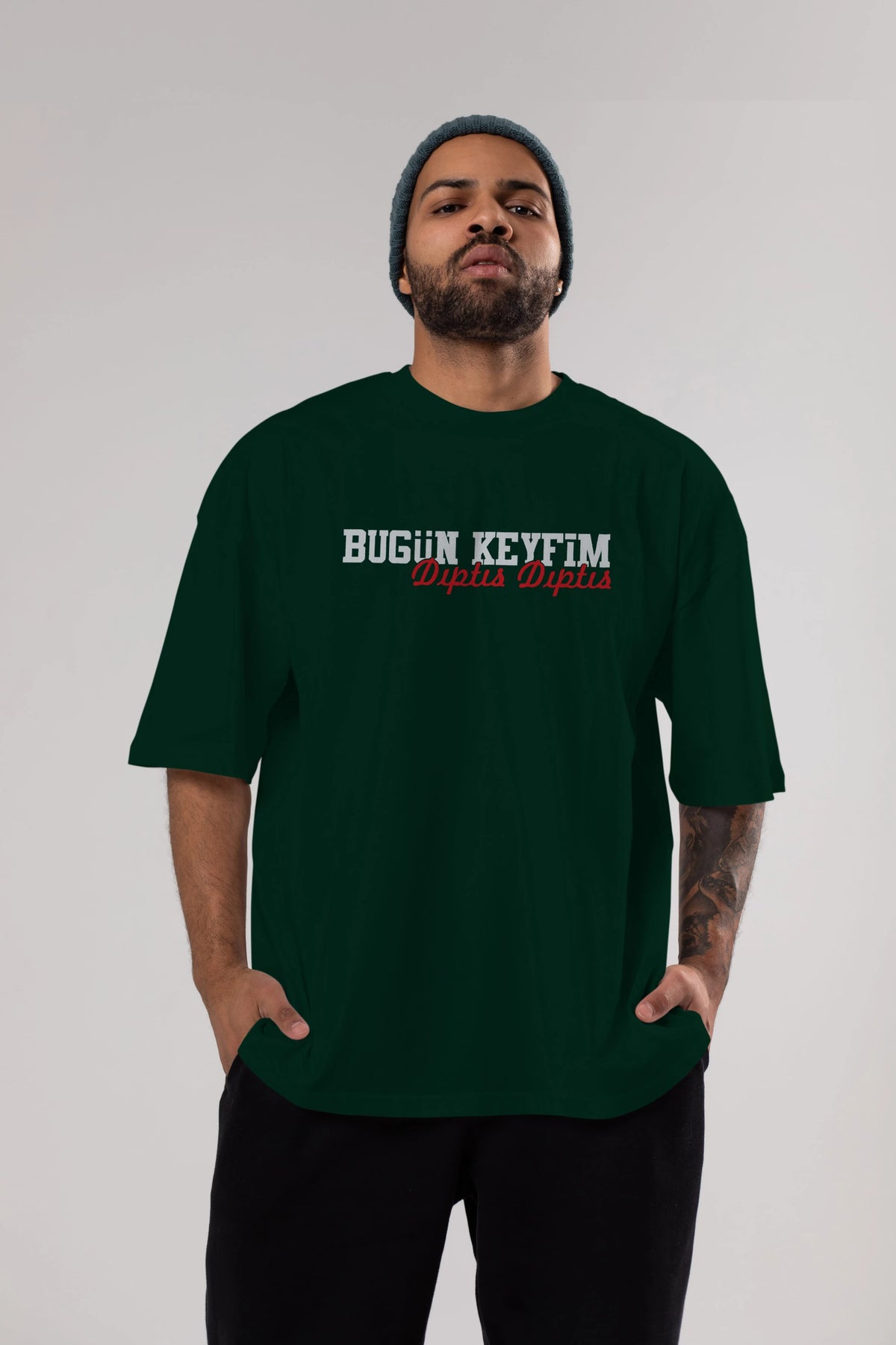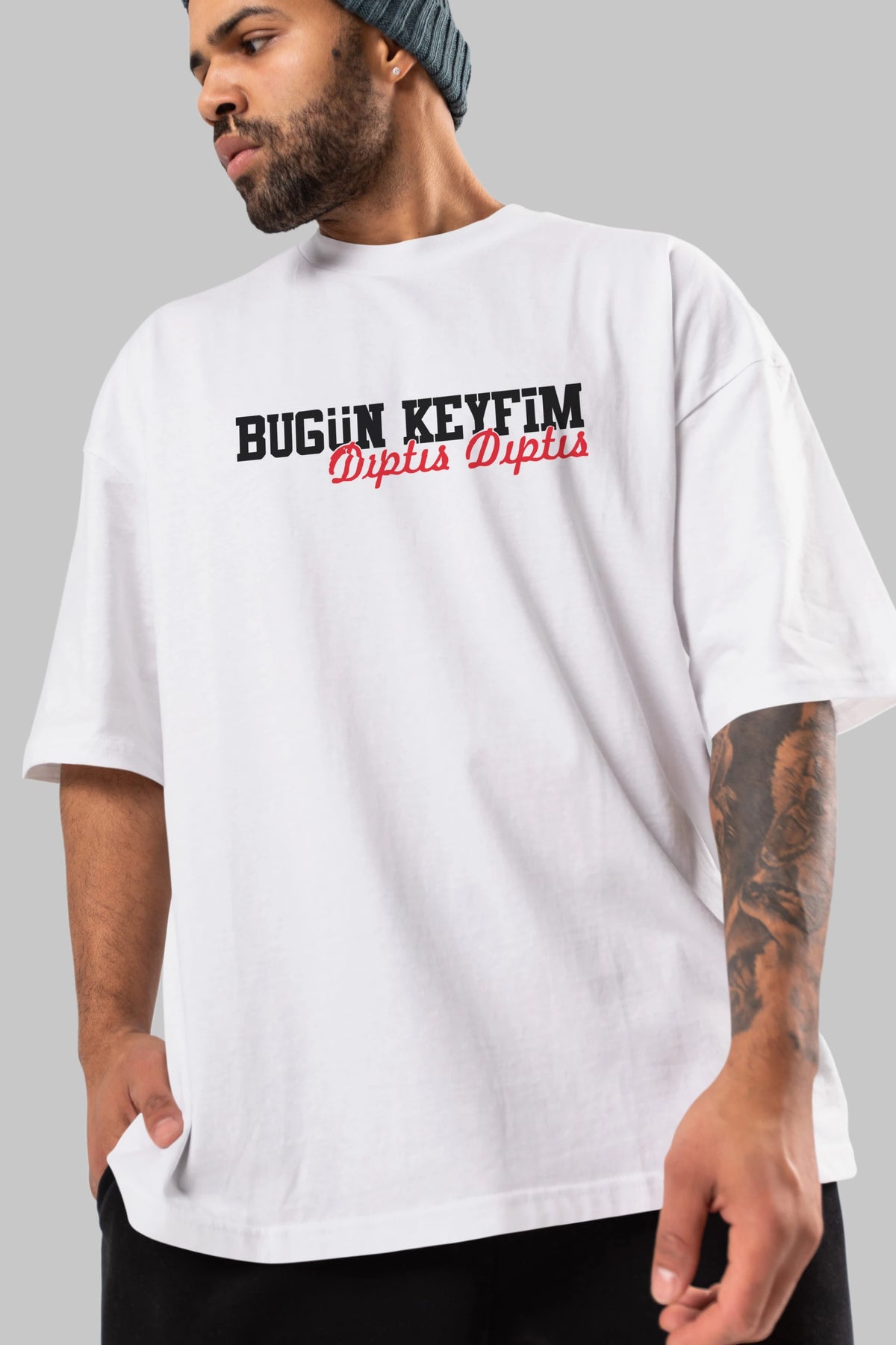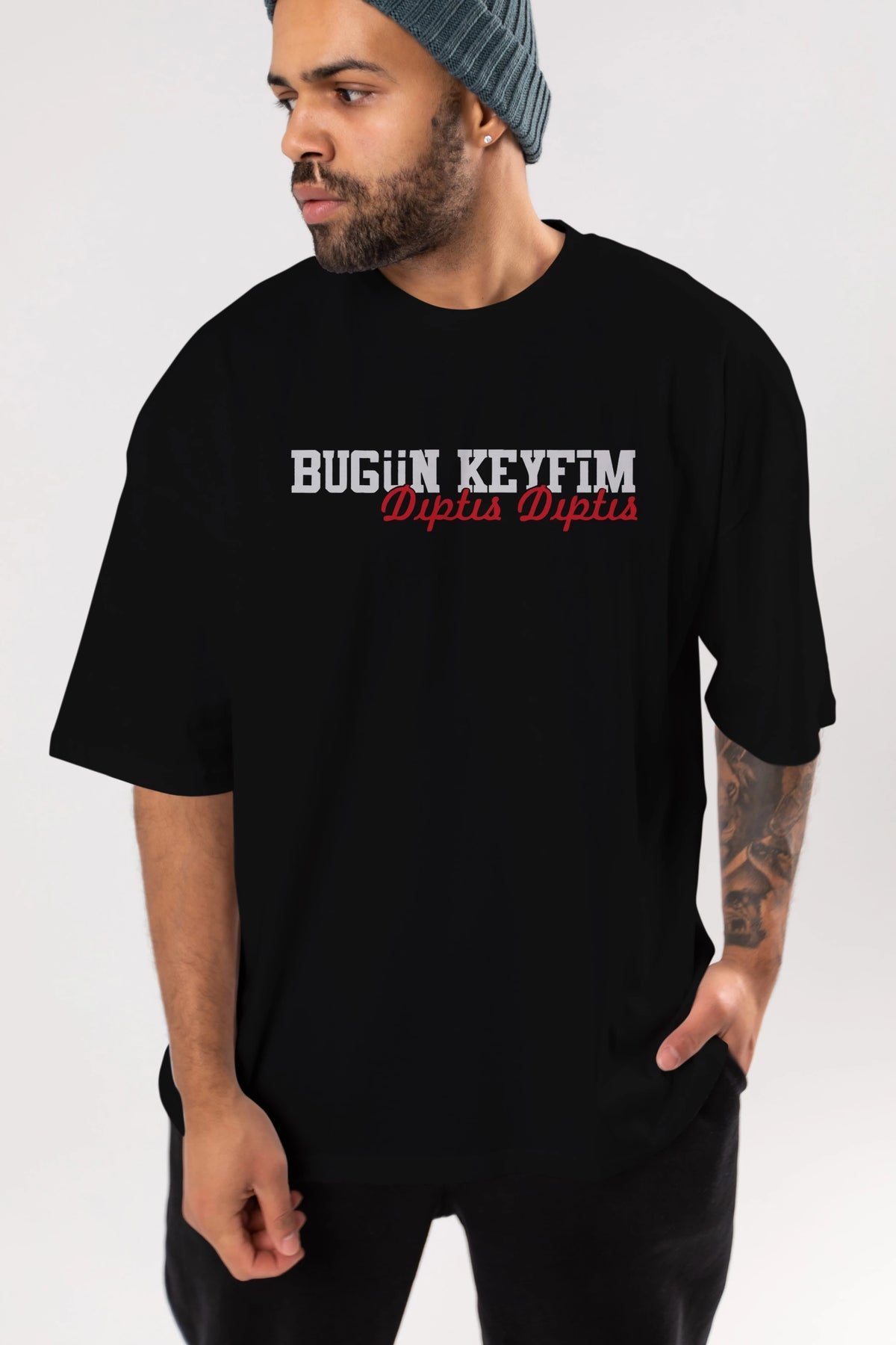 Bugün Keyfim Dıptıs Ön Baskılı Oversize t-shirt %100 pamuk Erkek Kadın Unisex