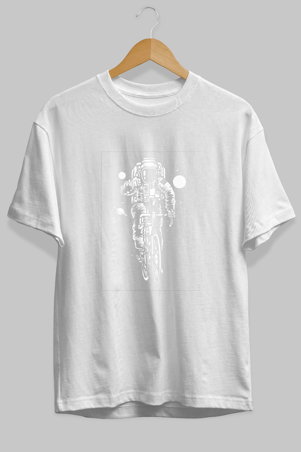 Astronaut Bicycle Ön Baskılı Oversize t-shirt Erkek Kadın Unisex %100 Pamuk tişort