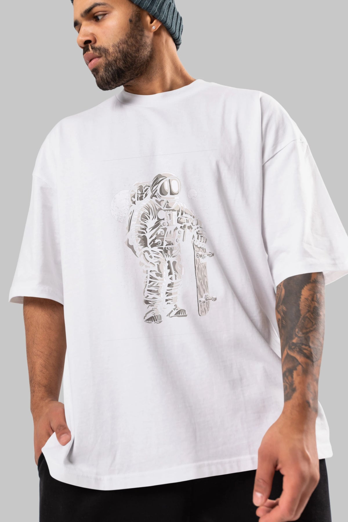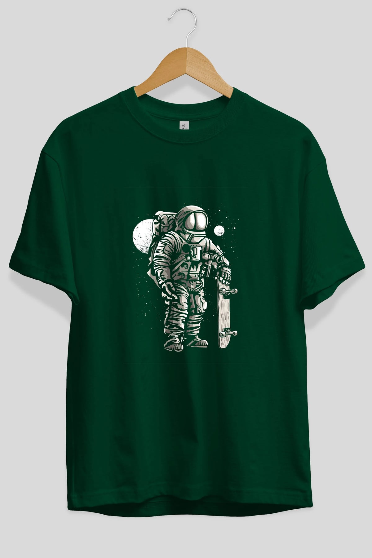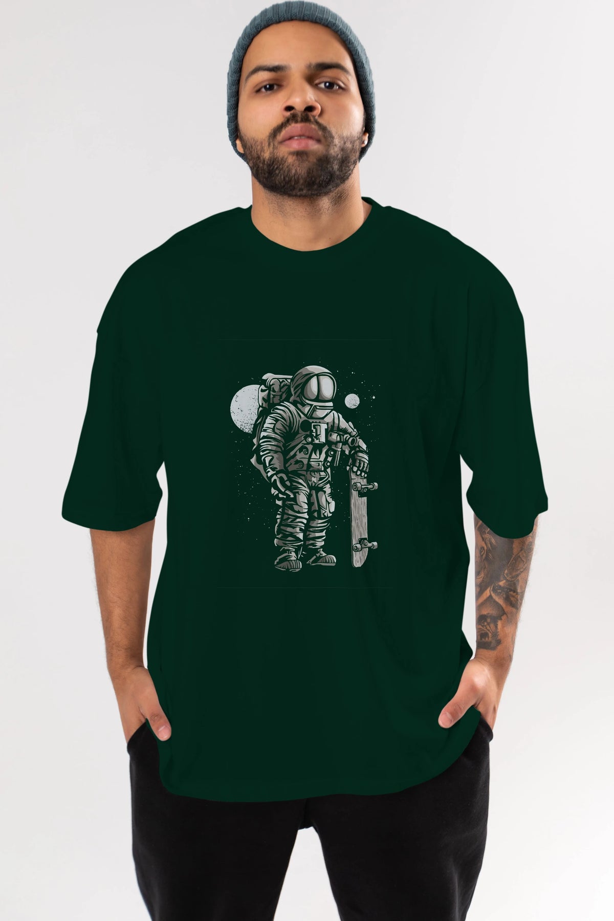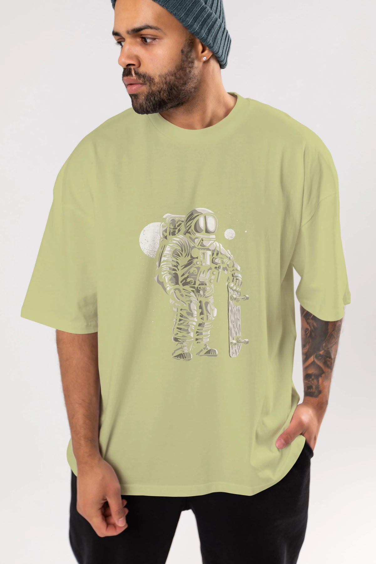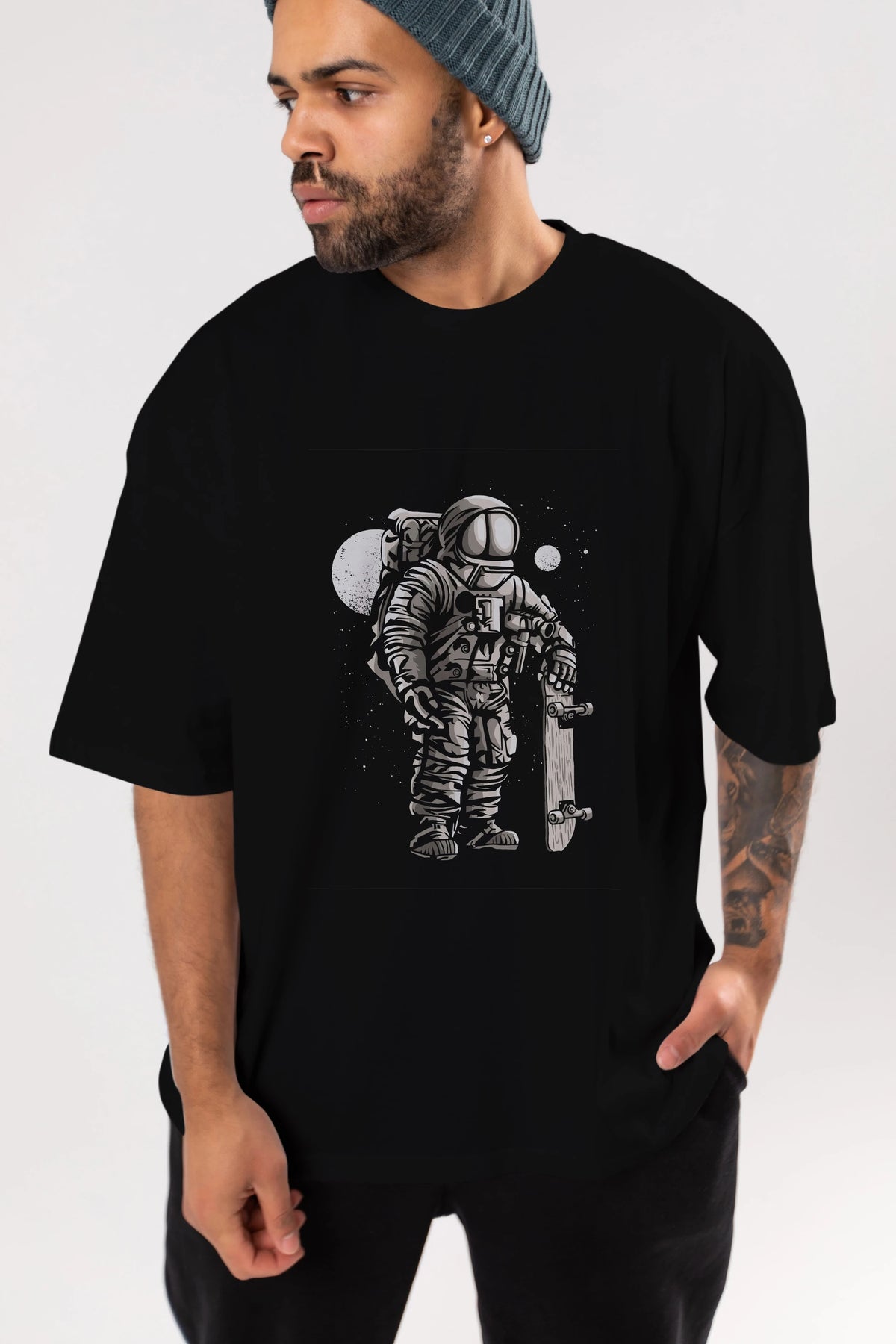 Astronaut Skater Ön Baskılı Oversize t-shirt Erkek Kadın Unisex %100 Pamuk tişort