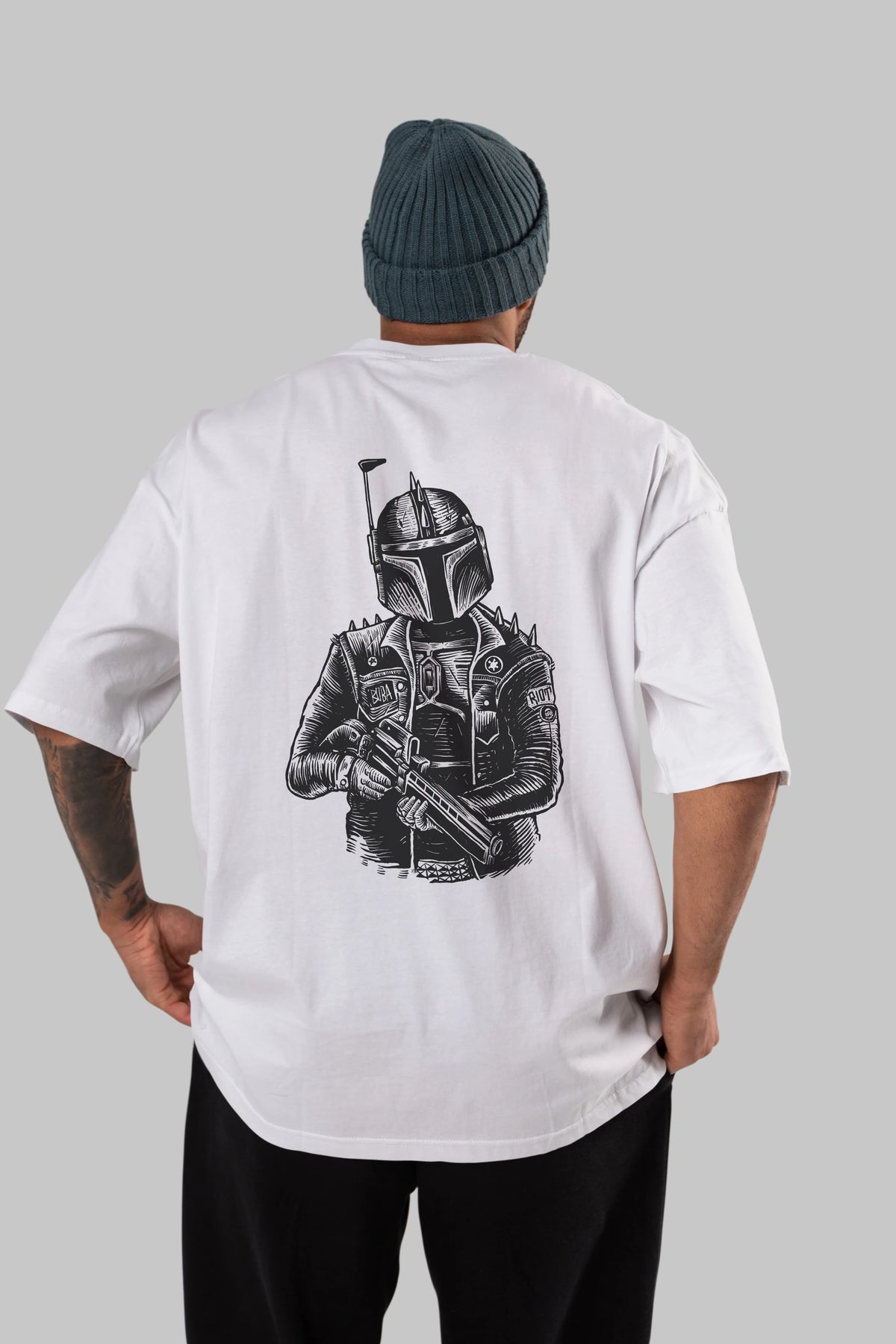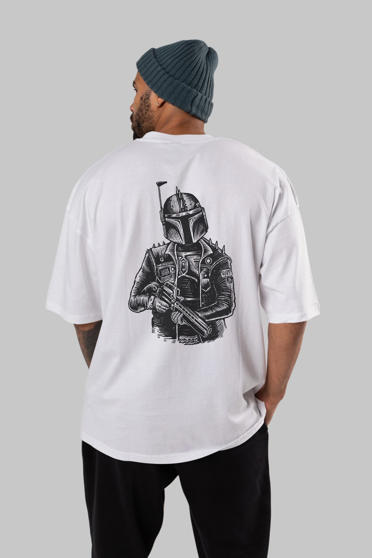 Boba Punk Arka Baskılı Oversize t-shirt Erkek Kadın Unisex %100 Pamuk