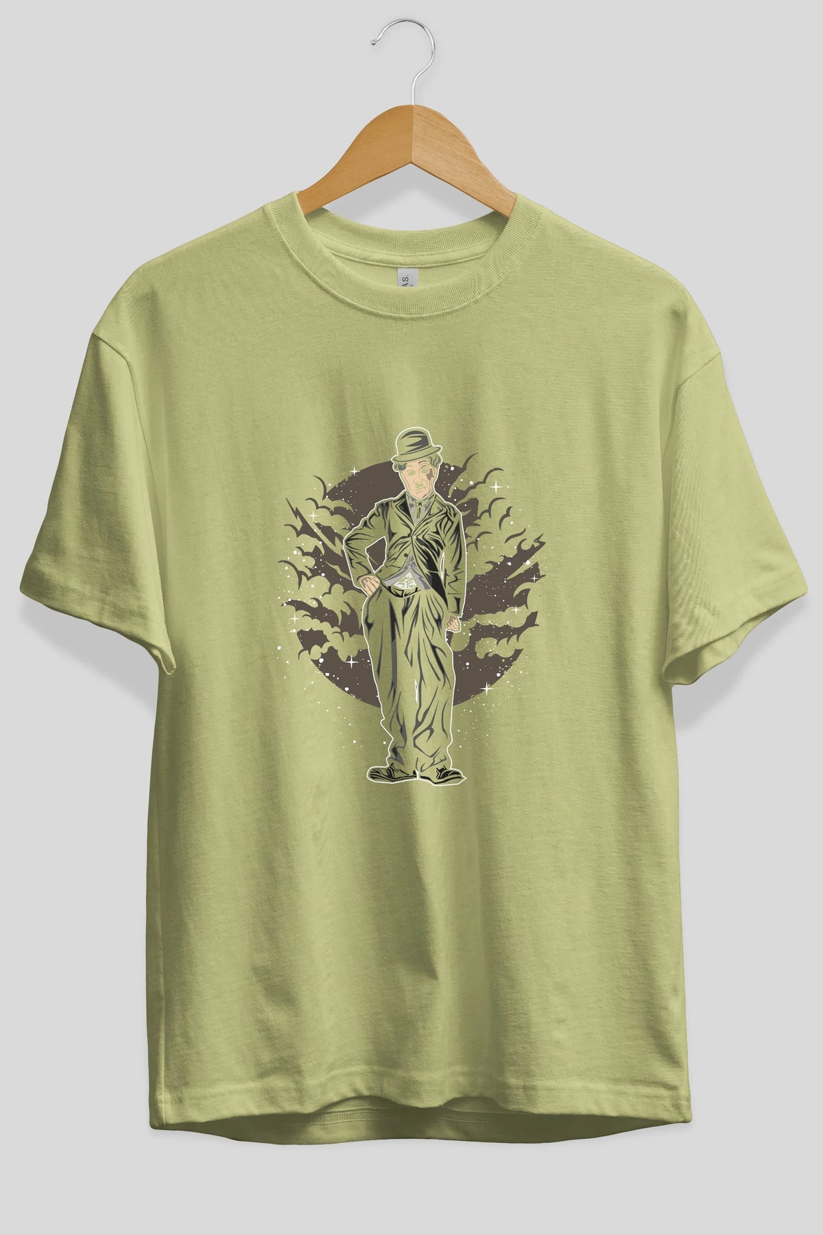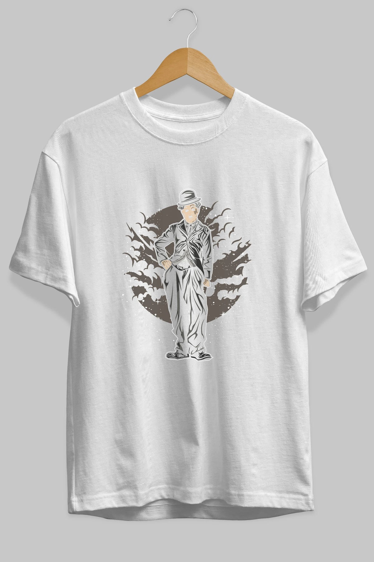CHAPLIN Ön Baskılı Oversize t-shirt Erkek Kadın Unisex %100 Pamuk tişort