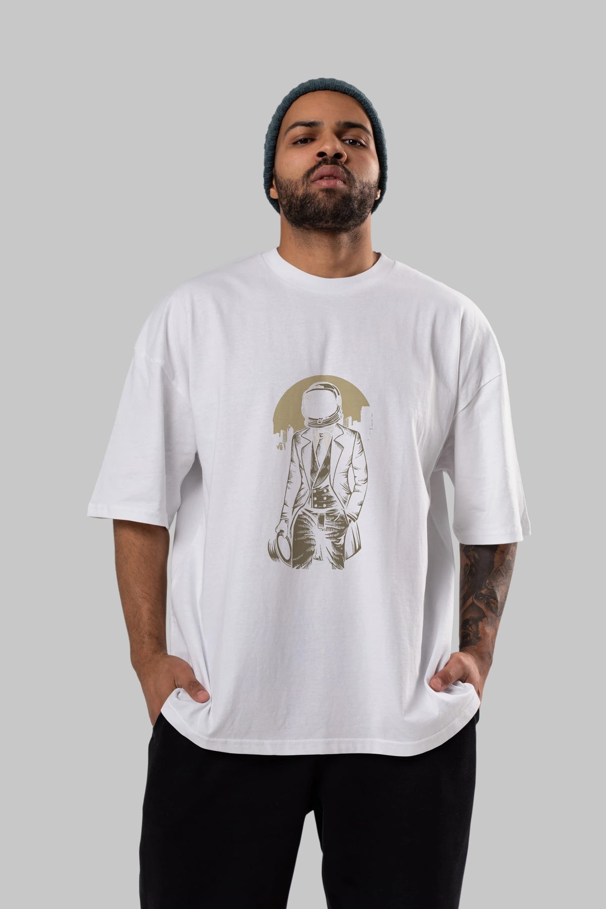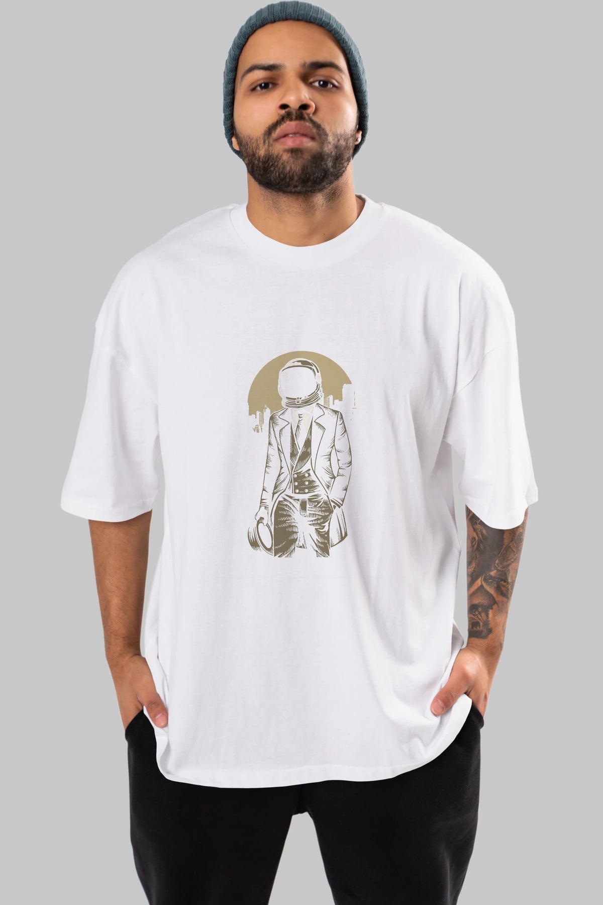 Classic Astronaut Ön Baskılı Oversize t-shirt Erkek Kadın Unisex %100 Pamuk tişort