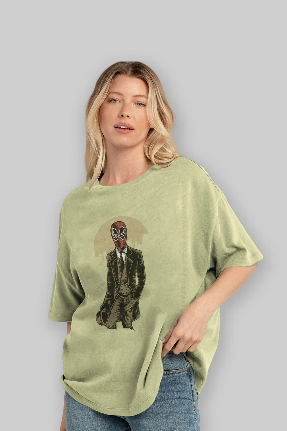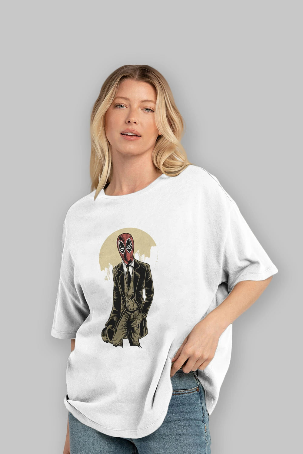 Hem erkekler hem de kadınlar için uygun, taze, modern bir baskıya sahip baskılı oversize t-shirt.
