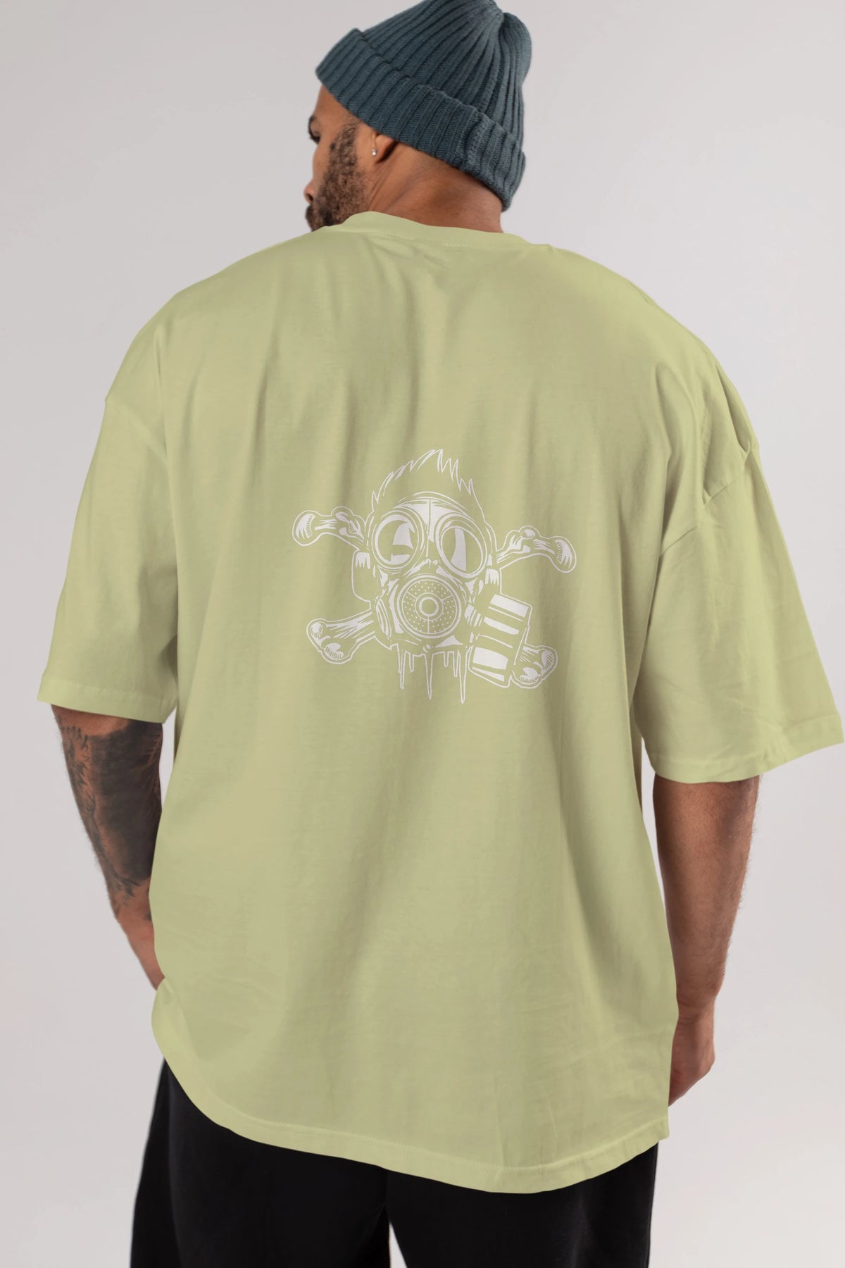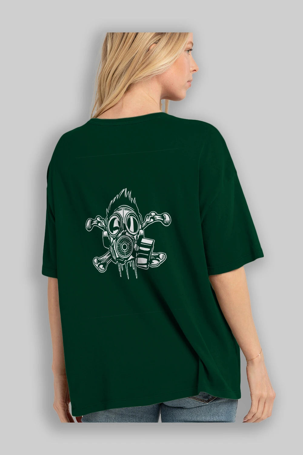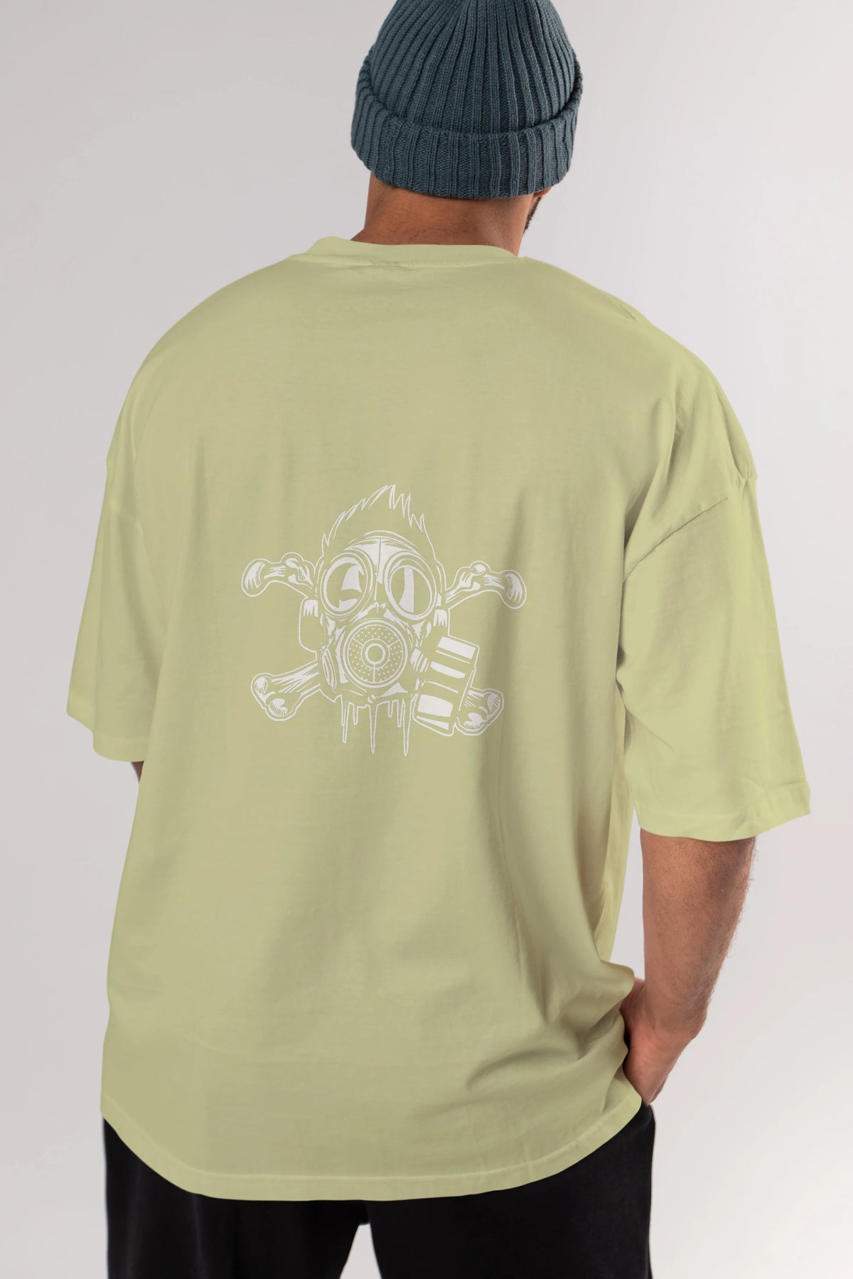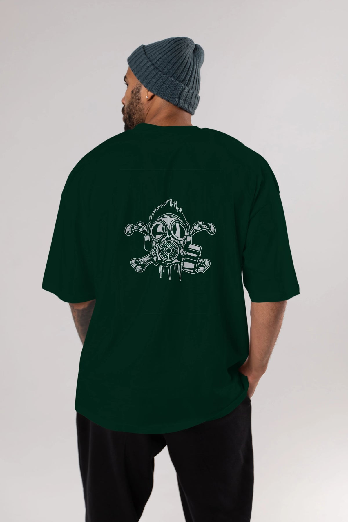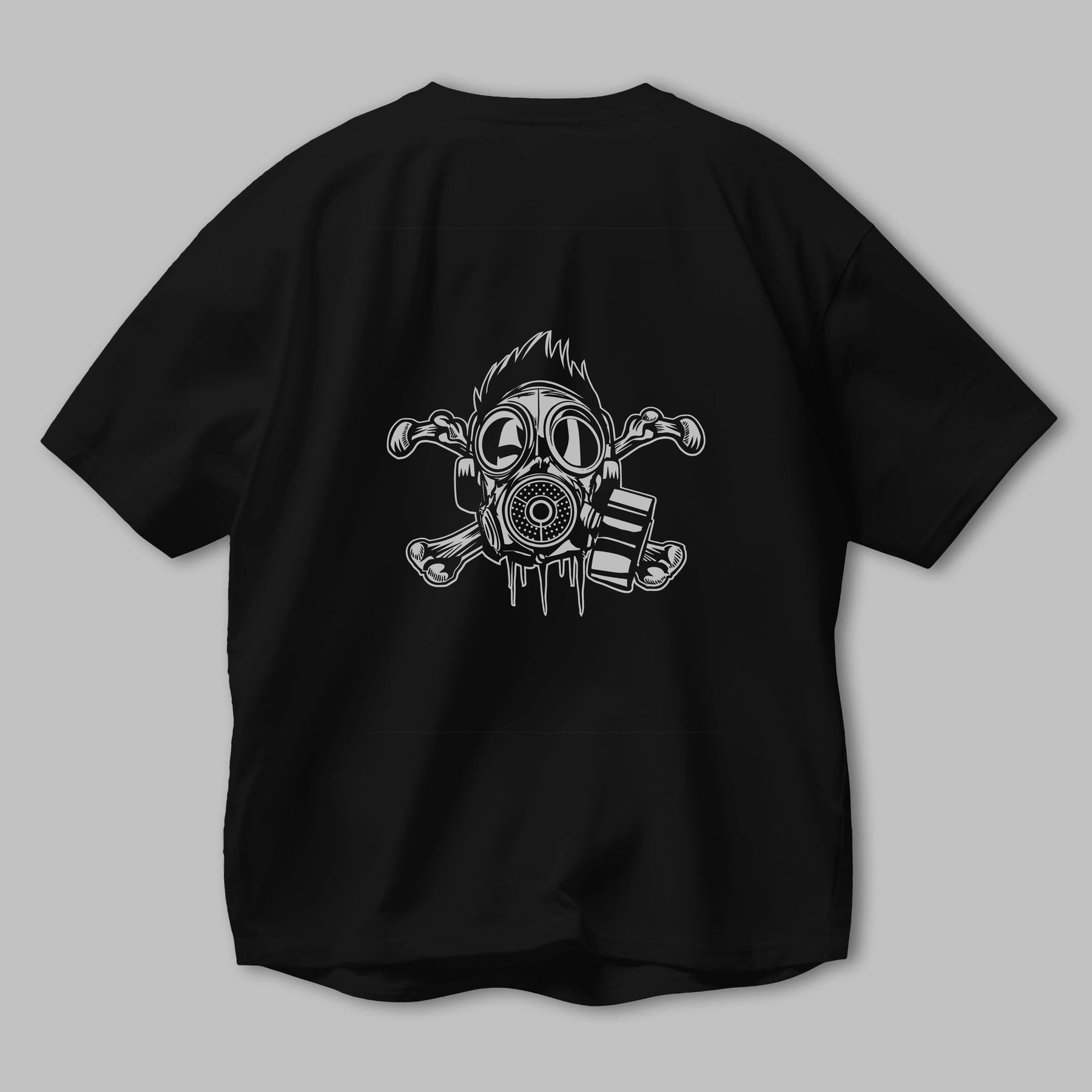 Cross Bones Gasmask Arka Baskılı Oversize t-shirt Erkek Kadın Unisex %100 Pamuk