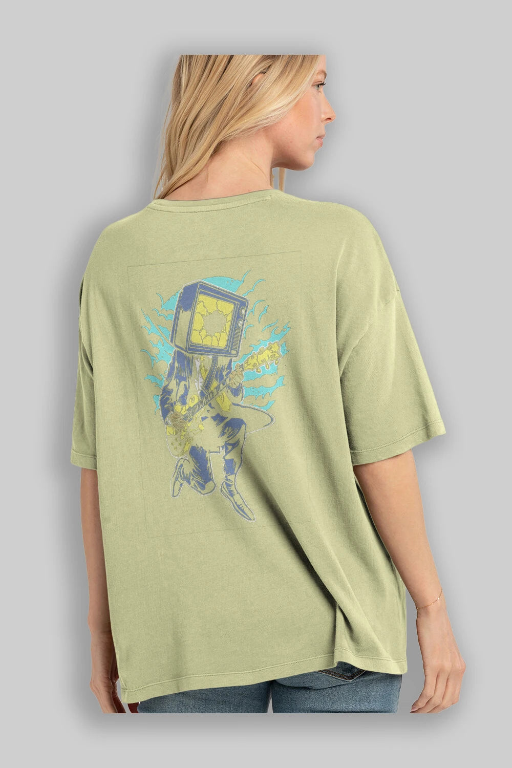 Hem erkekler hem de kadınlar için uygun, taze, modern bir baskıya sahip baskılı oversize t-shirt.