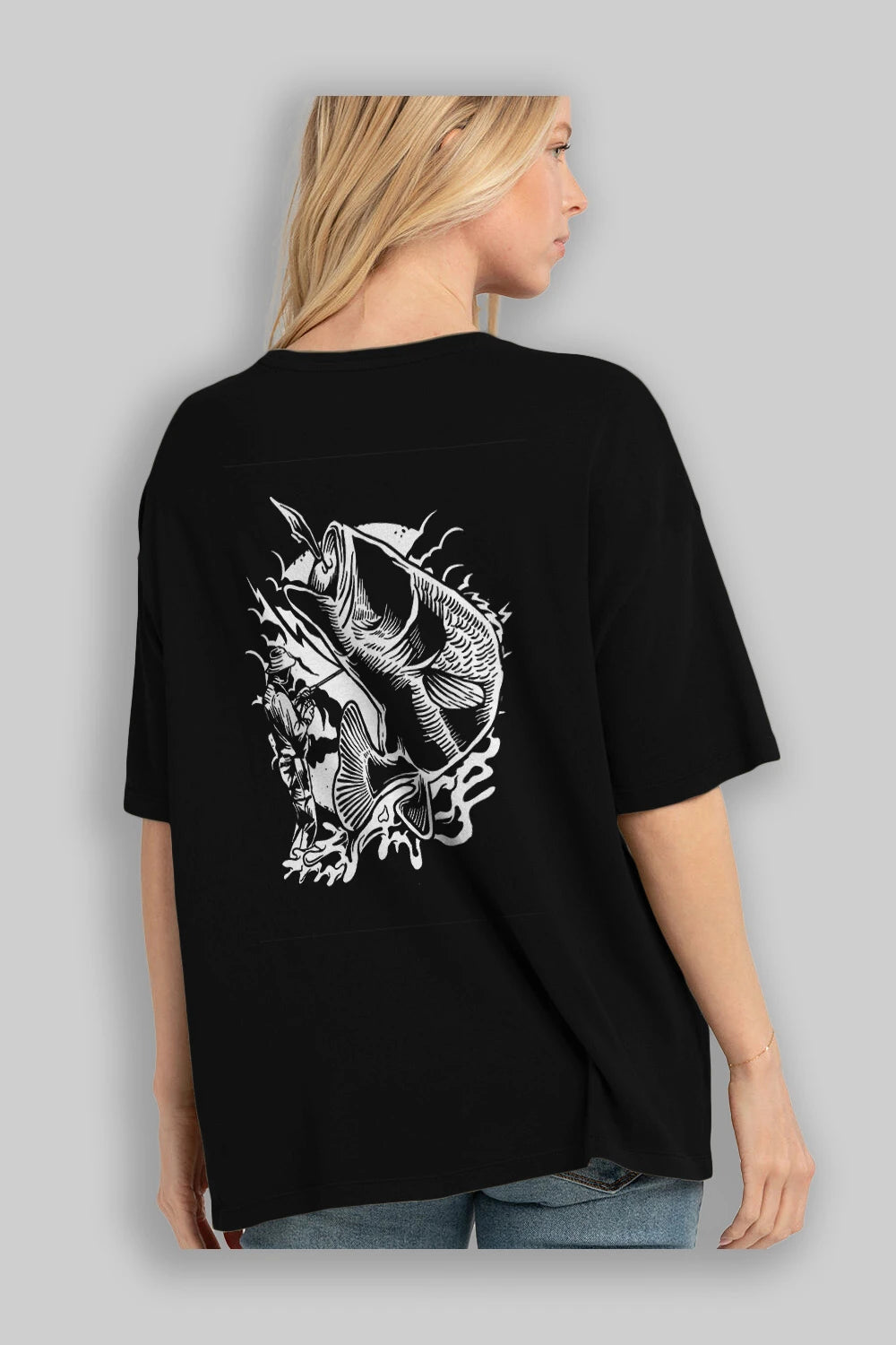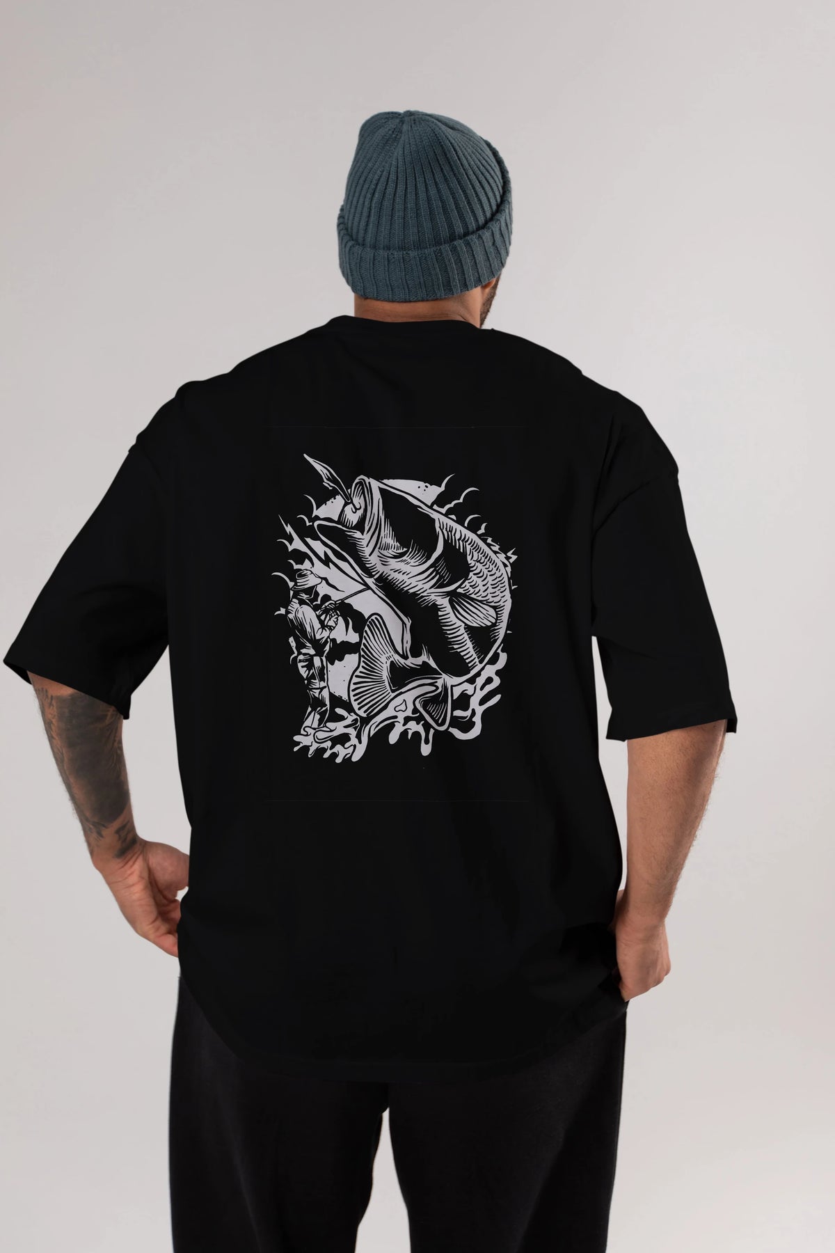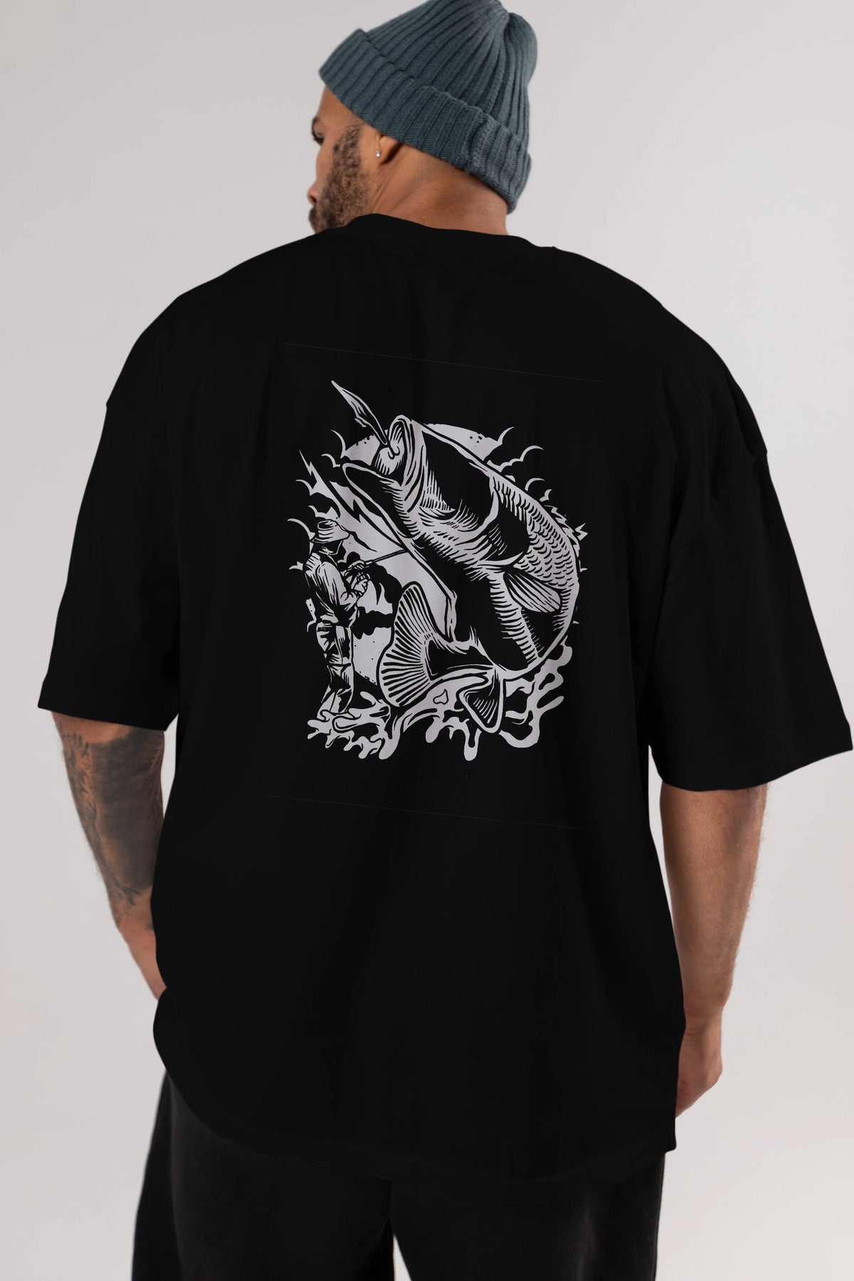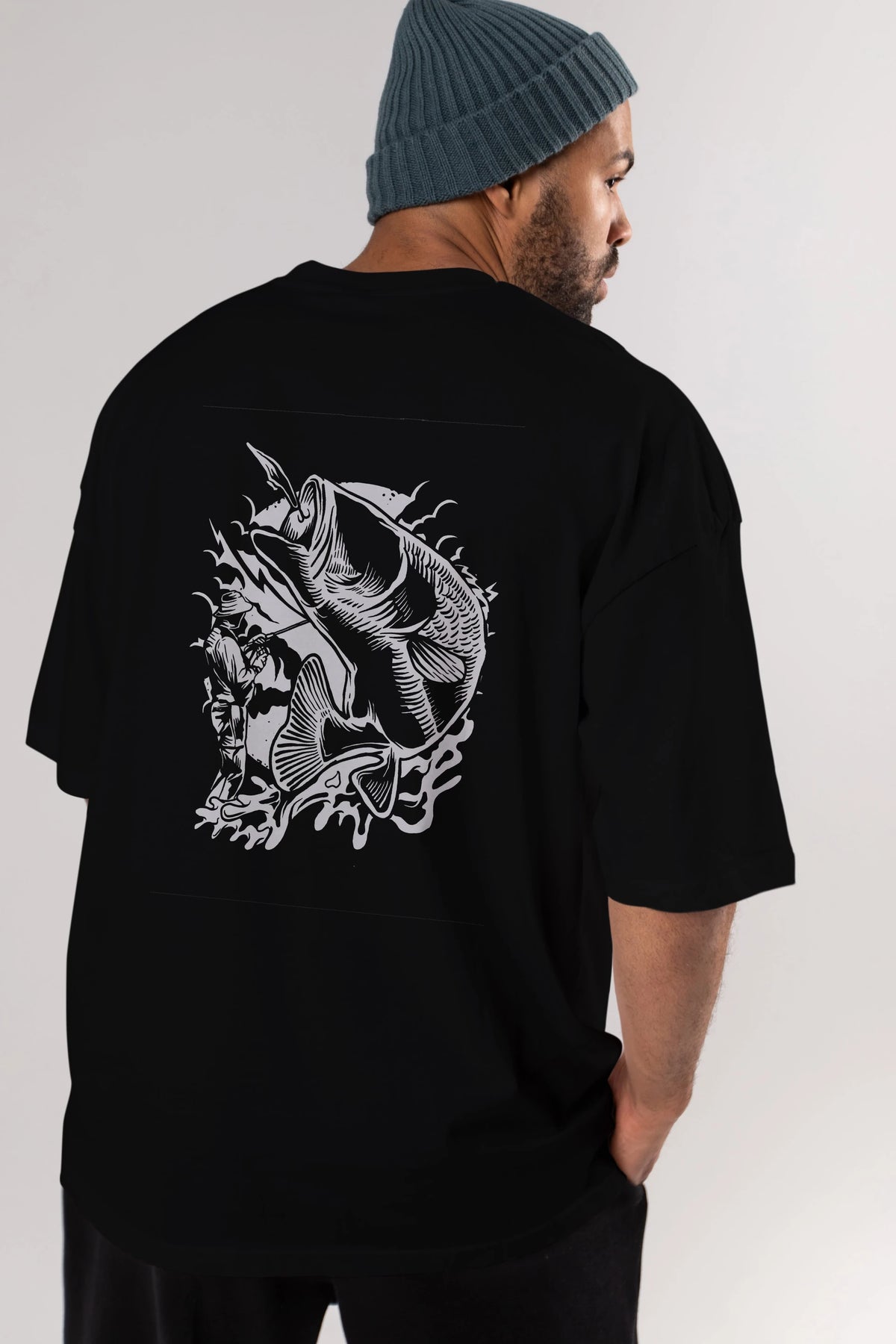 Fisherman Arka Baskılı Oversize t-shirt Erkek Kadın Unisex %100 Pamuk