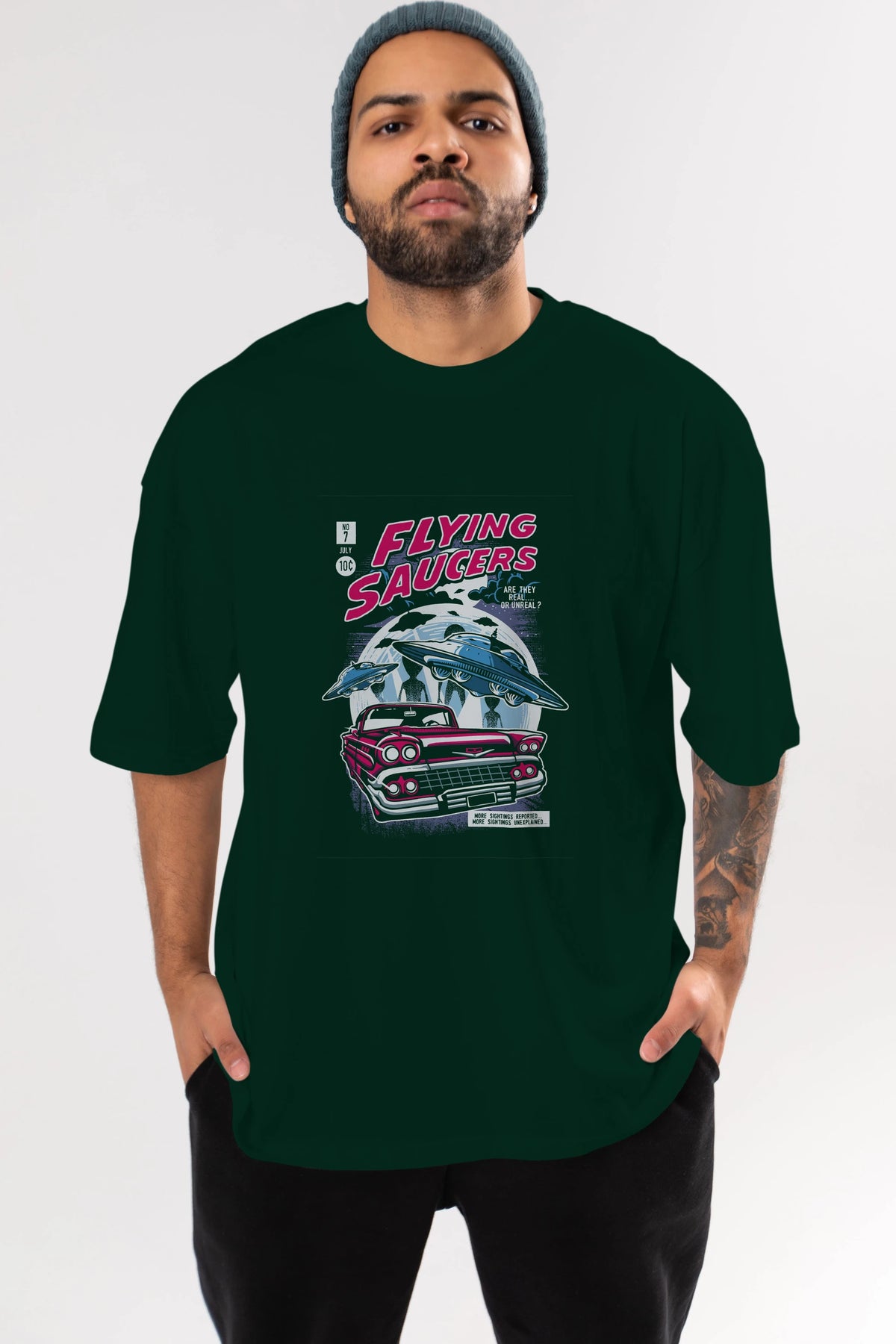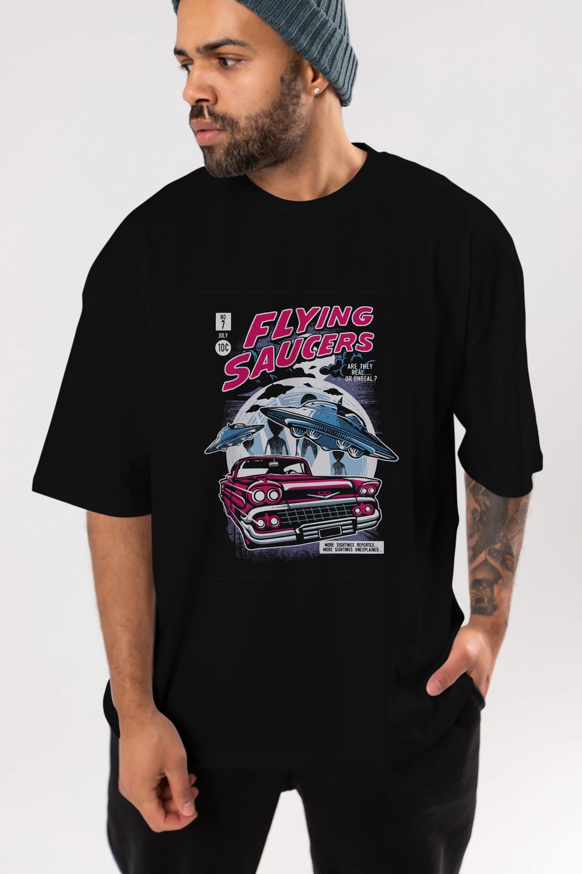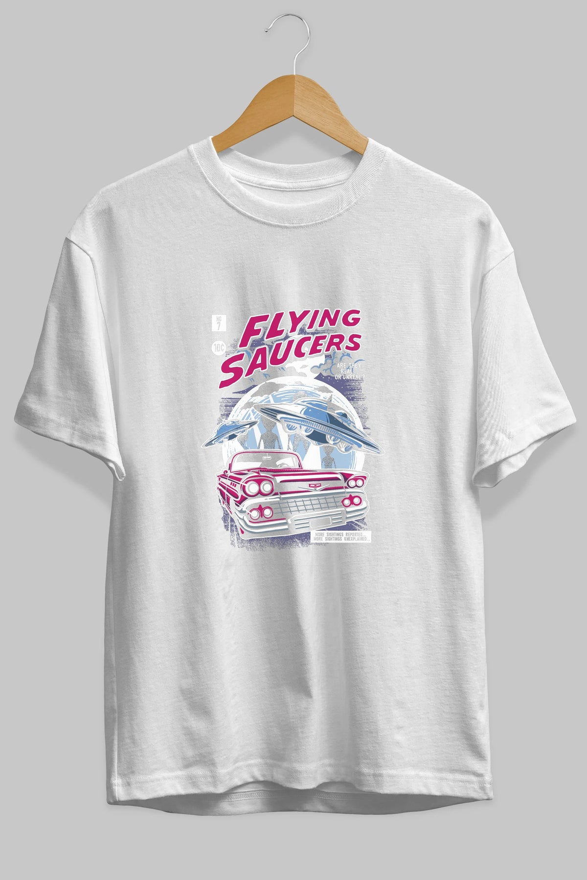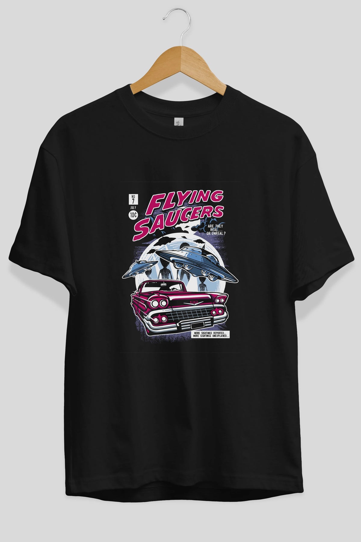 Flying Saucers Ön Baskılı Oversize t-shirt Erkek Kadın Unisex %100 Pamuk tişort