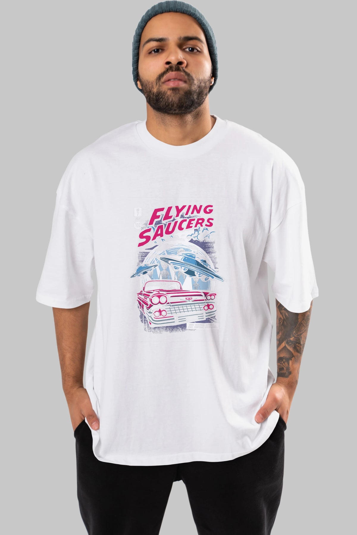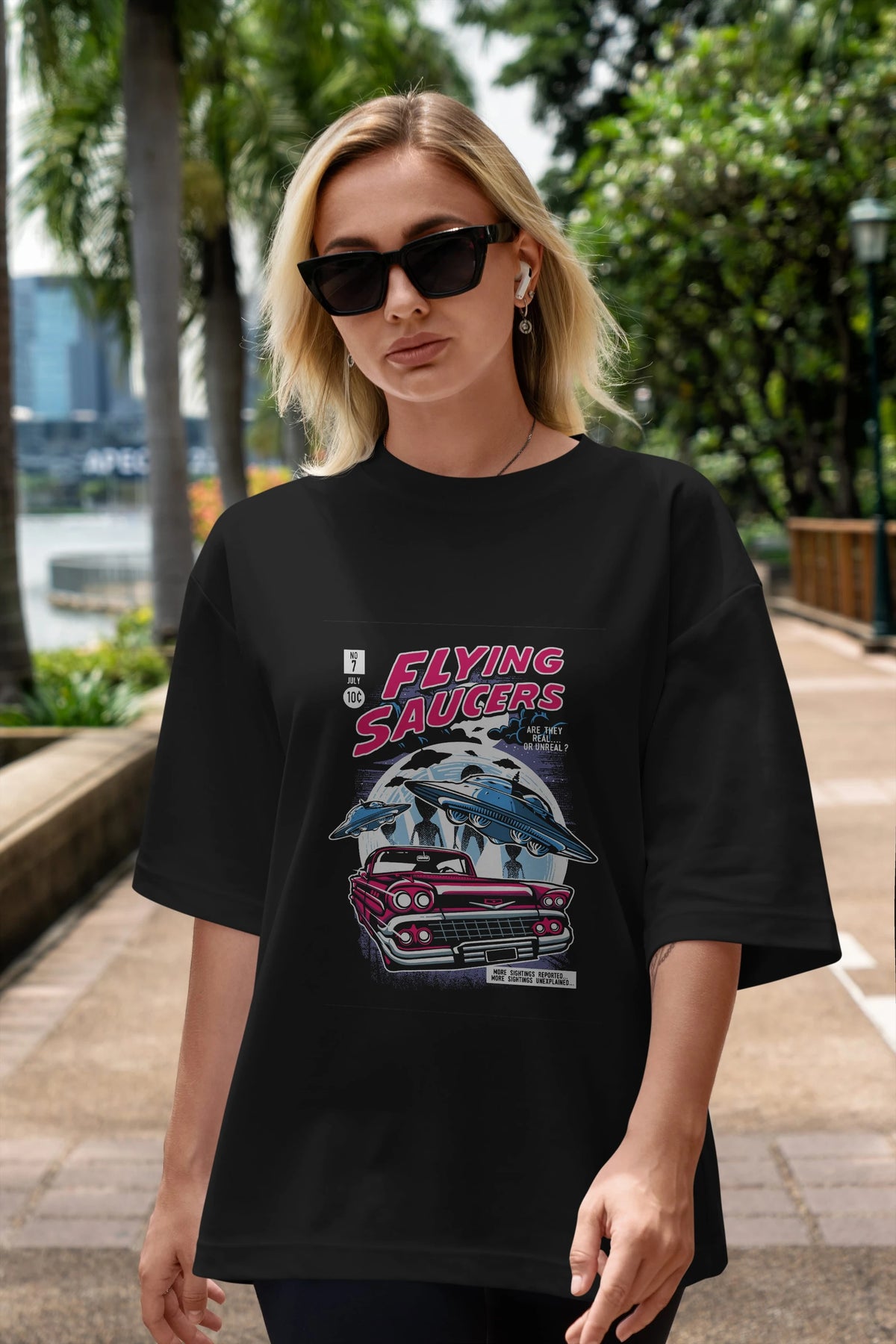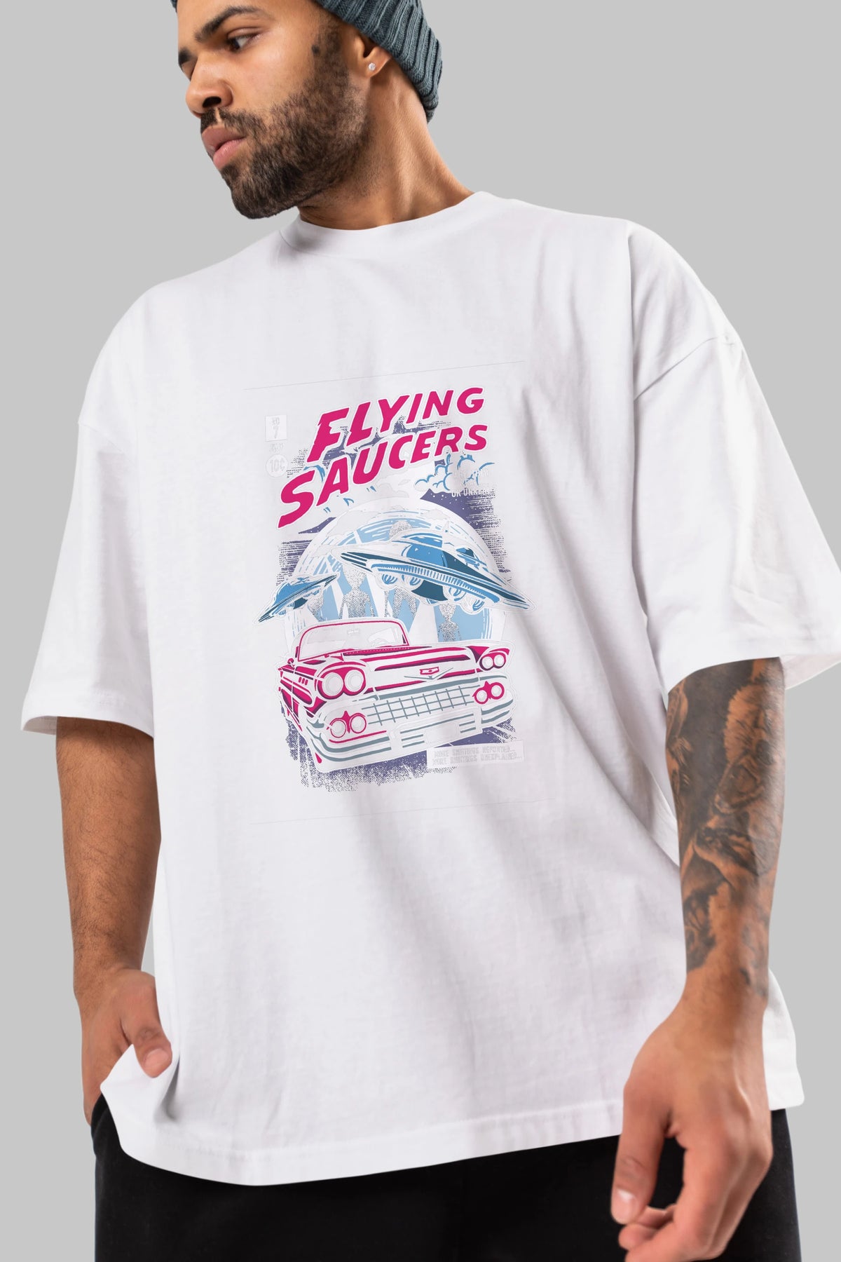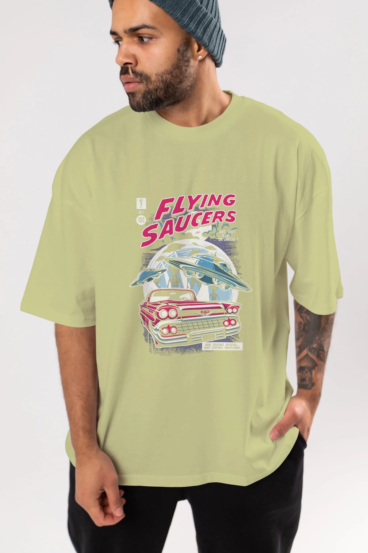 Flying Saucers Ön Baskılı Oversize t-shirt Erkek Kadın Unisex %100 Pamuk tişort