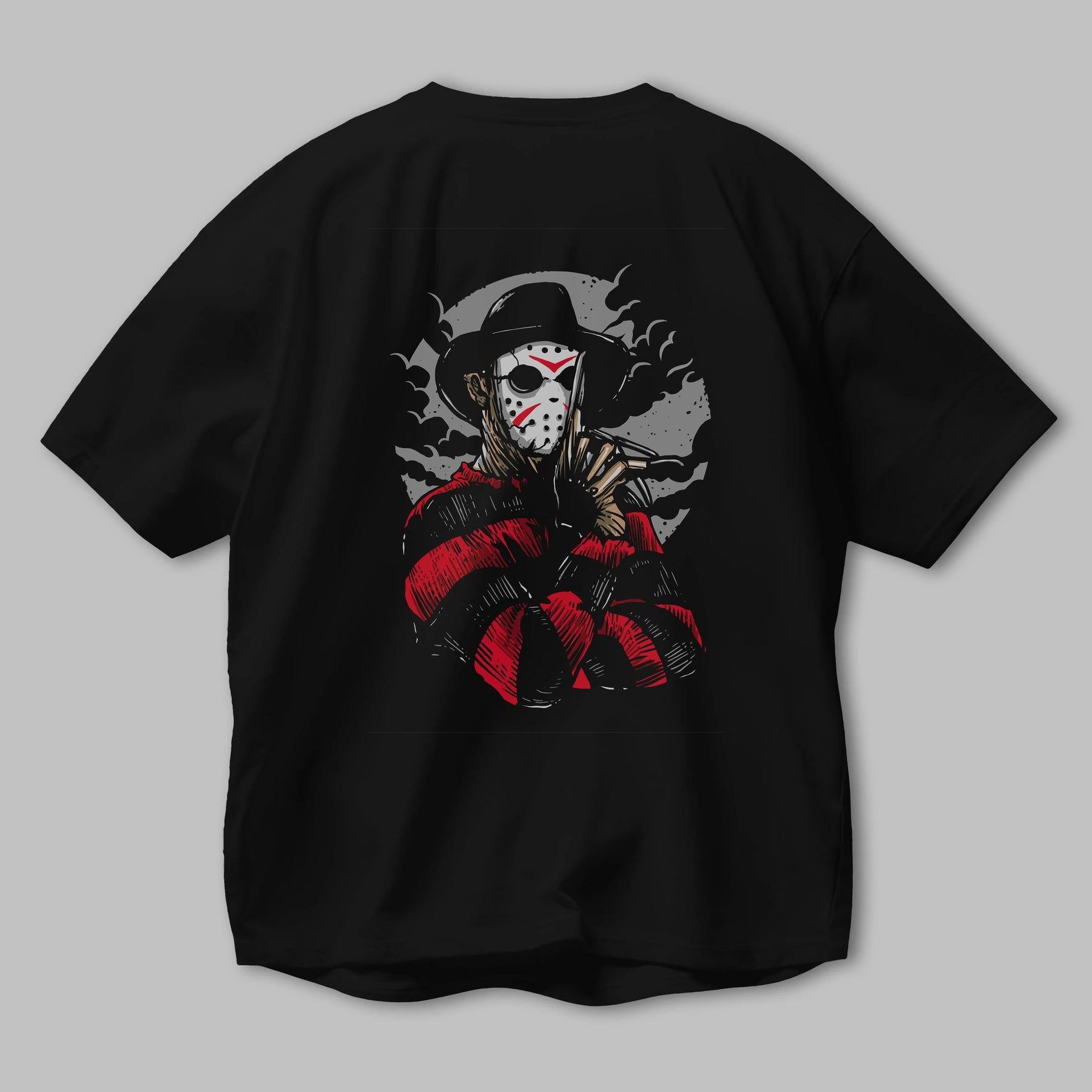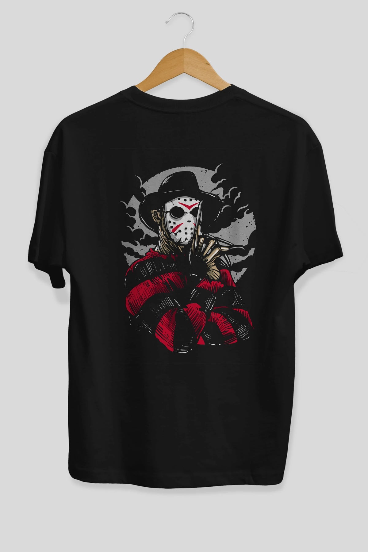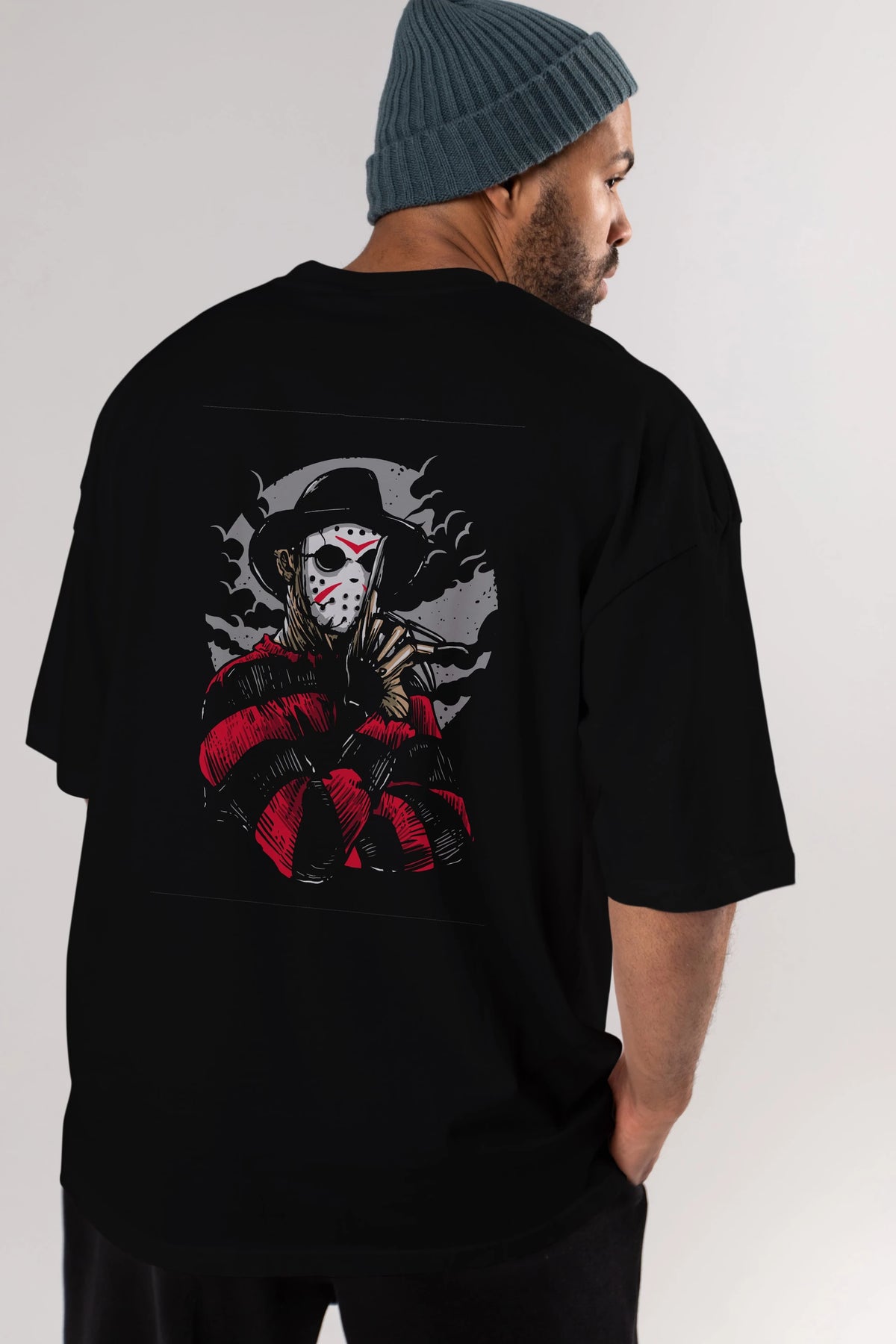 Freddy VS Jason (2) Arka Baskılı Oversize t-shirt Erkek Kadın Unisex %100 Pamuk