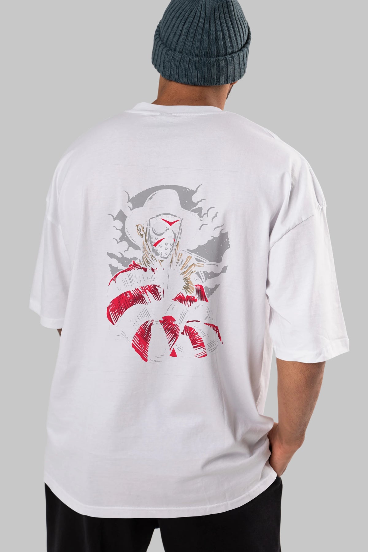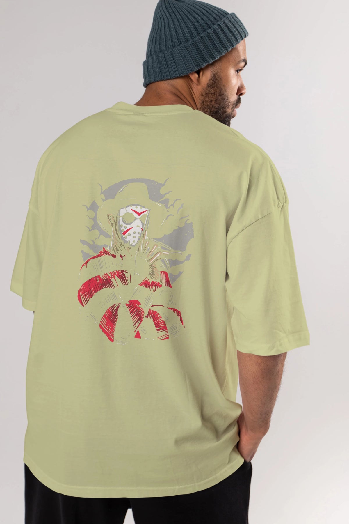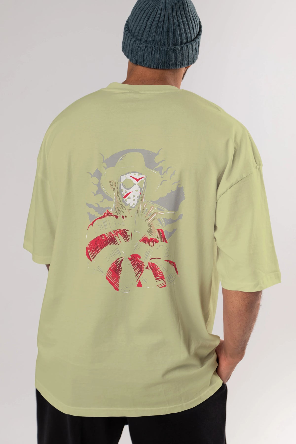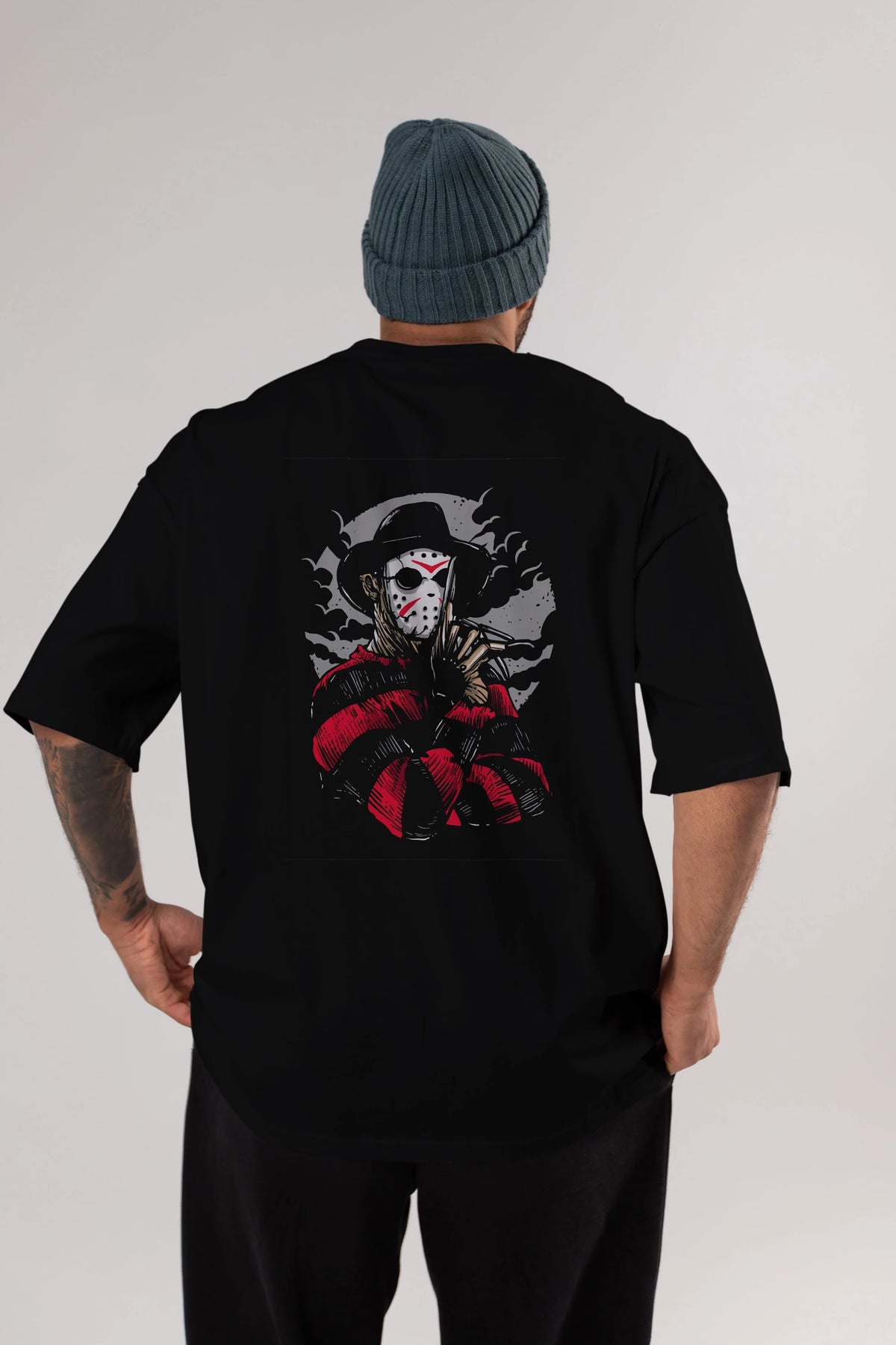 Freddy VS Jason (2) Arka Baskılı Oversize t-shirt Erkek Kadın Unisex %100 Pamuk