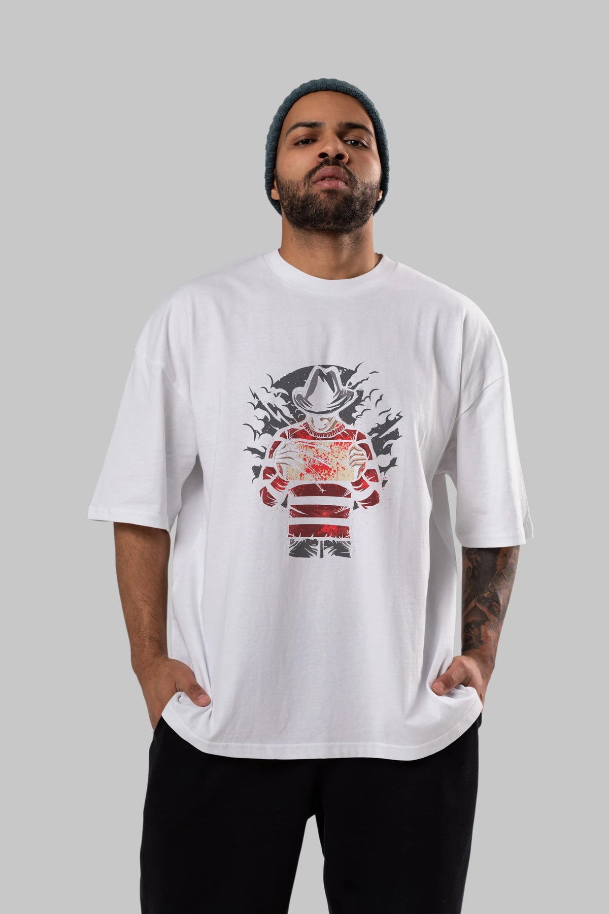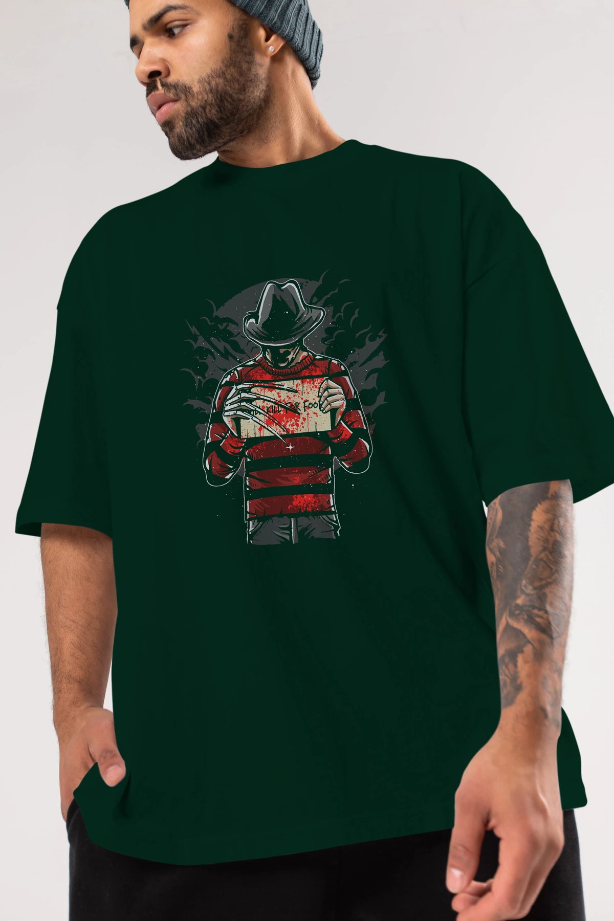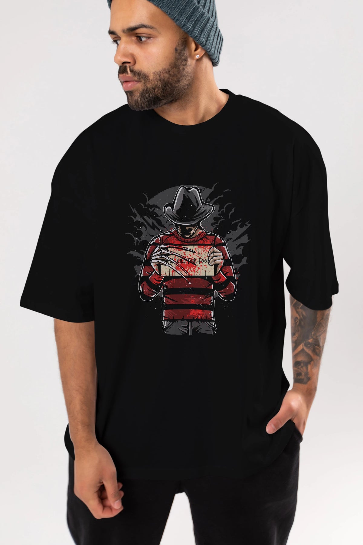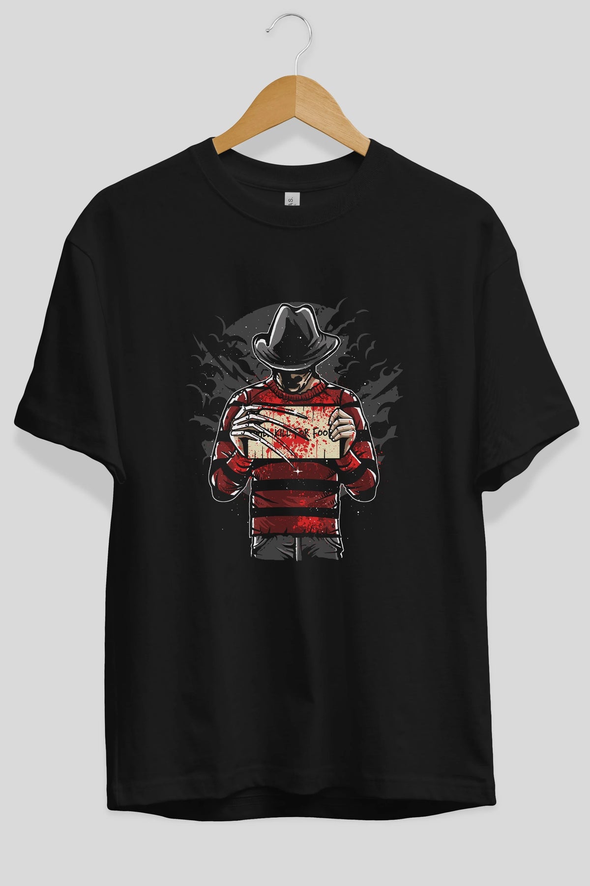 Freddy Will Kill For Food Ön Baskılı Oversize t-shirt Erkek Kadın Unisex %100 Pamuk tişort